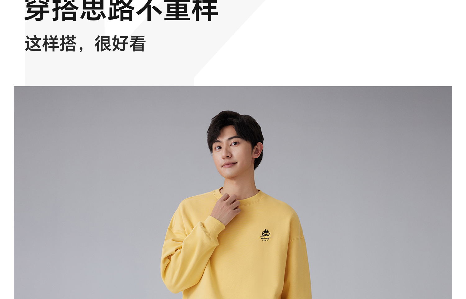 Kappa卡帕背靠背新款运动套头衫男休闲圆领卫衣宽松针织长袖上衣K0F12WT61