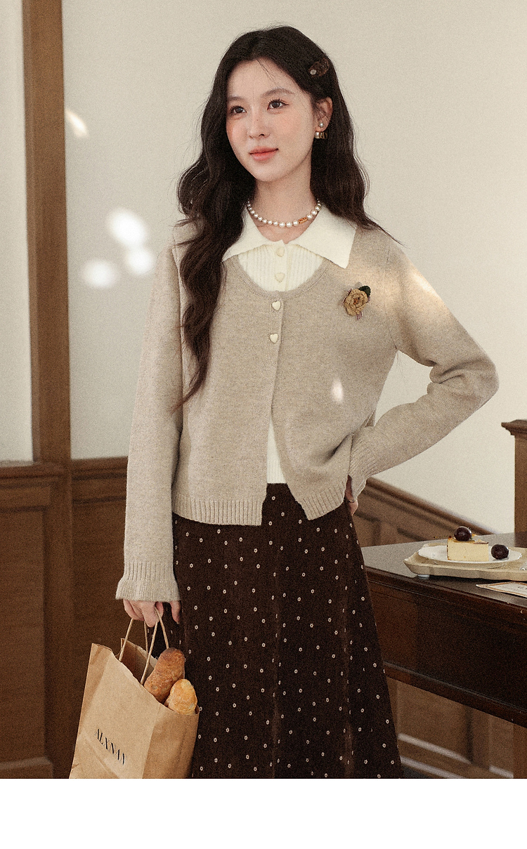 鹿向南【1220/20:00新品前1小时7折限量100件】卡其色假两件毛衣