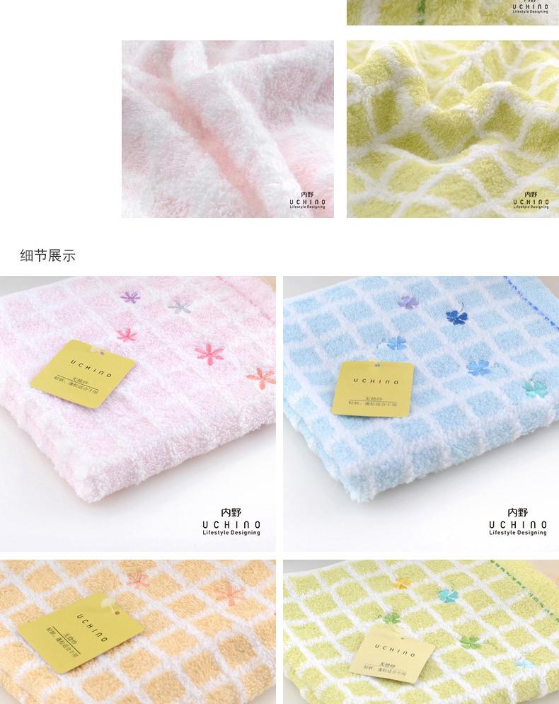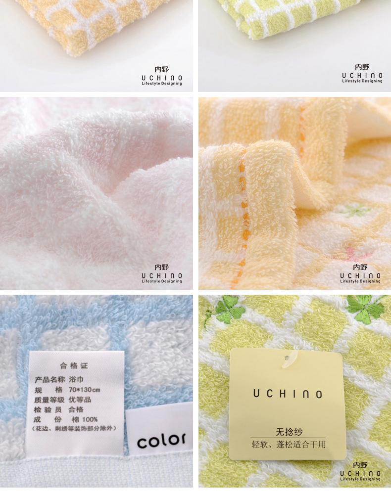 内野XS 无捻纱方格绣花浴巾