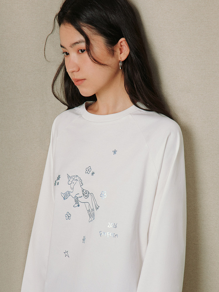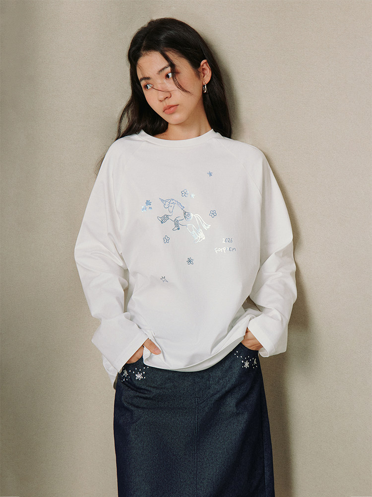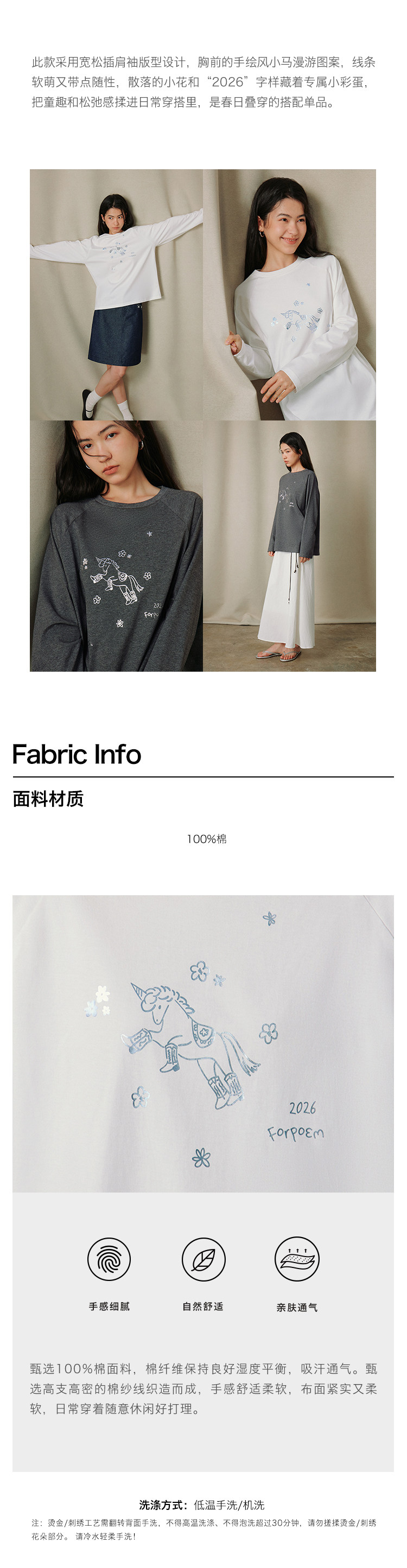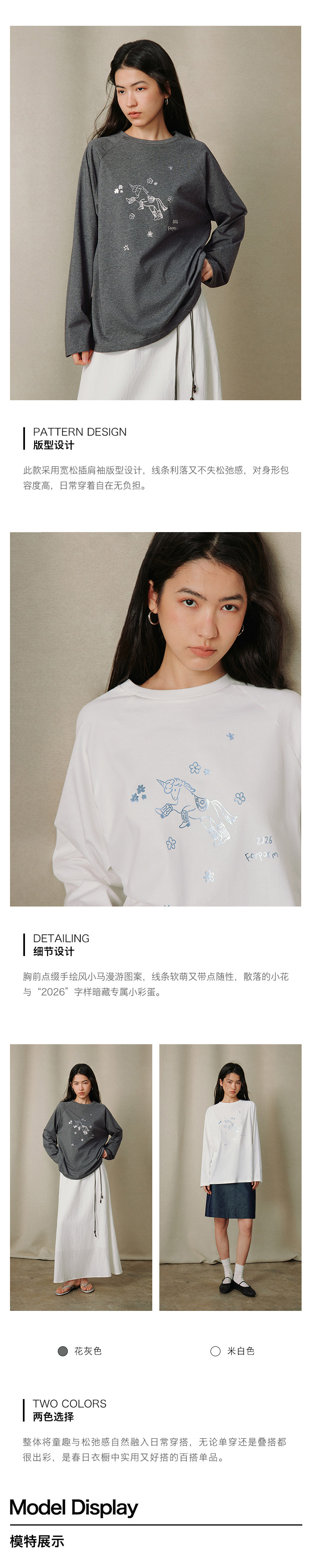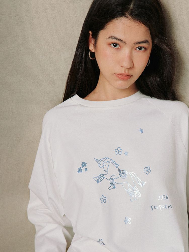 ForPoem 26/SS 原创设计小马烫金长袖T恤宽松