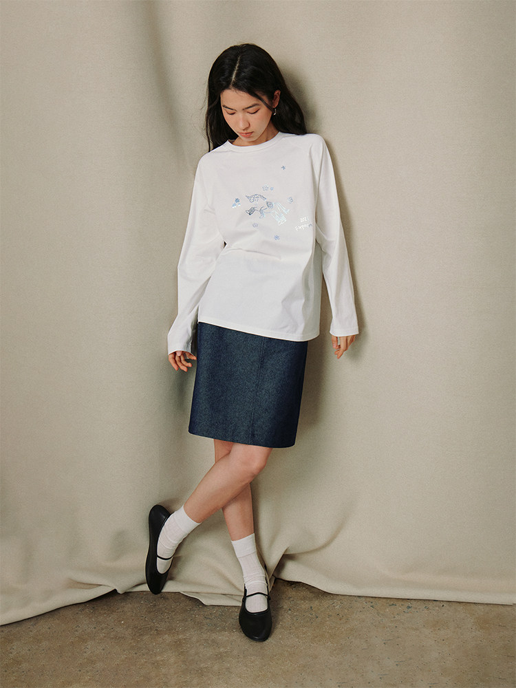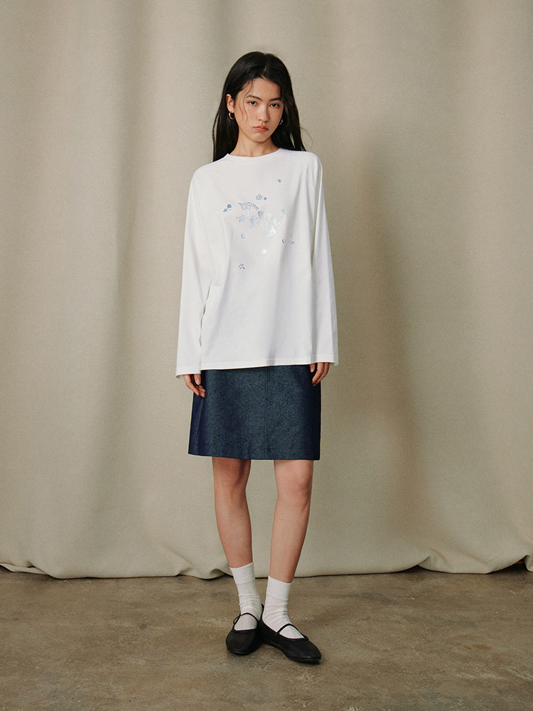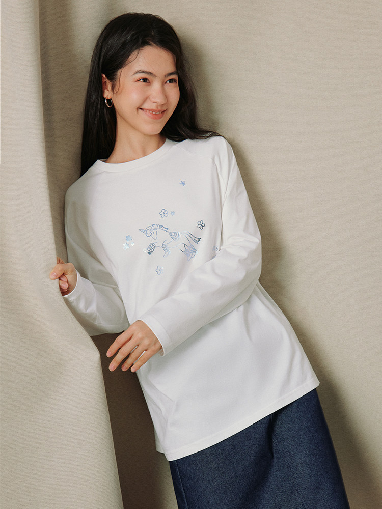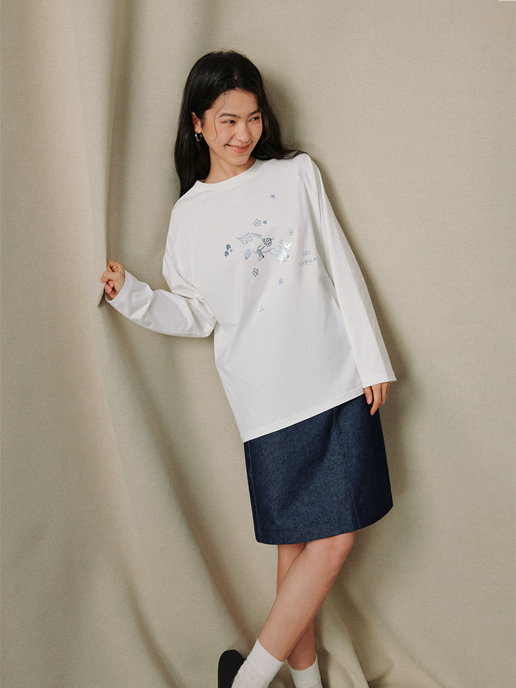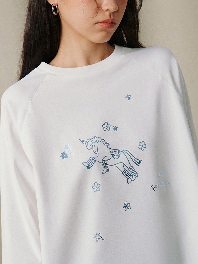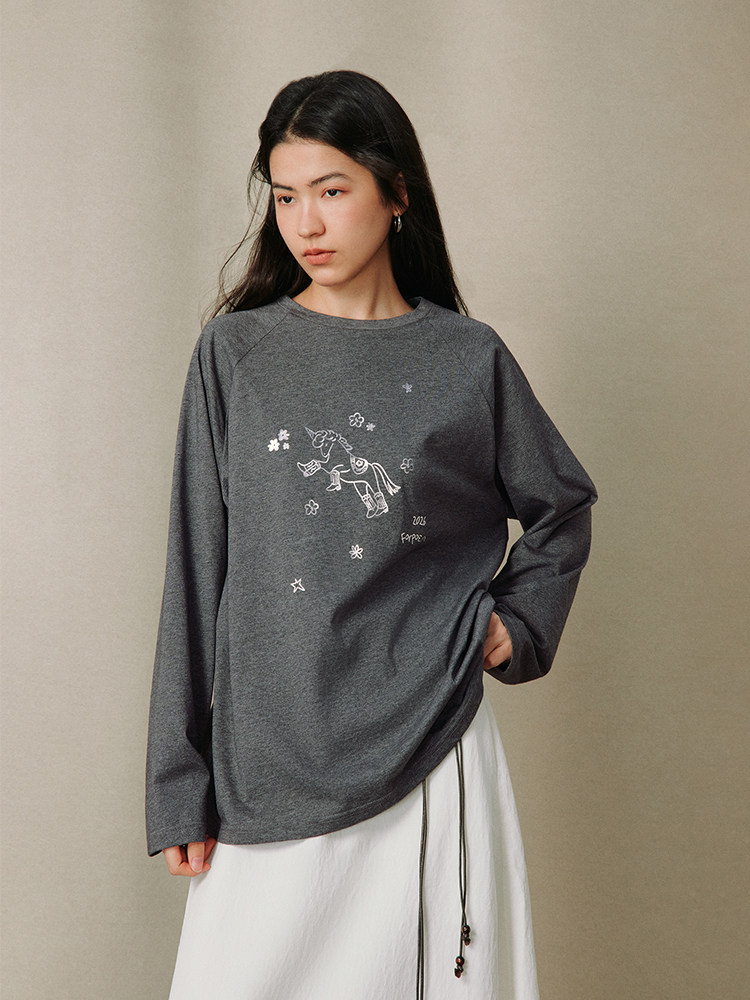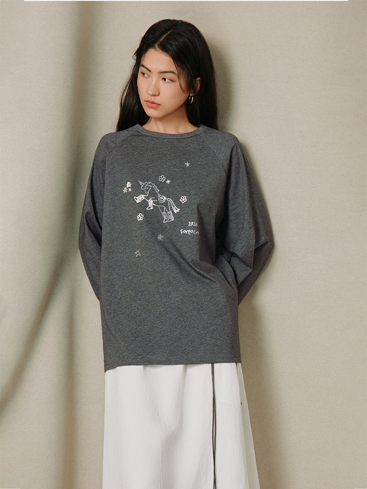ForPoem 26/SS 原创设计小马烫金长袖T恤宽松