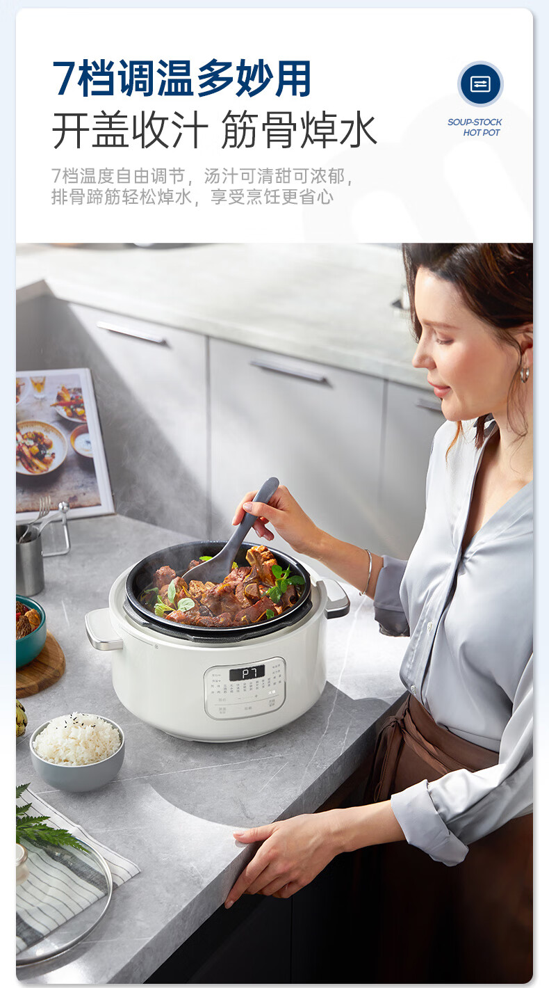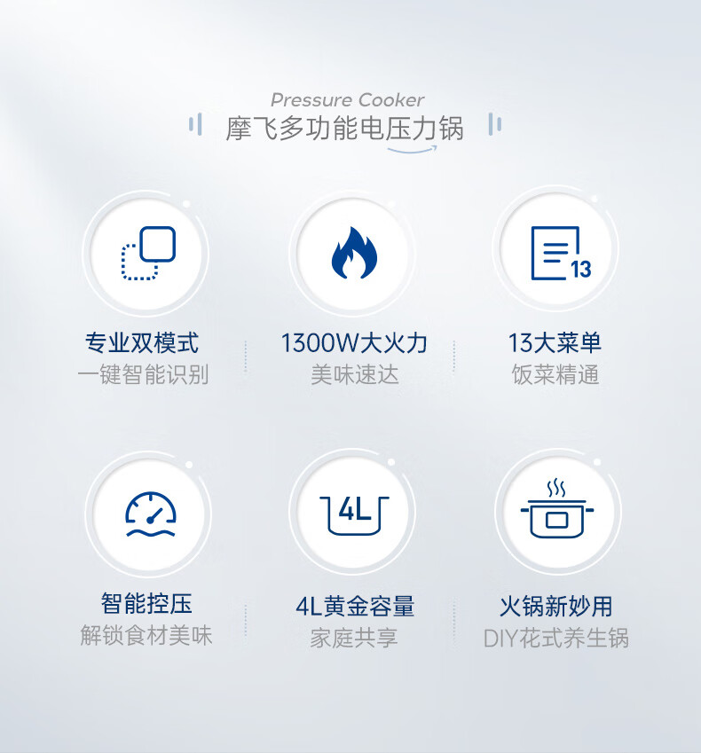 摩飞电器(Morphyrichards)电压力锅 家用4L多功能电高压锅电饭煲火锅 智能控压花式养生锅炖汤锅MR8700