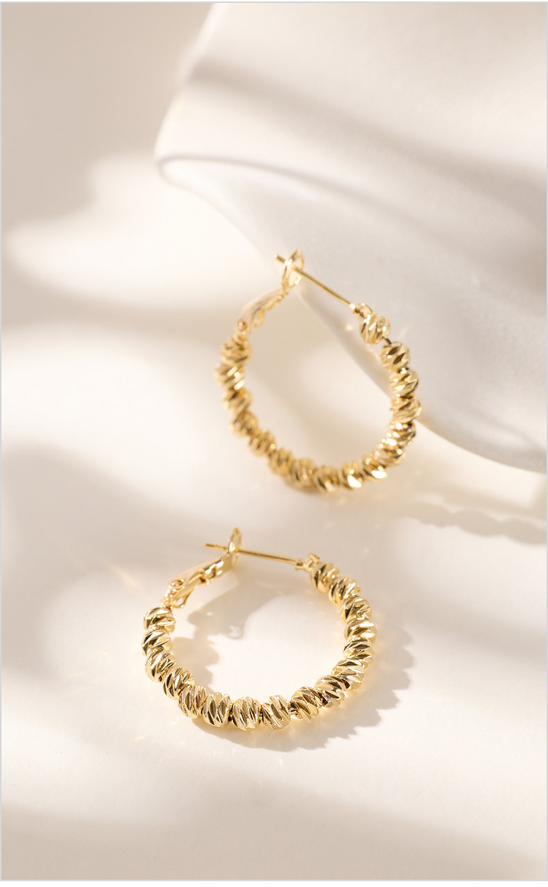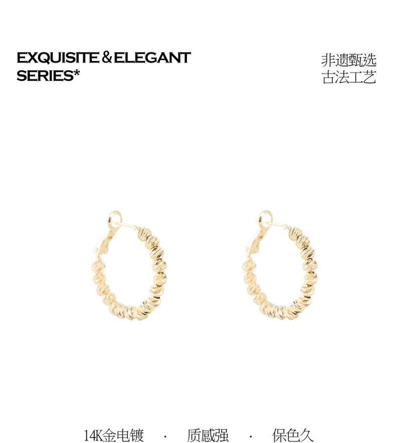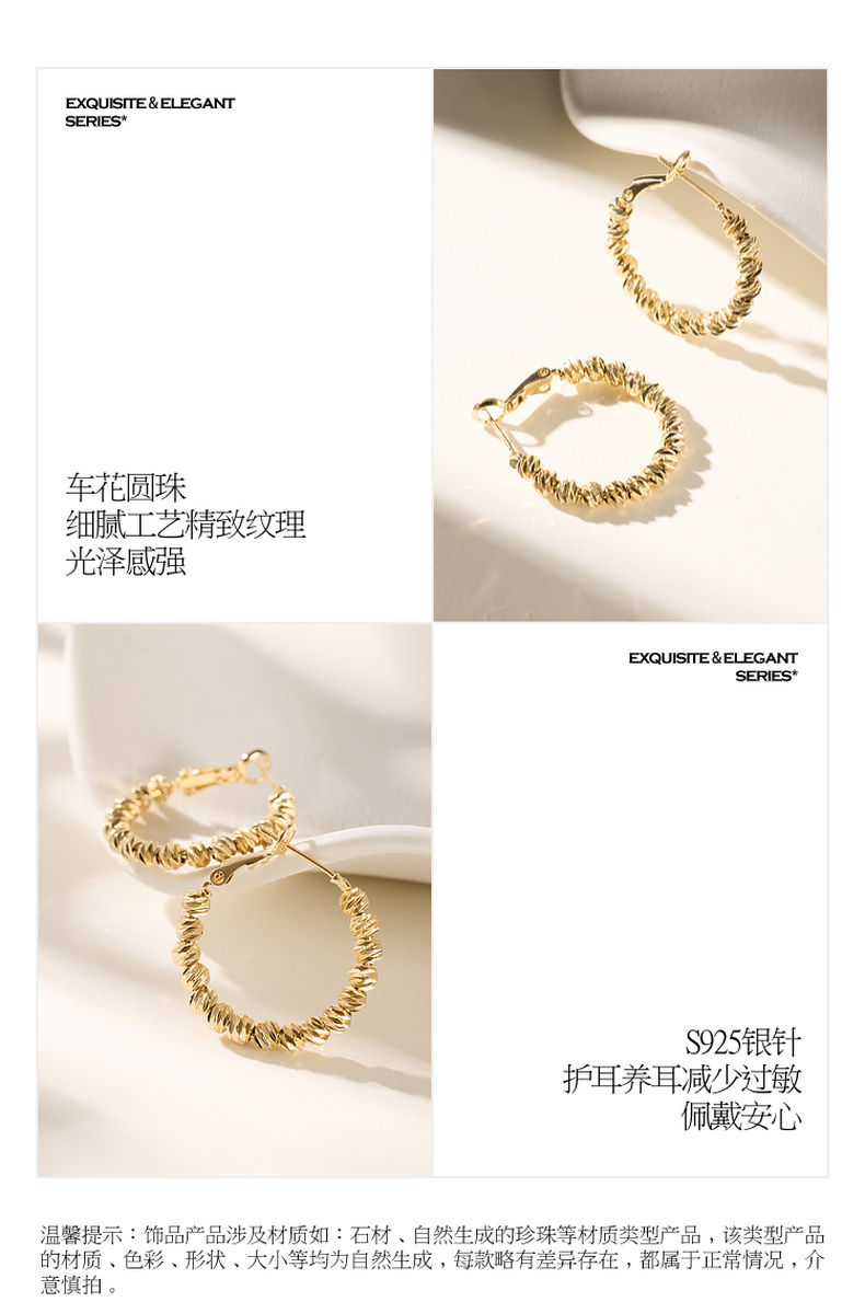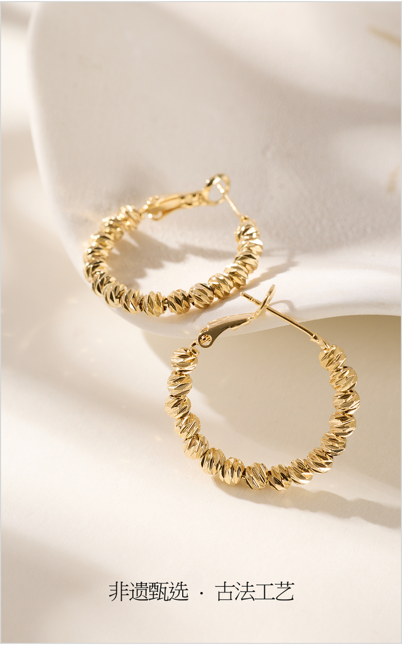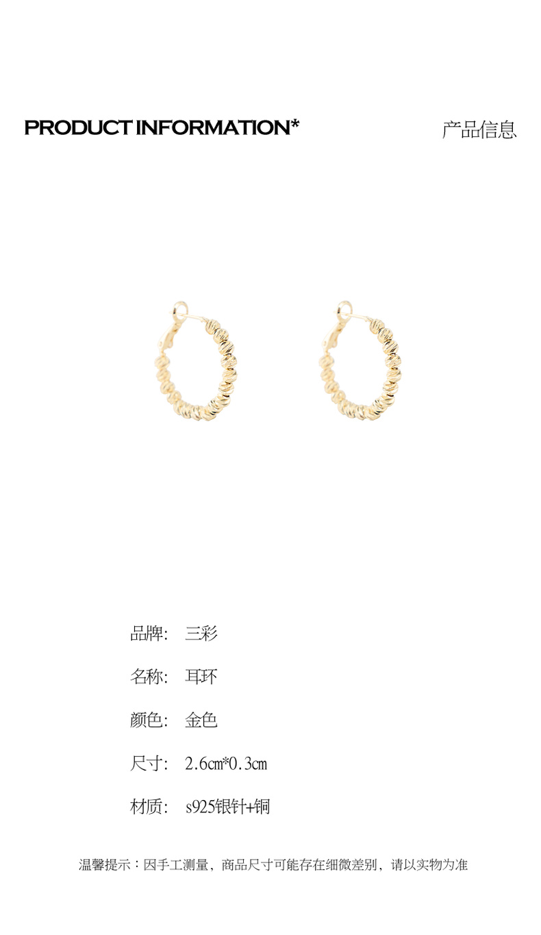 三彩2026新款金色车花珠耳圈耳环S925银针复古贵气氛围简约小众