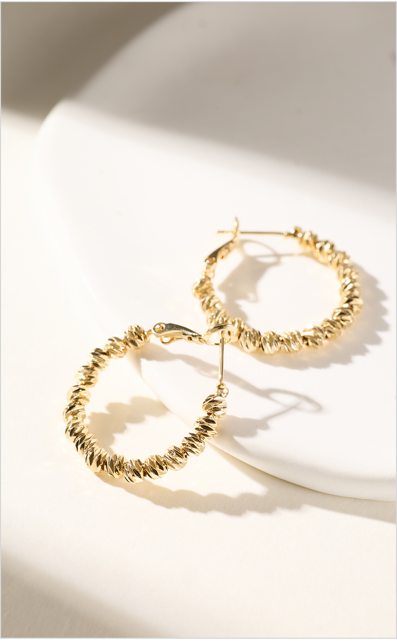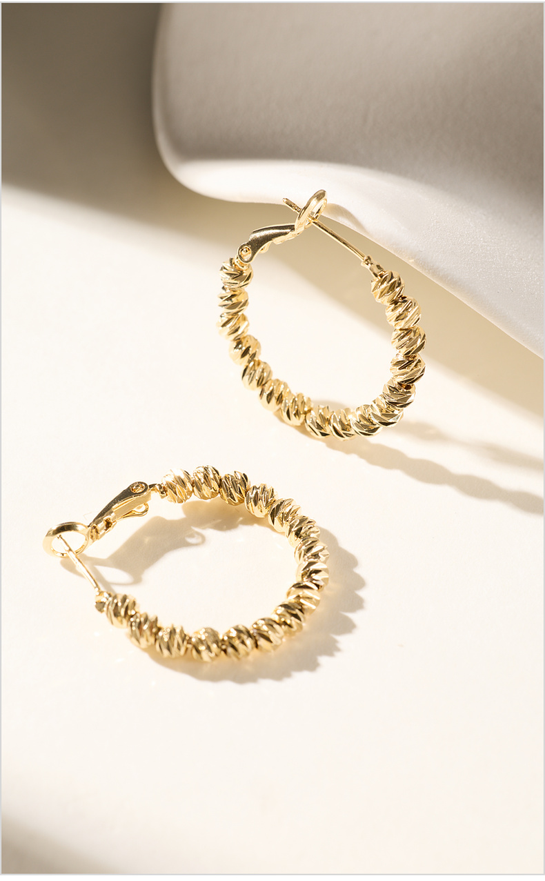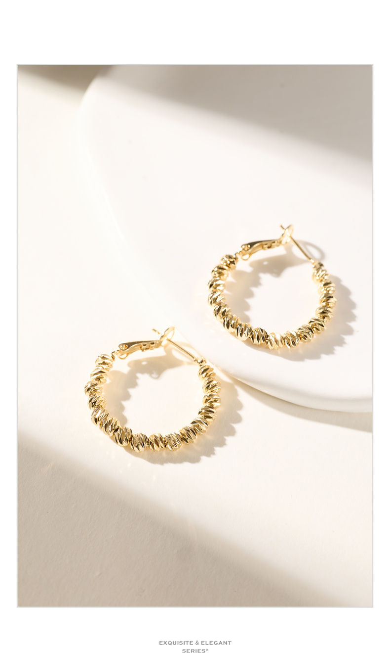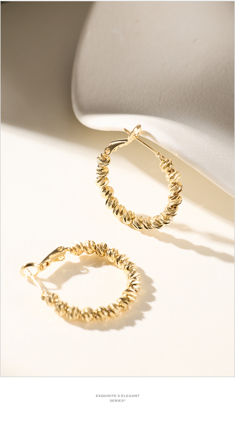 三彩2026新款金色车花珠耳圈耳环S925银针复古贵气氛围简约小众