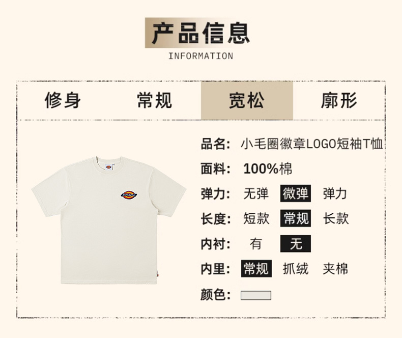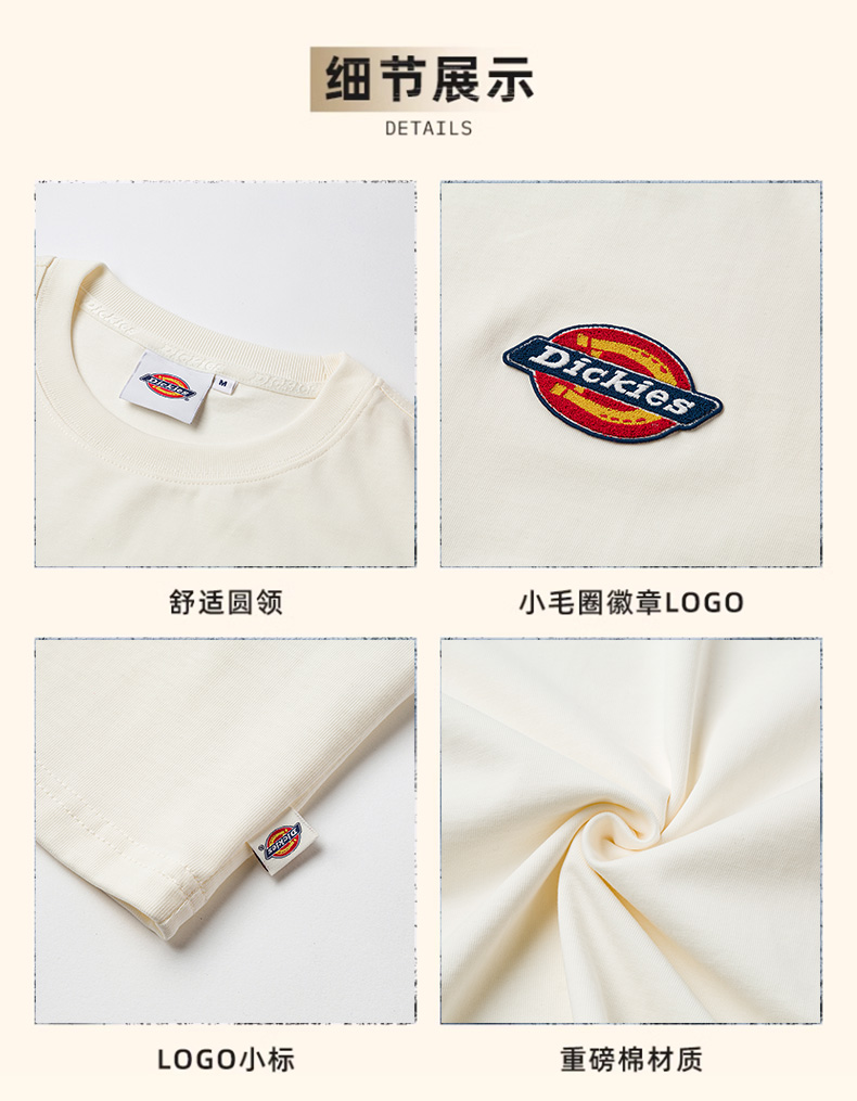 Dickies小毛圈徽章L0G0短袖T恤 男女同款 简约百搭舒适T恤 DK0A87QZ