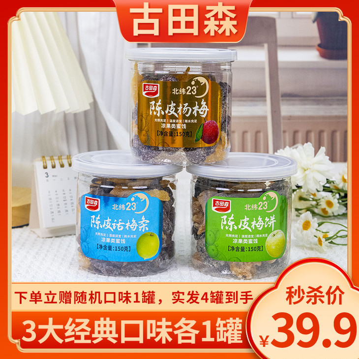 🔥好吃到头皮发麻🎉拍1🉐4大罐🌈鲜果秘制 💥古田森陈皮蜜饯🎉💰山姆同款:19.9/罐❌ 💰团购抄底价:39.9🉐4罐✅ ⚠(主拍3罐👉陈皮杨梅/梅饼/话梅条➕盲盒式随机加赠1罐)