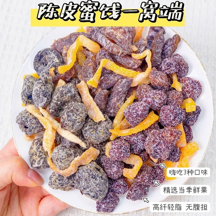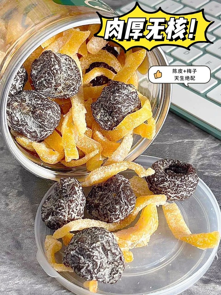 🔥陈皮:鲜果蜜饯=3:7【注:按克重比例】 酸甜回甘💦这个搭配给我锁死! 理气健脾,一口一颗贼开胃~ ✨高纤轻脂,减脂党也能冲的小零食!