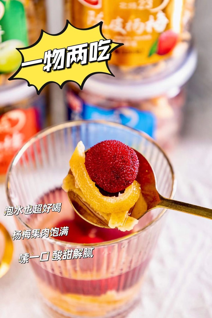 🔥陈皮杨梅🔥 🐮9斤新鲜杨梅才能出1斤杨梅干~ 选的还是外面卖几十元一斤的东魁杨梅! 东魁杨梅,果肉肥厚细腻✨软韧有嚼劲~ 👍一口下去清甜微酸,绵密柔软~ 再吃一点陈皮,清新橘香,越嚼越回甘! 嘴里常没味的,吃它!! 👉让寡淡的味蕾“活”起来~