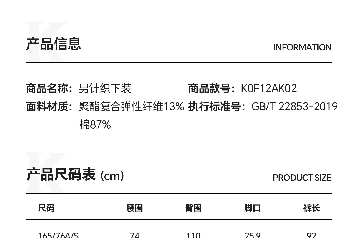 Kappa卡帕背靠背运动长裤男新款针织休闲裤松直筒工装裤弹力裤子K0F12AK02