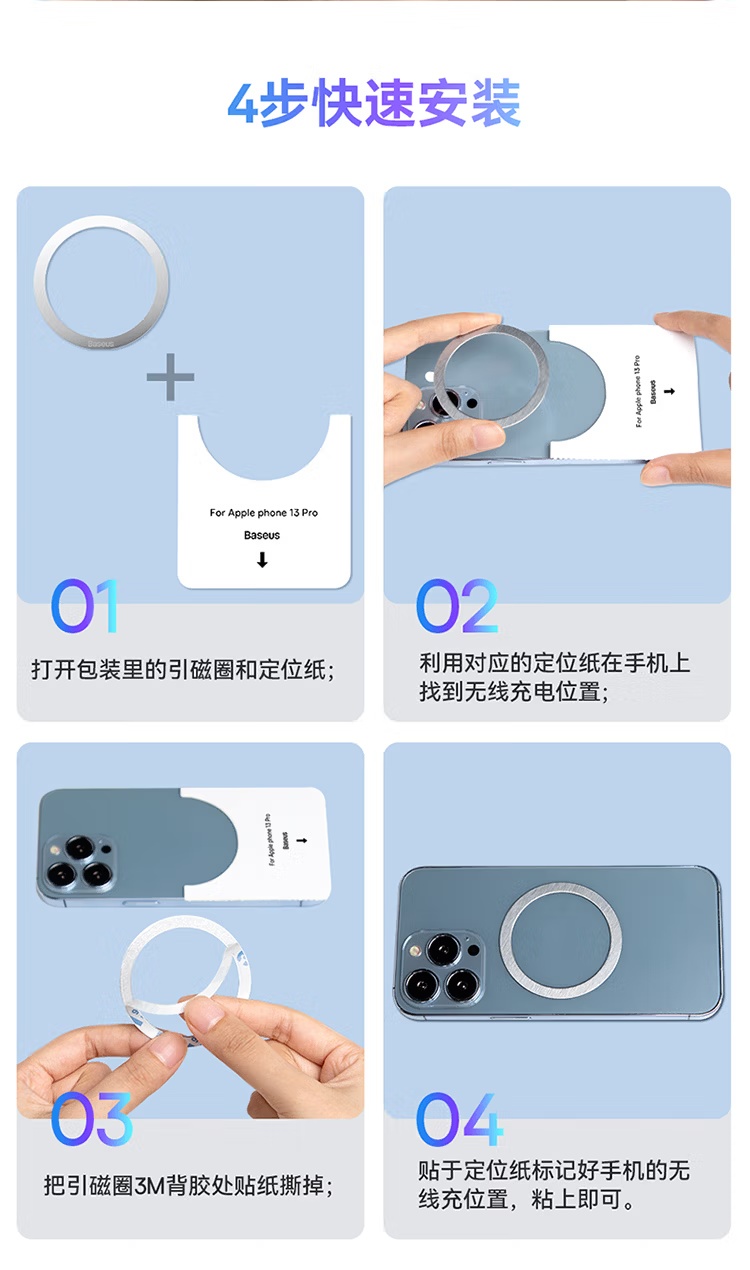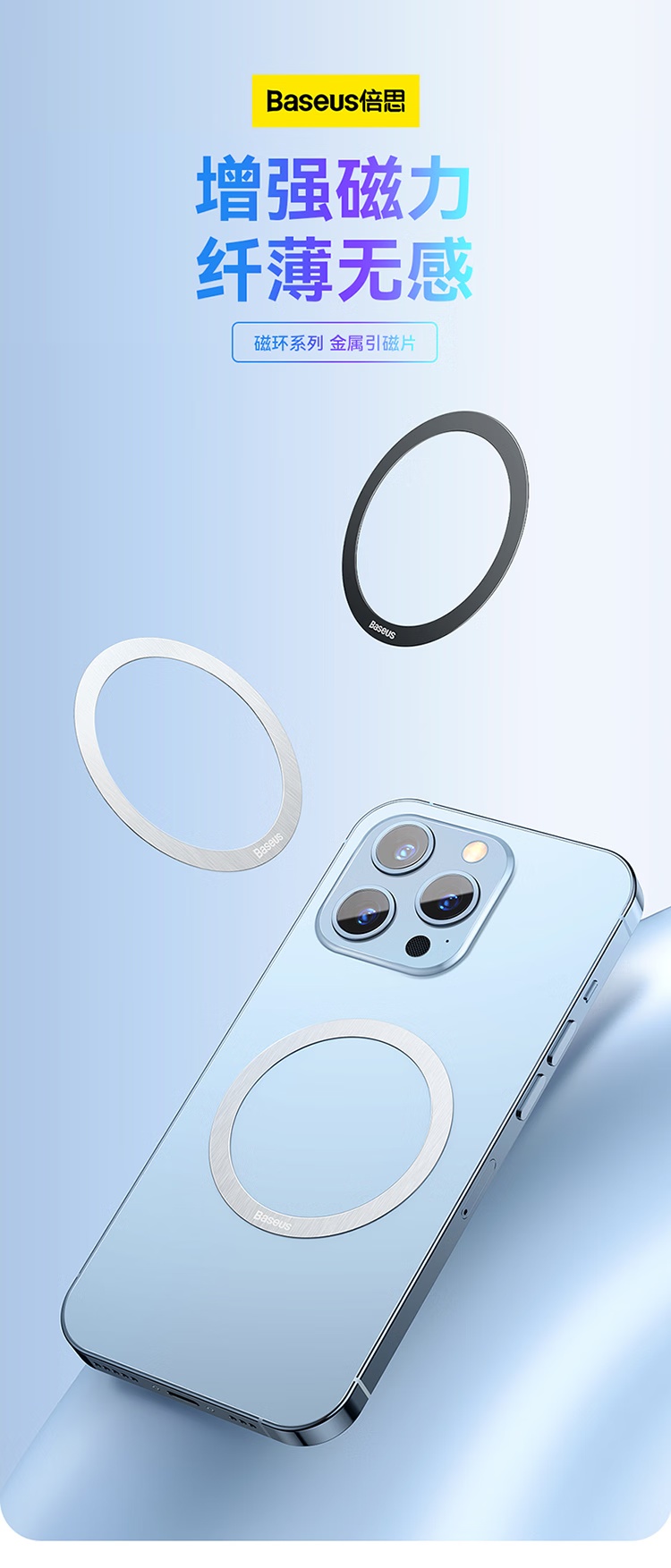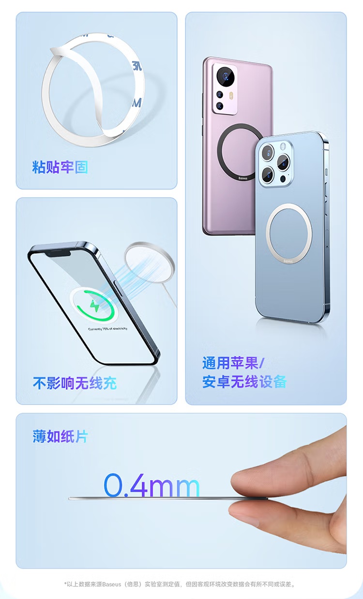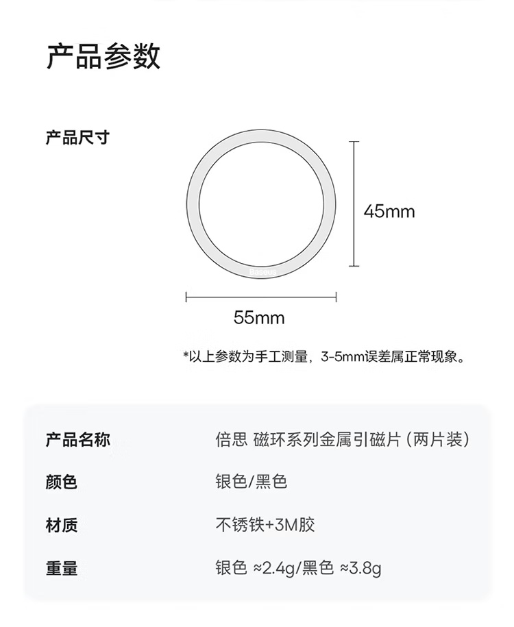 【京东热销10W+】倍思/Baseus 无线充电金属引磁环磁吸片 两片装