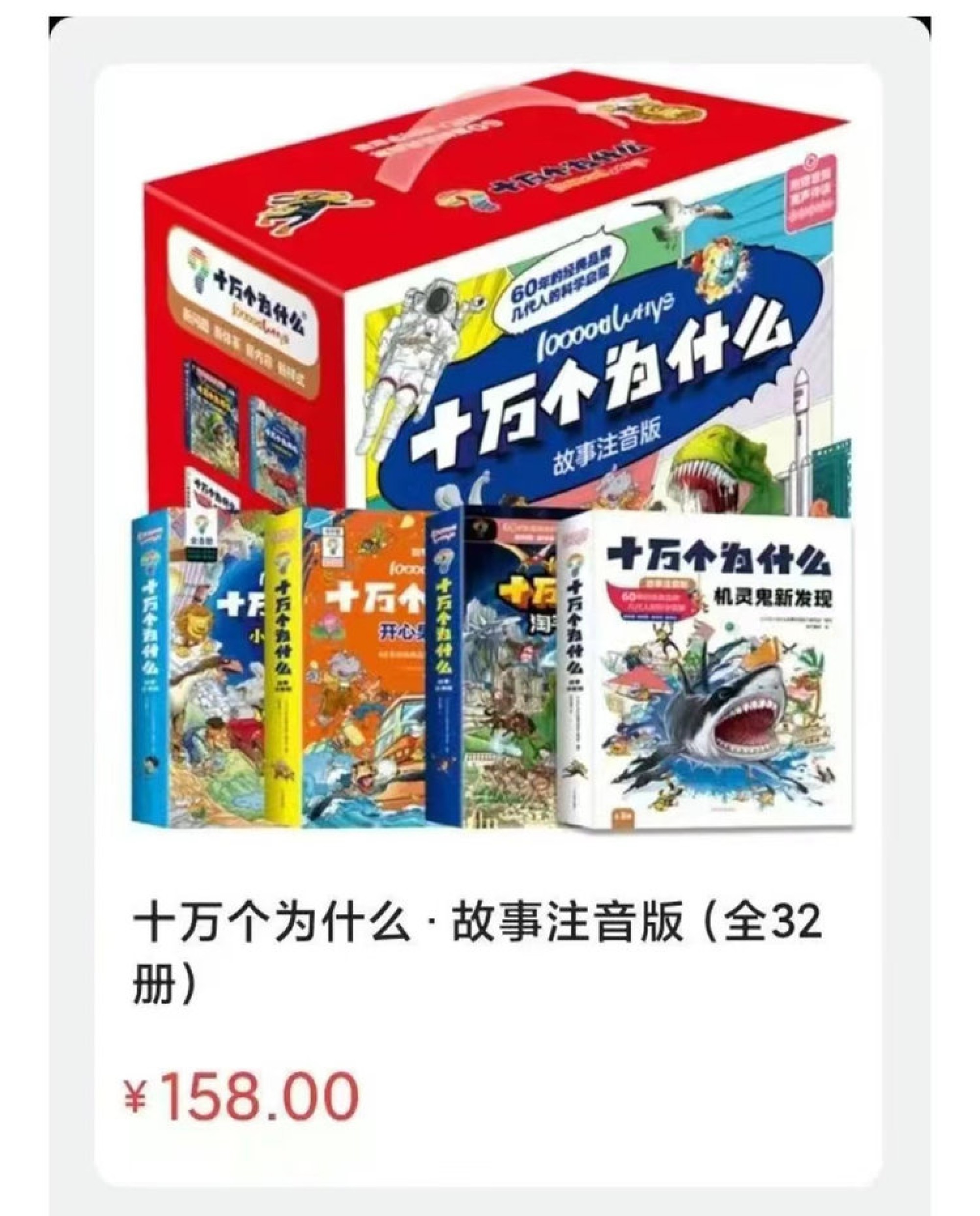 经过一番深入交流才知晓:因为有渠道想做一批99元的《十万个为什么:故事注音版》,在不降品质、不降成本的前提下,只能通过减少册数来满足市场的需要了!🤷♀️