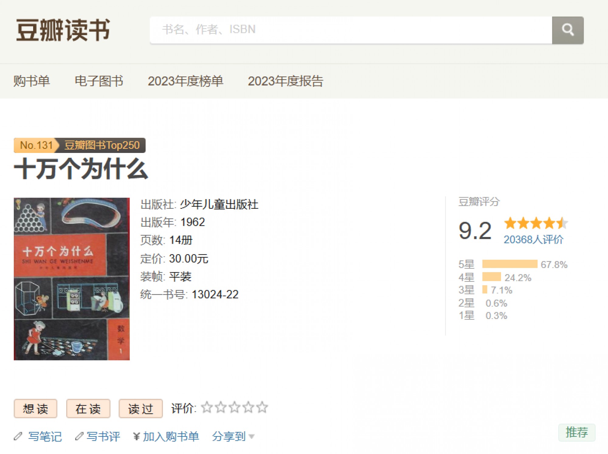 🍒就是在刚刚过去的2023年,它也曾因为高达9.2分的评分,入选“豆瓣2023年度读书榜单TOP250”第131位。