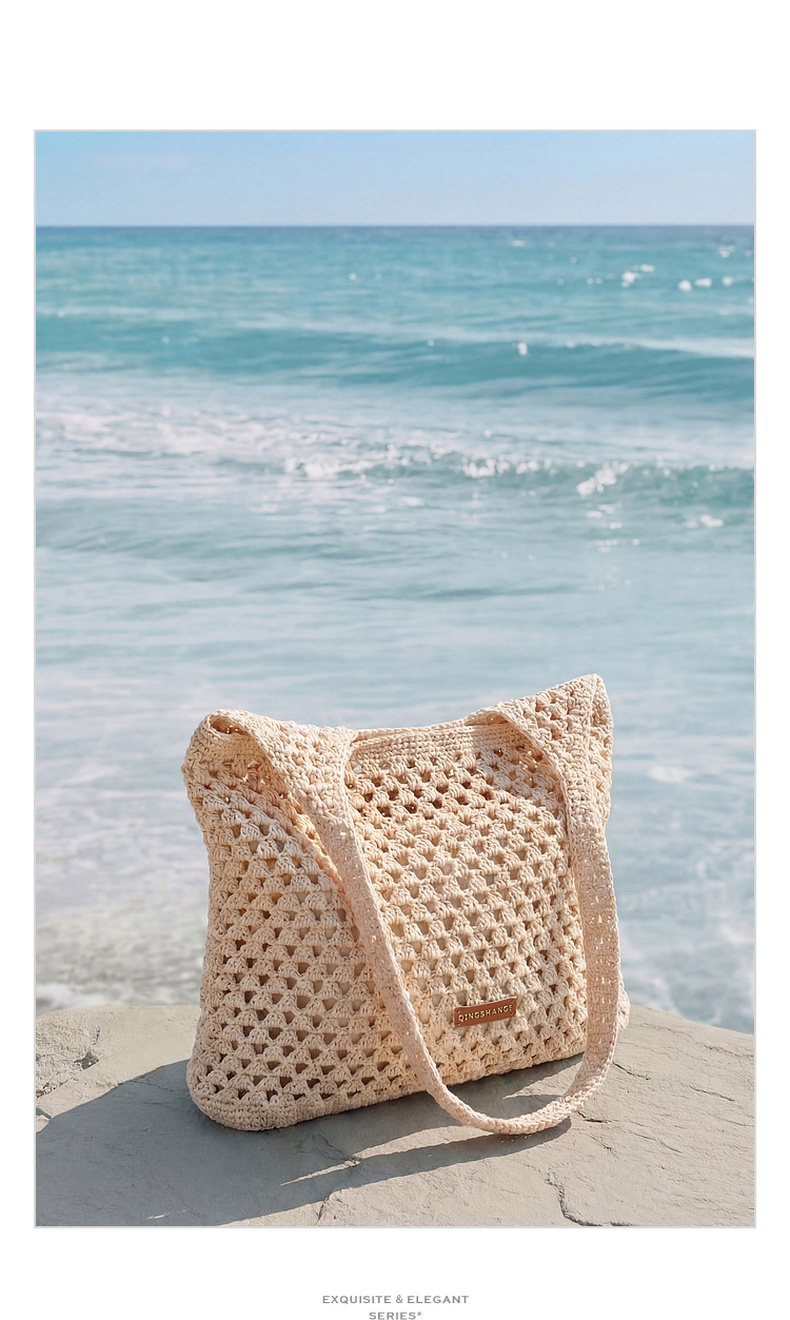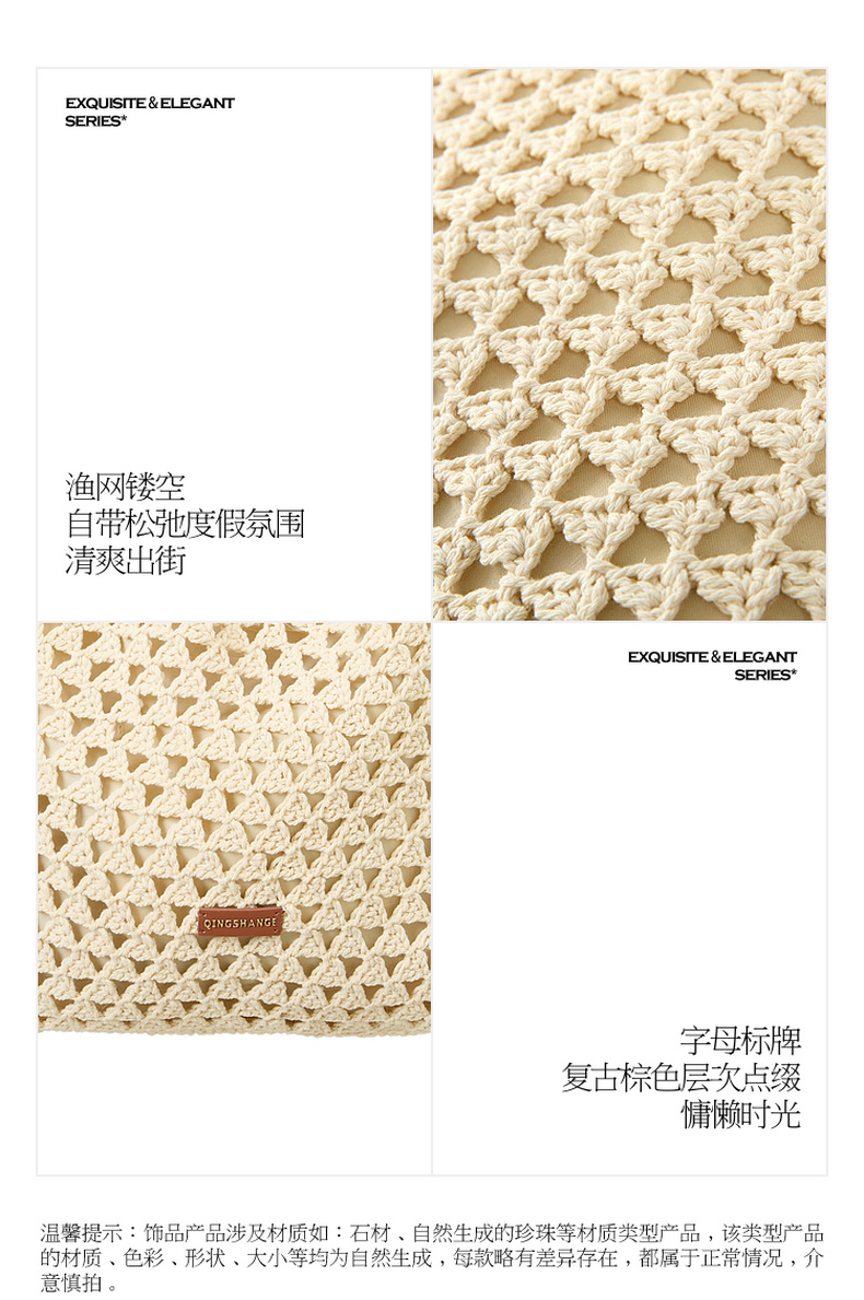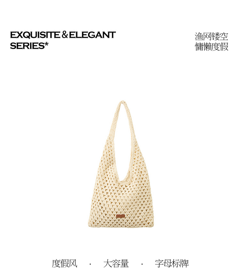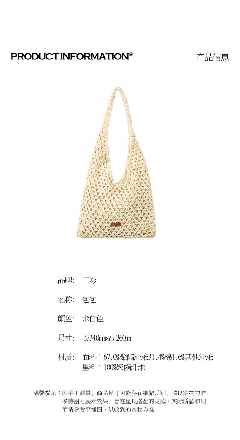 三彩2026新款单肩手提大容量包包通勤渔网镂空慵懒度假托特包休闲
