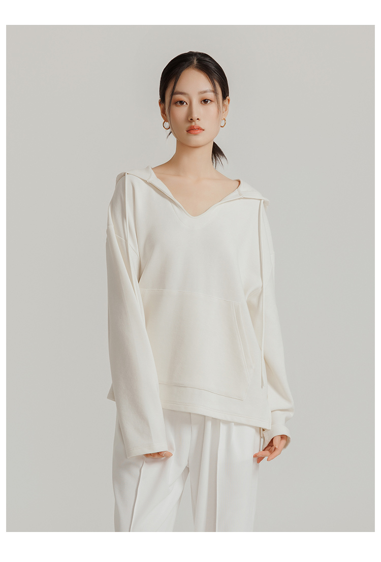 美式大V领设计感慵懒风落肩休闲连帽春秋宽松显瘦卫衣 880009 商品图2