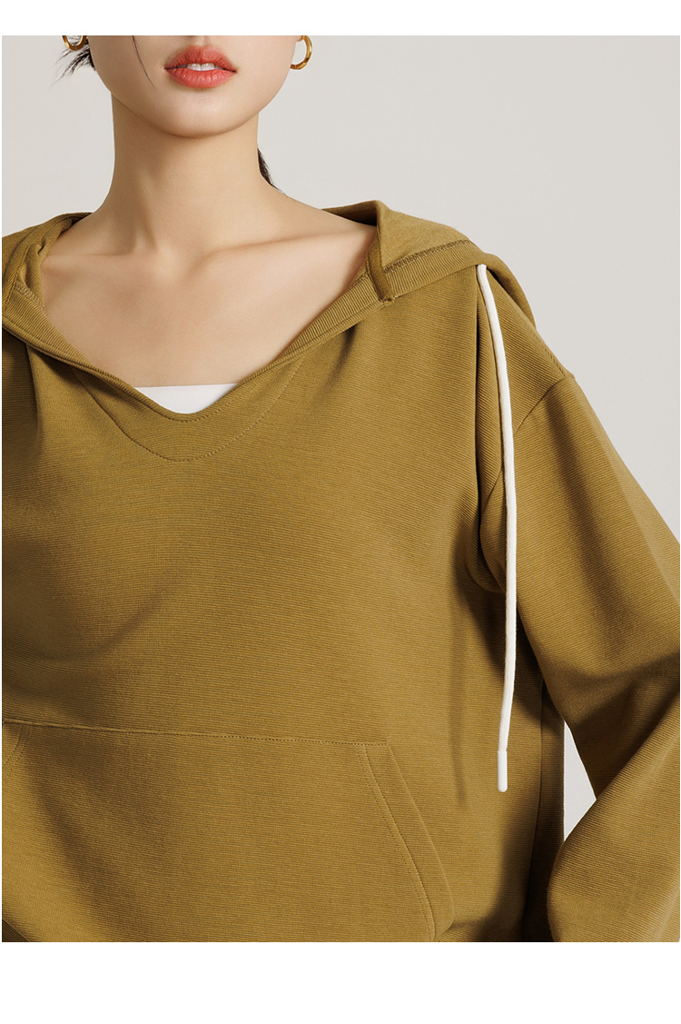 美式大V领设计感慵懒风落肩休闲连帽春秋宽松显瘦卫衣 880009 商品图5