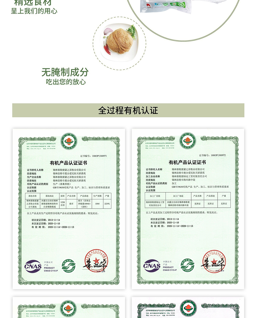 锡盟草原有机羔羊肚600g*2 包邮|基地直发
