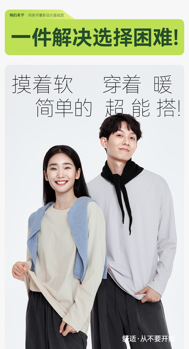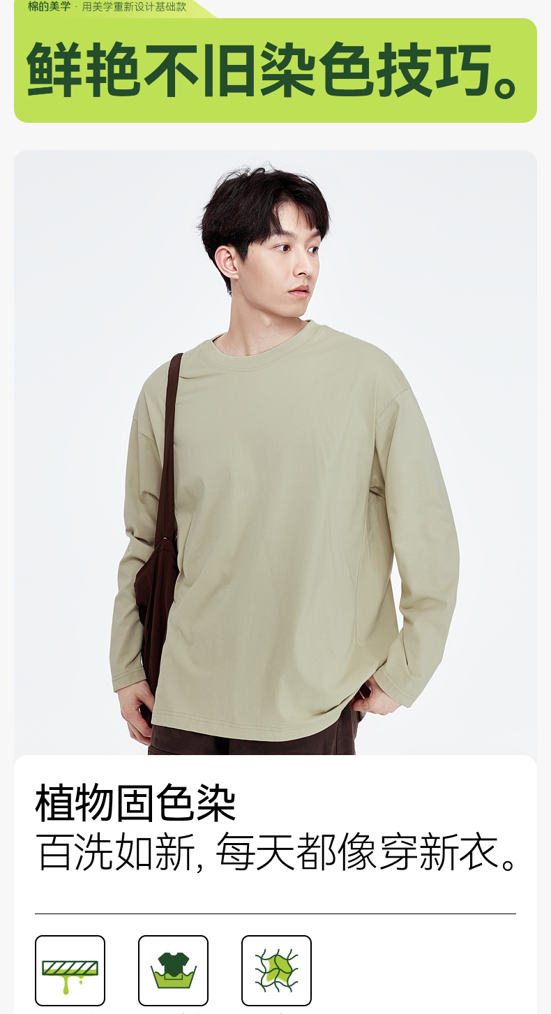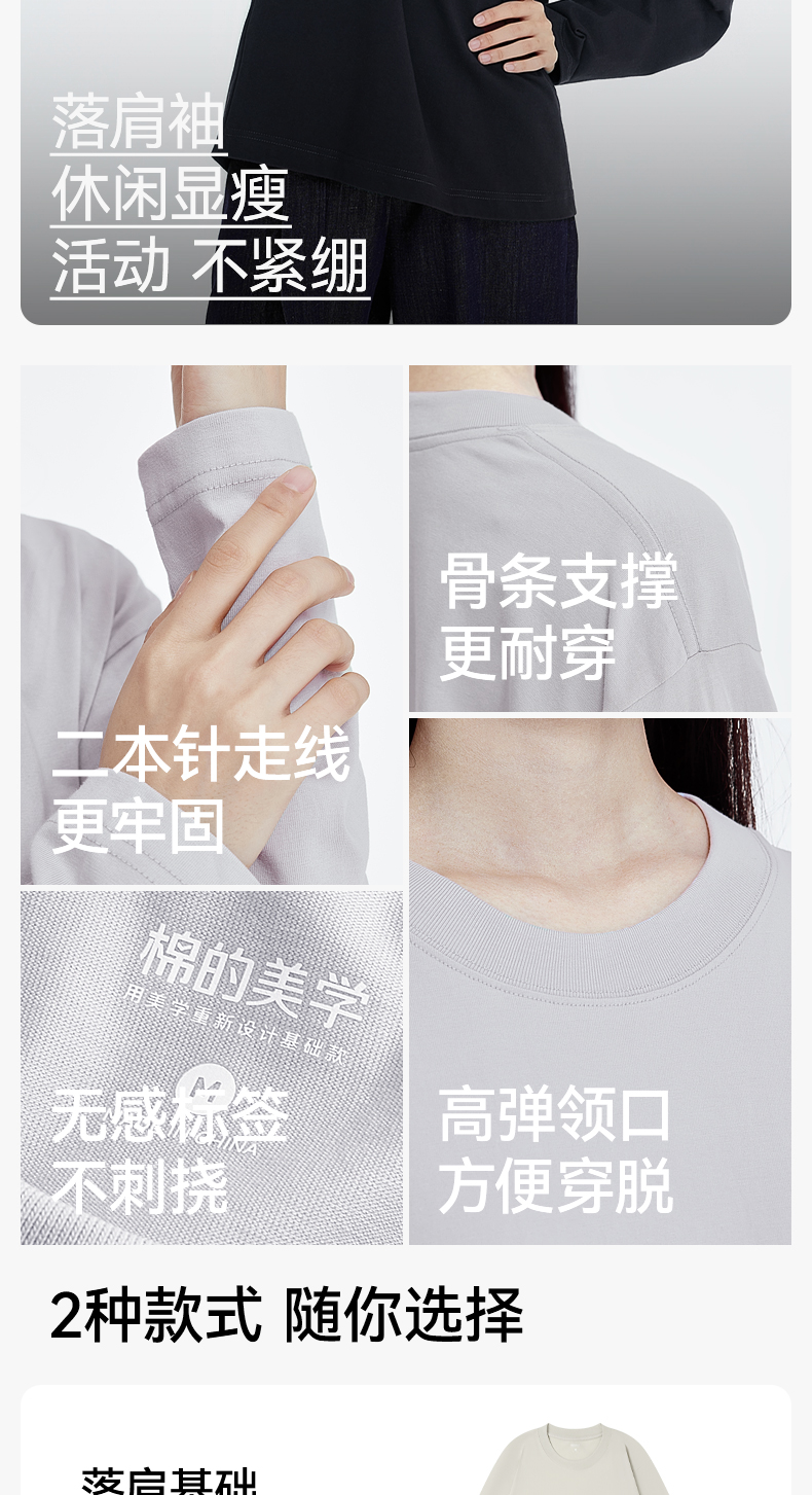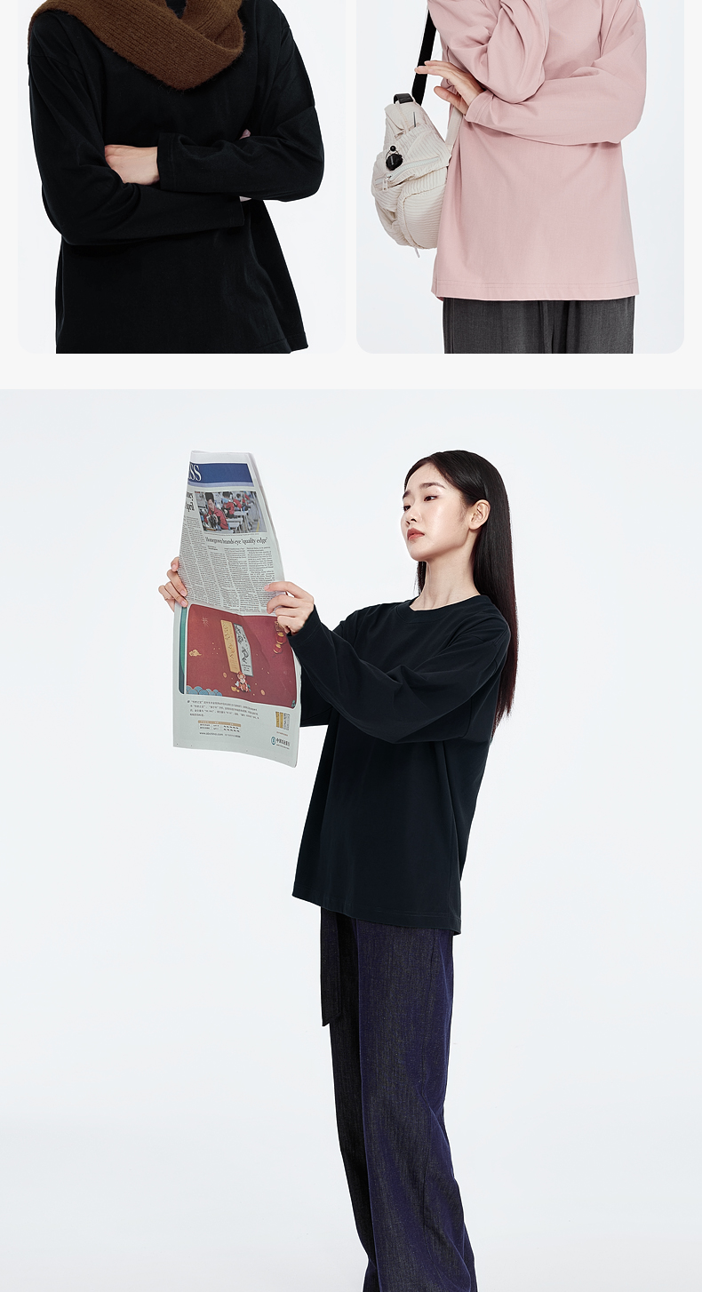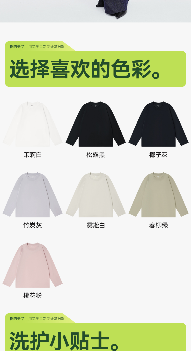 「棉的美学」180G轻薄款秋季纯棉圆领长袖打底衫纯色百搭休闲舒适不费力穿搭