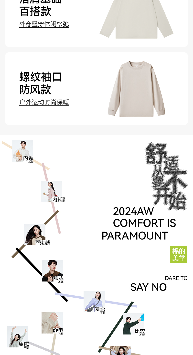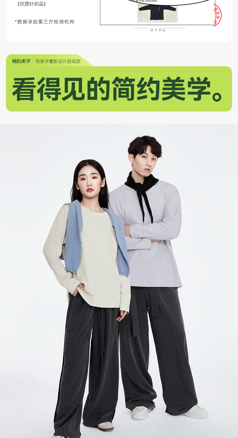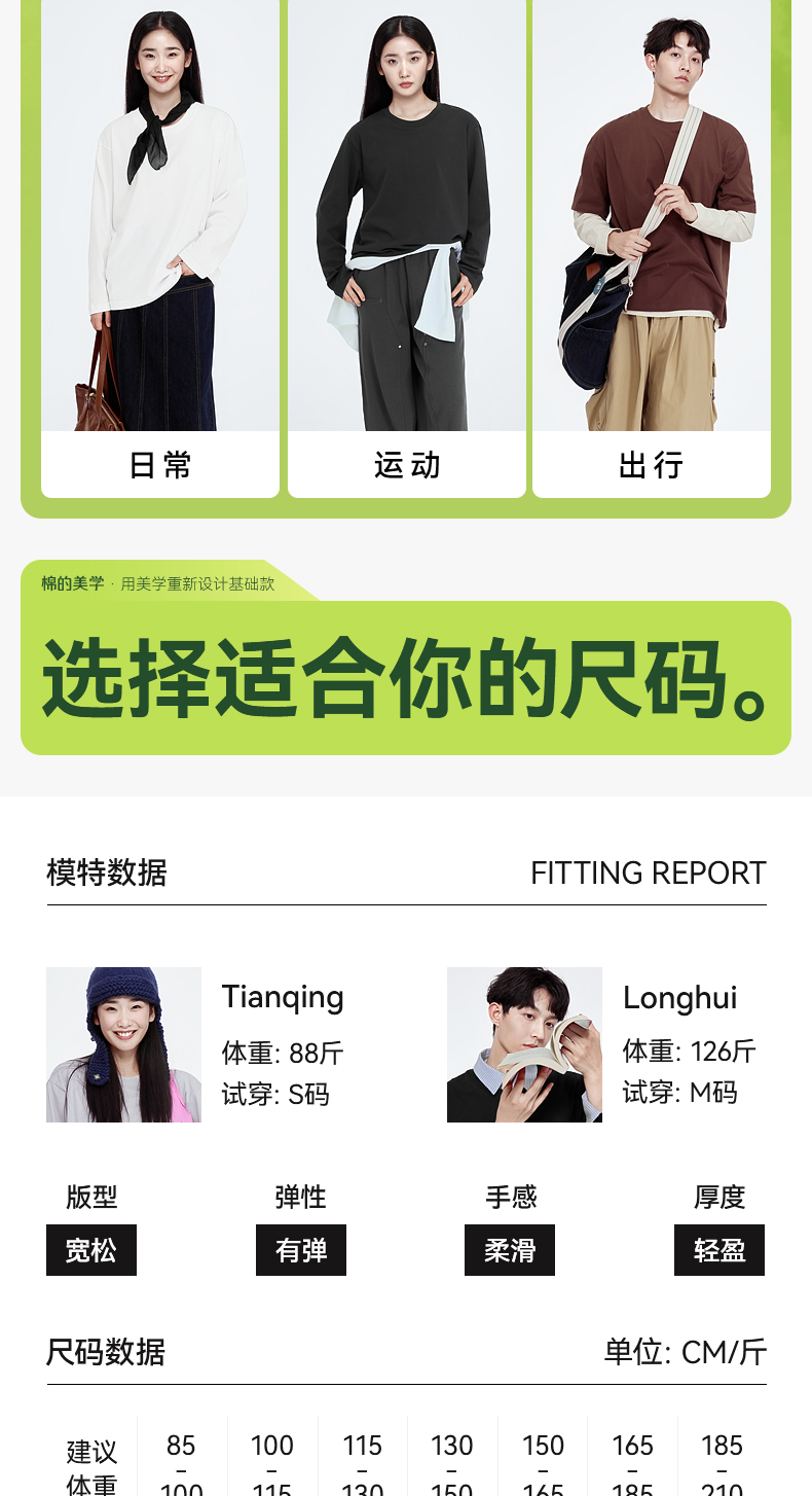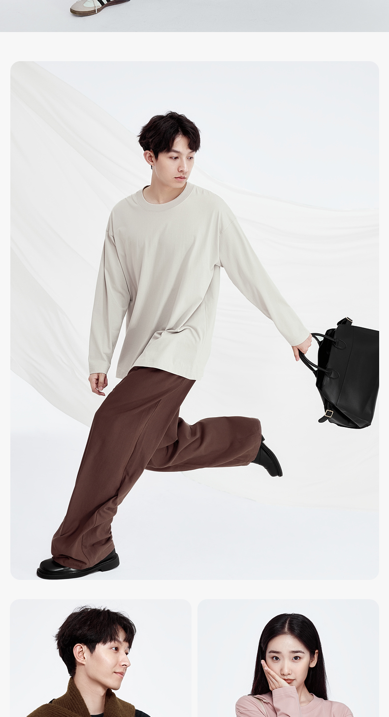 「棉的美学」180G轻薄款秋季纯棉圆领长袖打底衫纯色百搭休闲舒适不费力穿搭