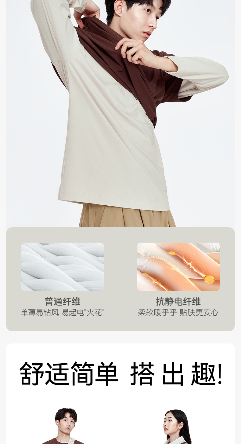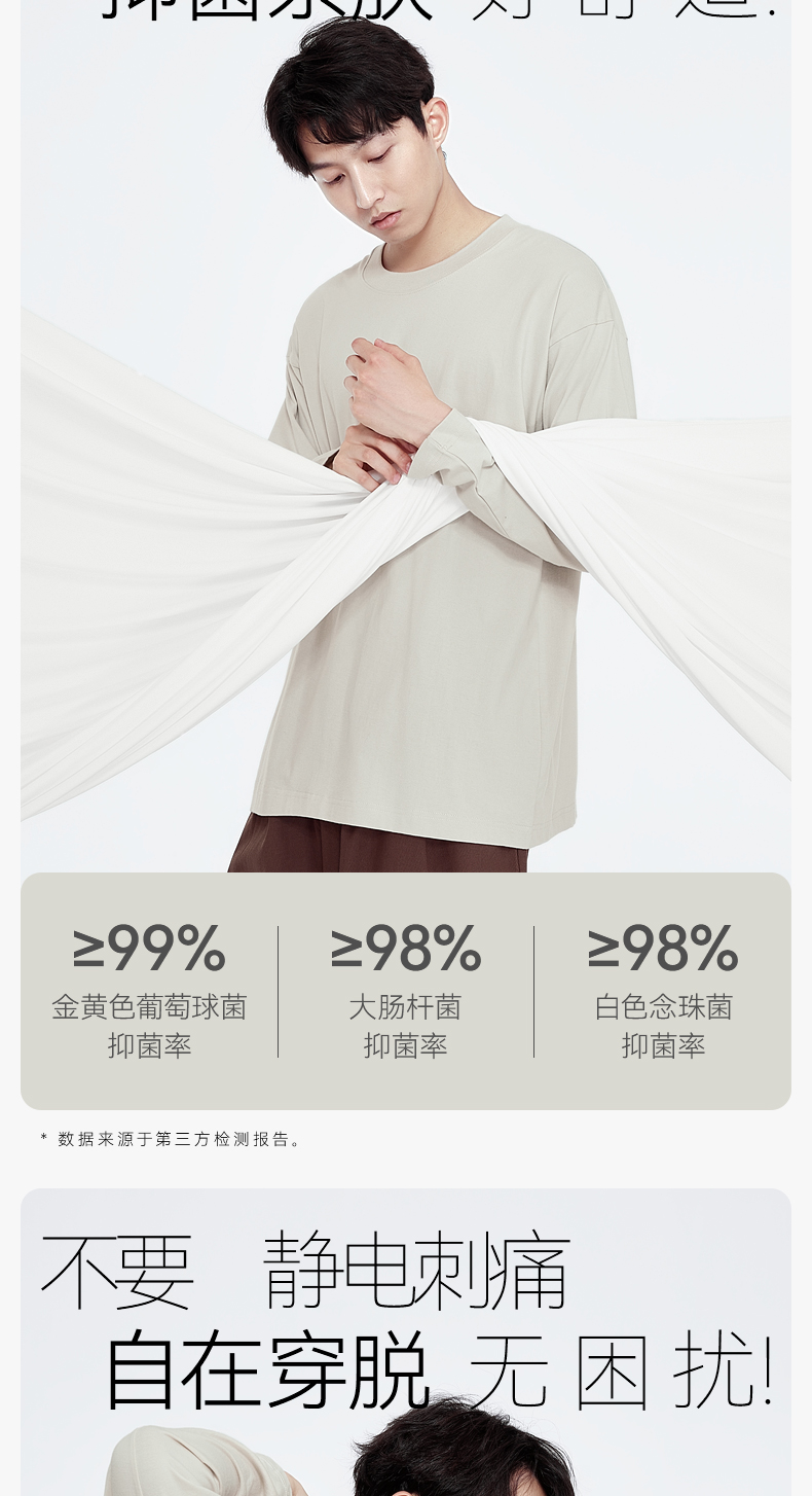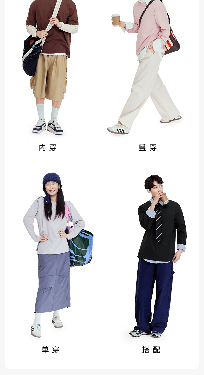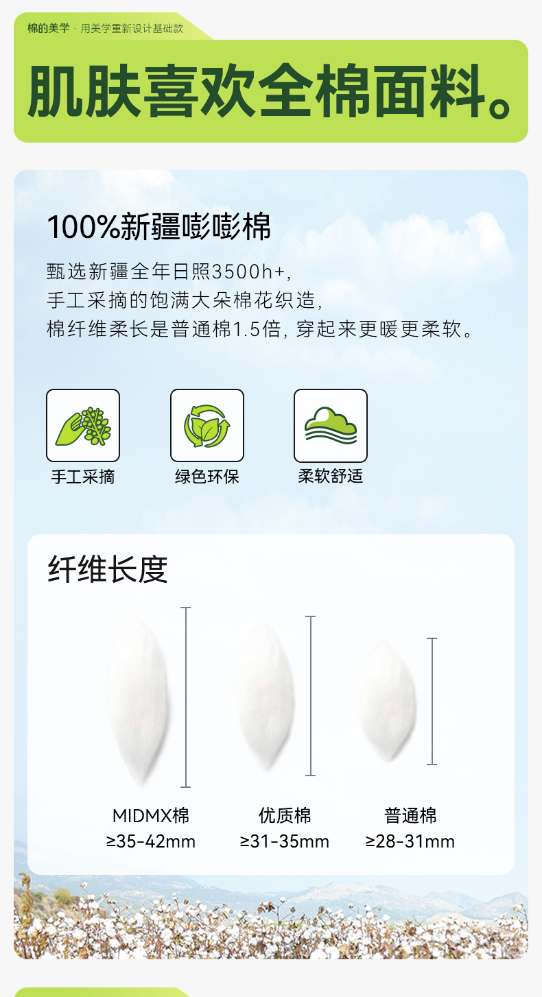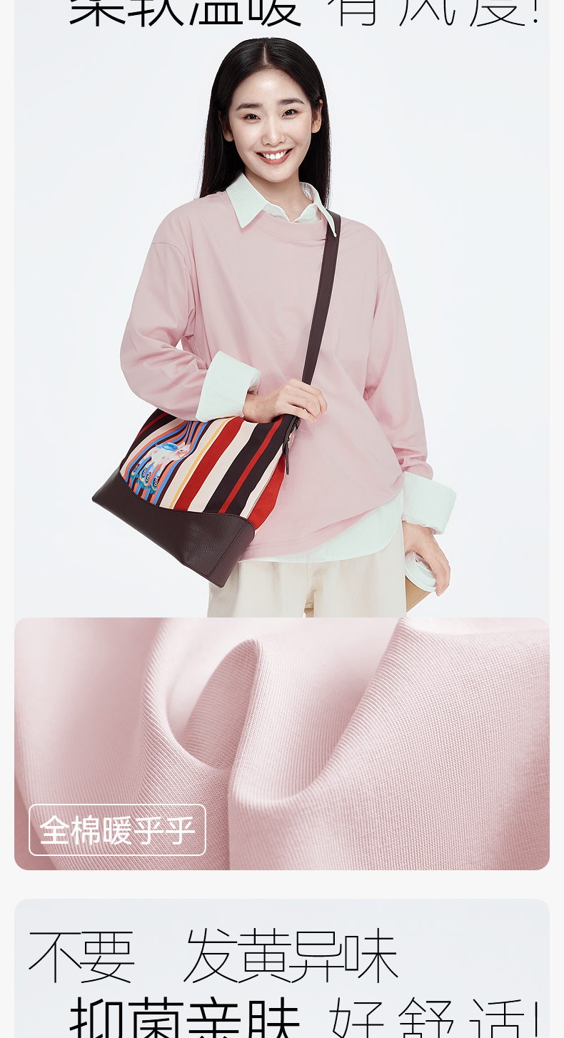 「棉的美学」180G轻薄款秋季纯棉圆领长袖打底衫纯色百搭休闲舒适不费力穿搭