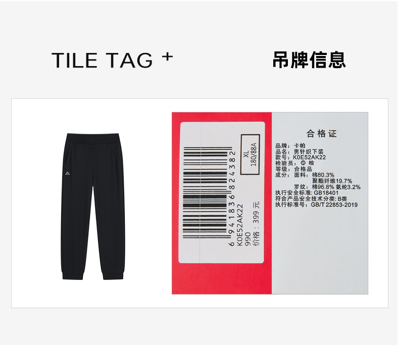 Kappa卡帕背靠背运动长裤男款秋季新款弹力休闲针织裤子束脚男裤K0E52AK22