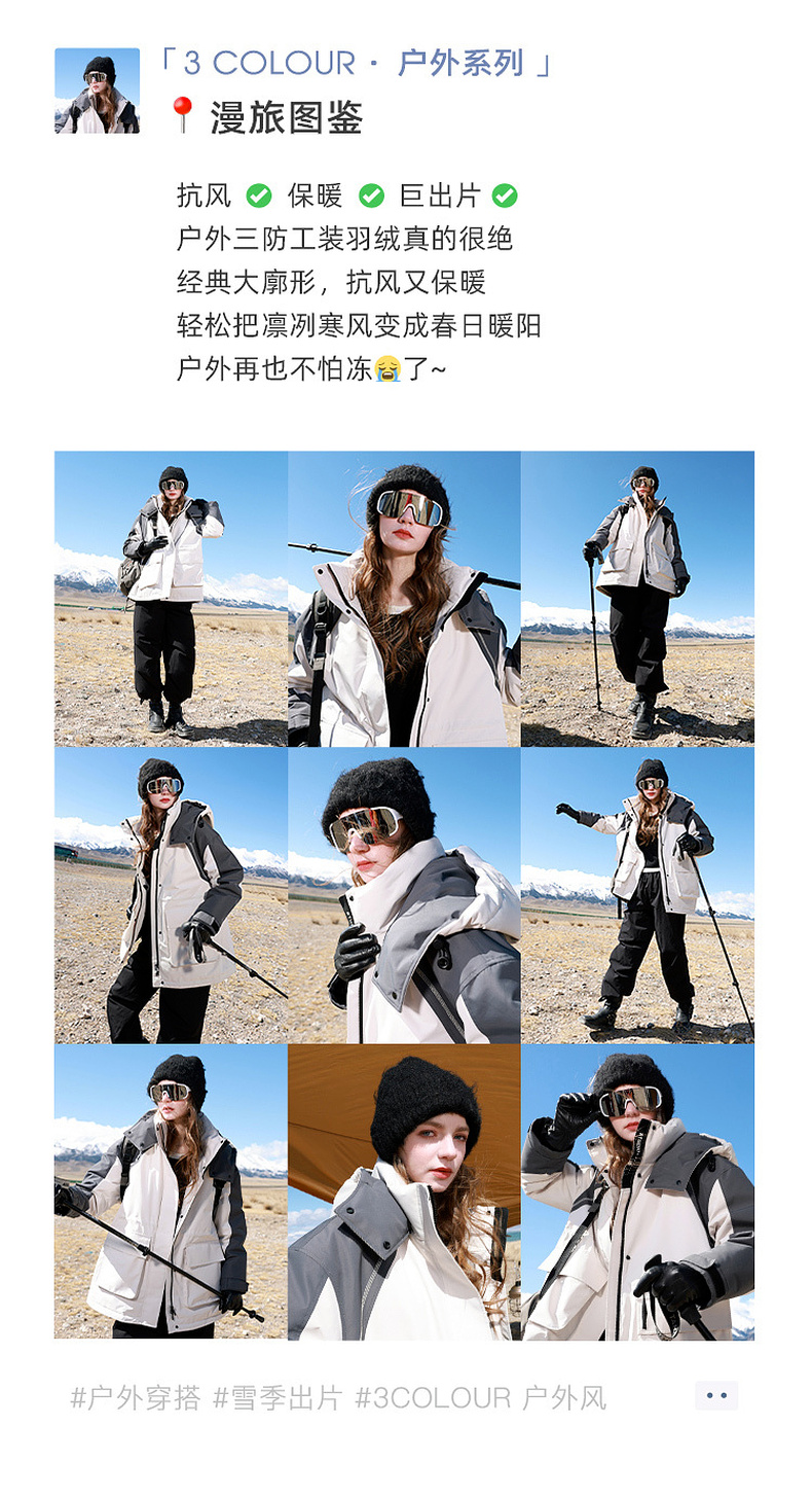 【三防】三彩2025冬季新款90白鸭绒羽绒服易打理户外工装M