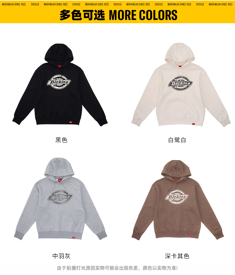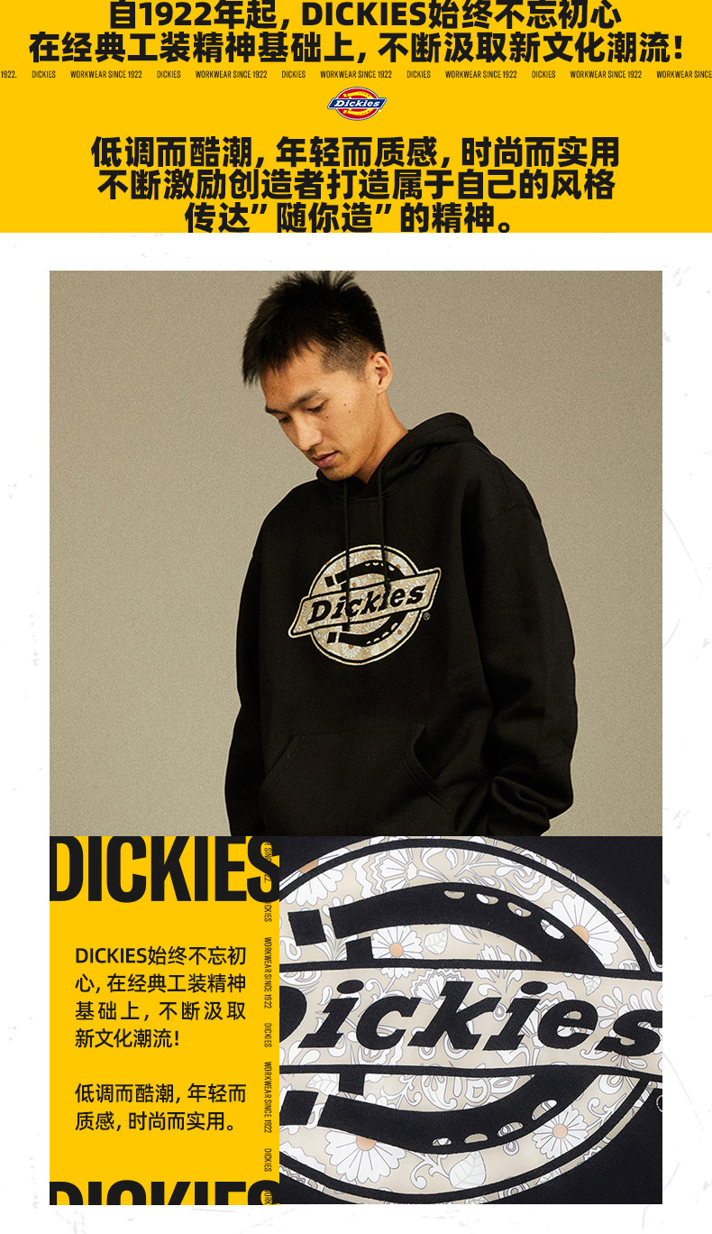 Dickies加绒连帽卫衣秋冬男女同款潮流宽松长袖百搭加厚情侣上衣DK012604