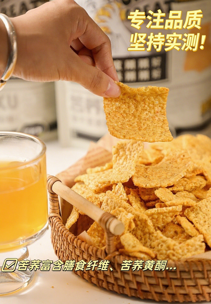 谁能拒绝一款又香又酥还不踩雷的零食啊!这款香酥苦荞片我能回购 N 次! 吃起来完全没有负担,随时随地来一包,美食与享受轻松拥有!💖