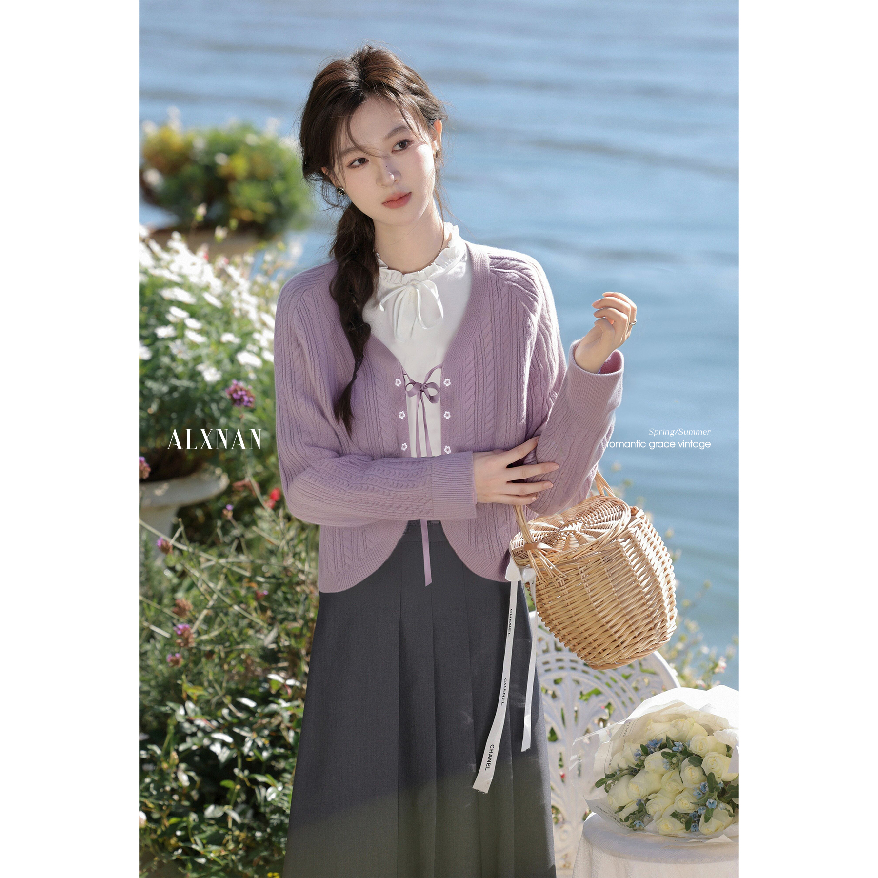 【65折秒杀】鹿向南「芋香绮韵」紫色宽松针织开衫2025春季新款时尚上衣女士