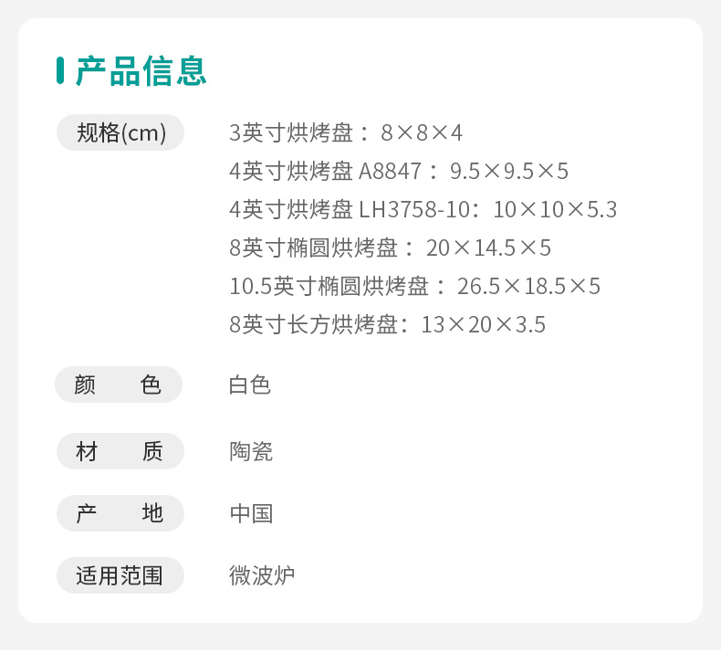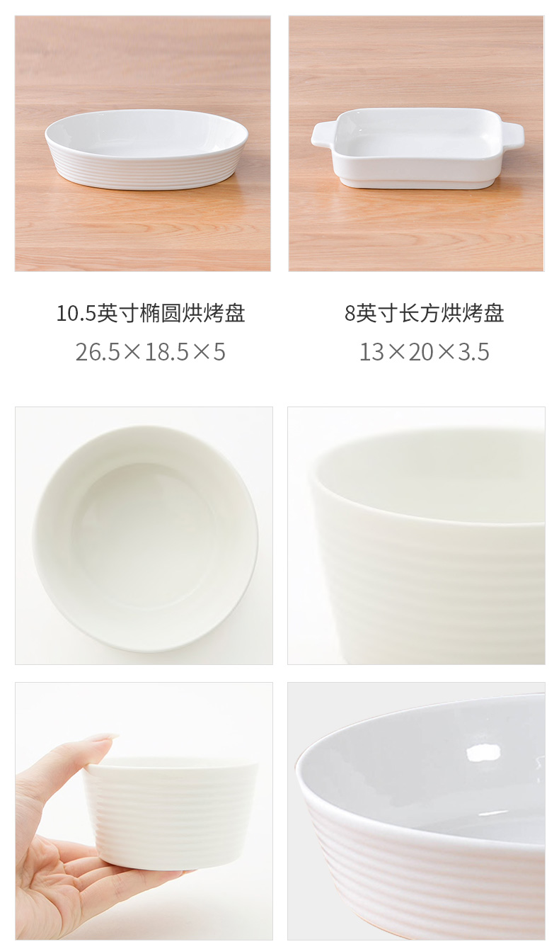 烘烤盘 纯白系列 约10.5英寸椭圆/8英寸椭圆