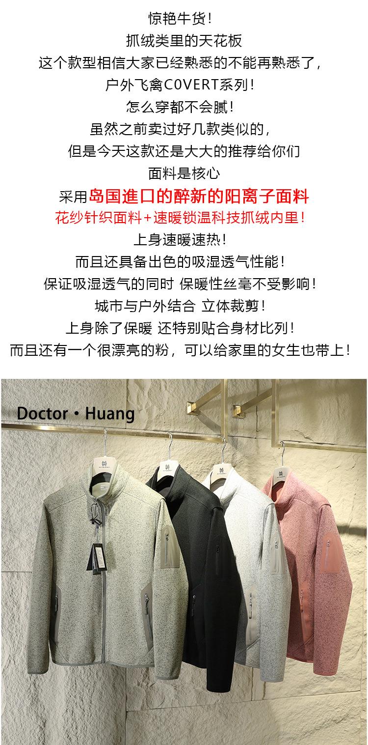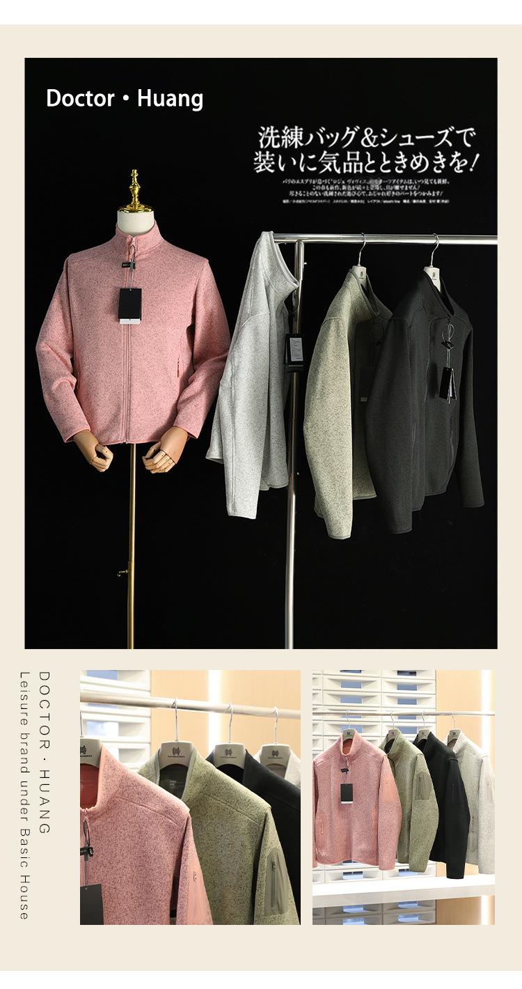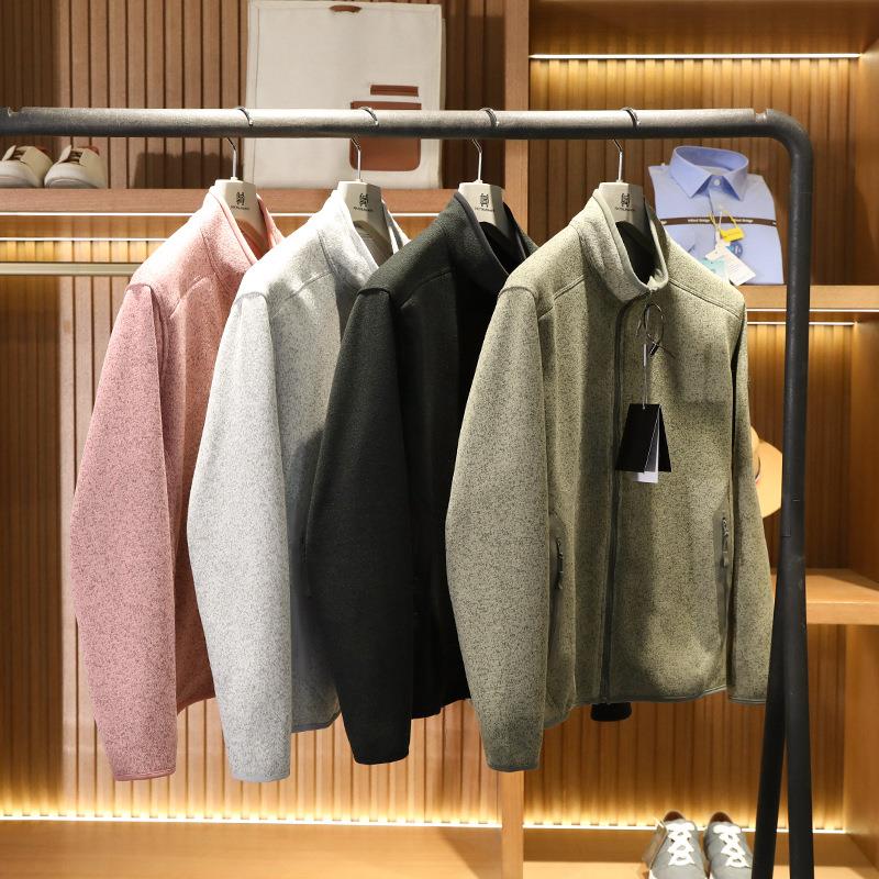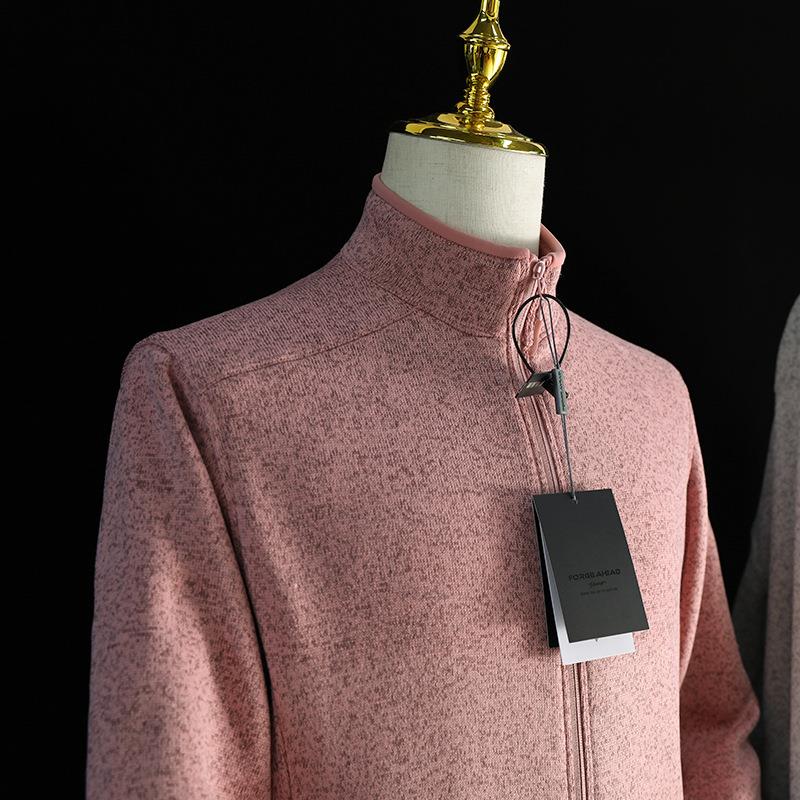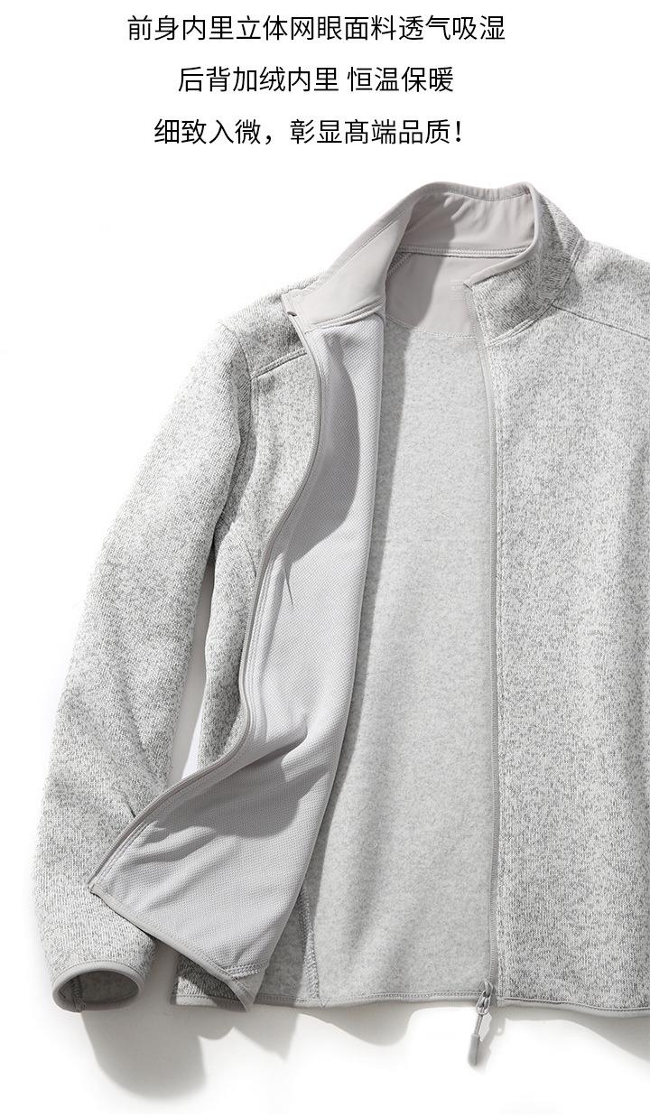 鸟家抓绒衣男女同款 秋冬加绒立领外套打底针织开衫情侣运动夹克