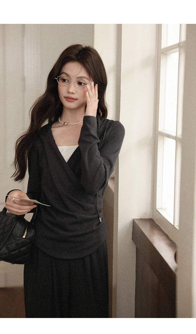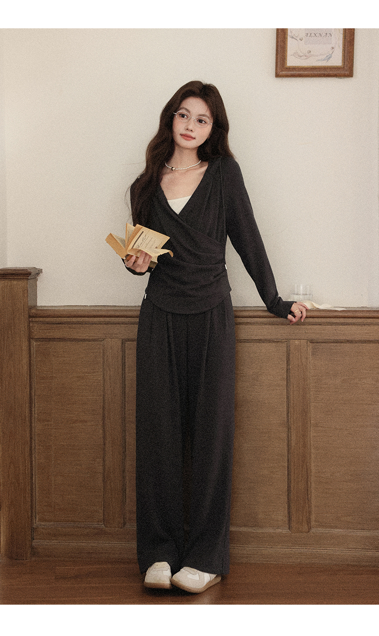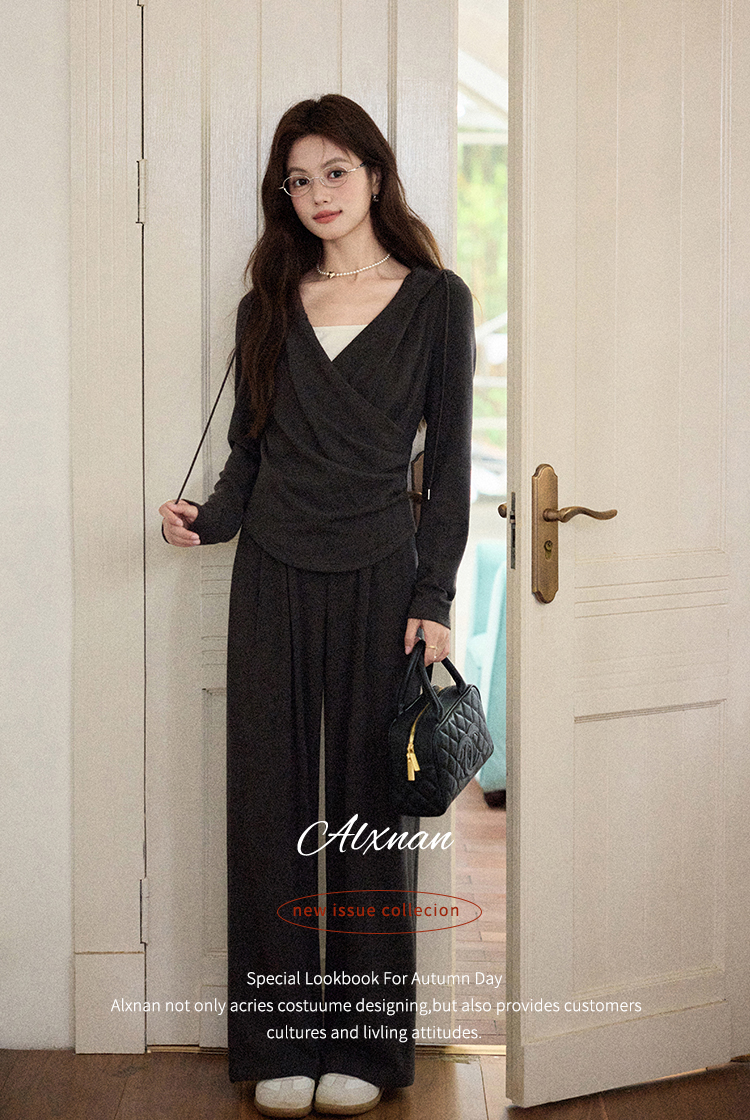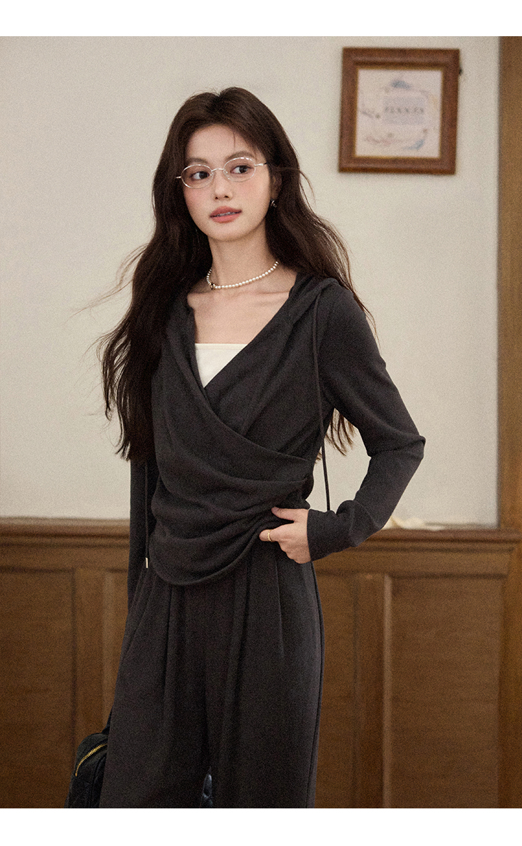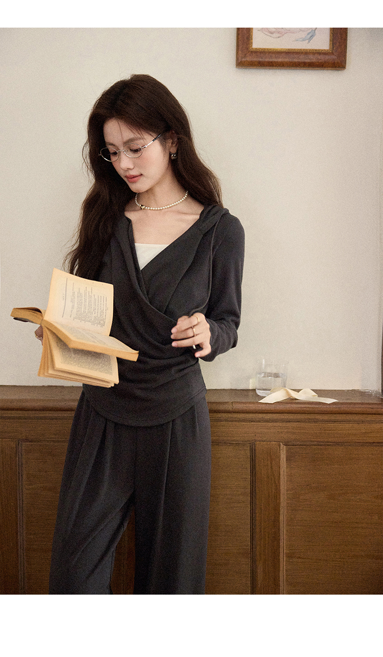 鹿向南「贝加尔岸」深灰色长袖连帽T恤休闲裤套装女秋新款两件套