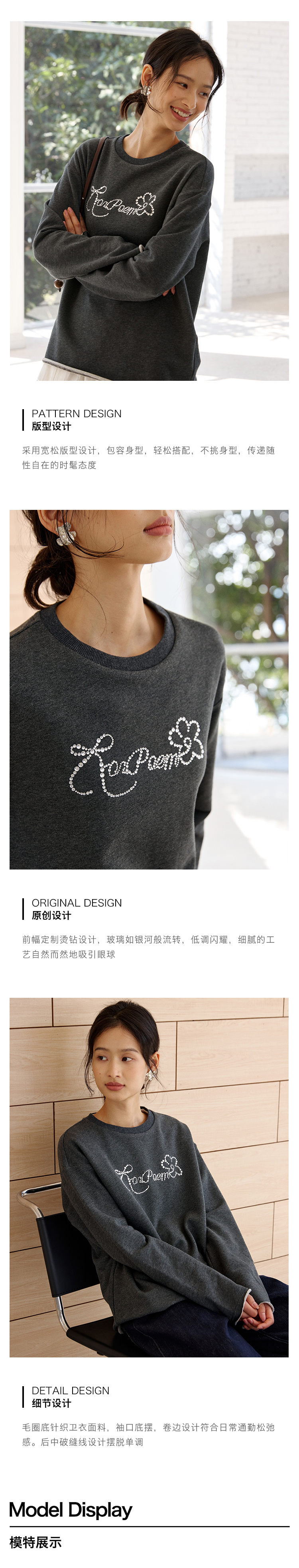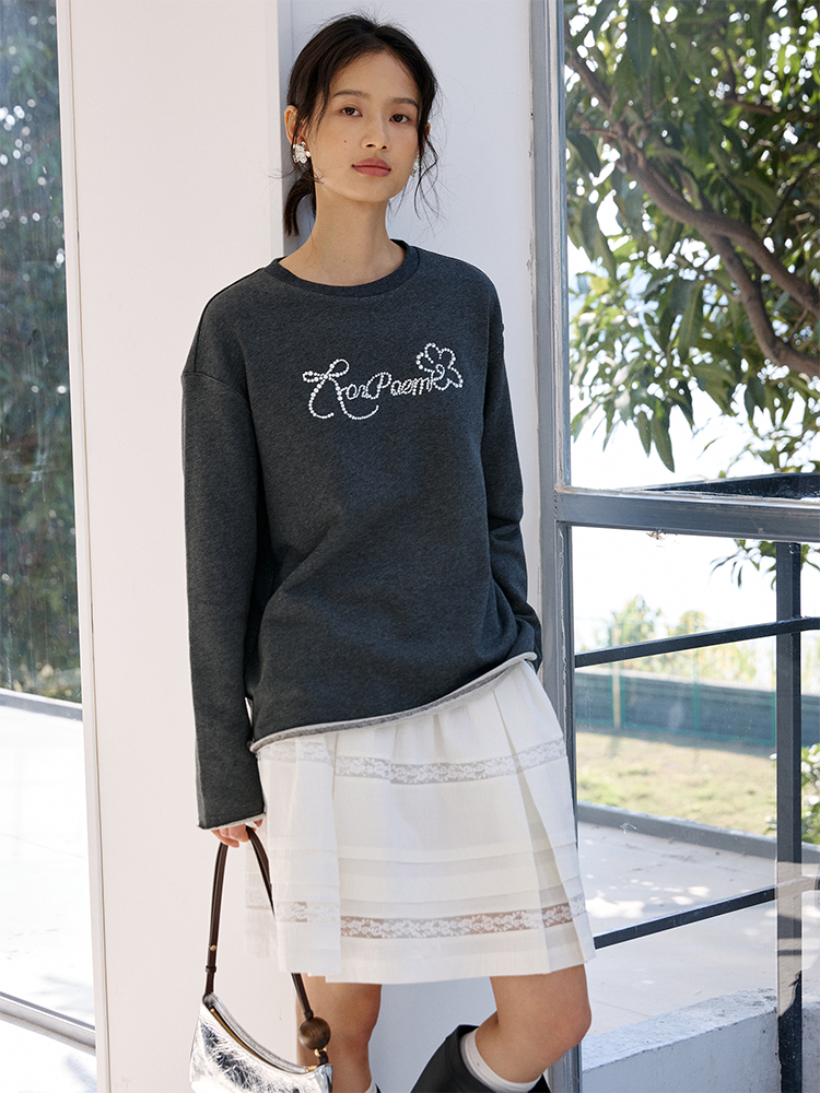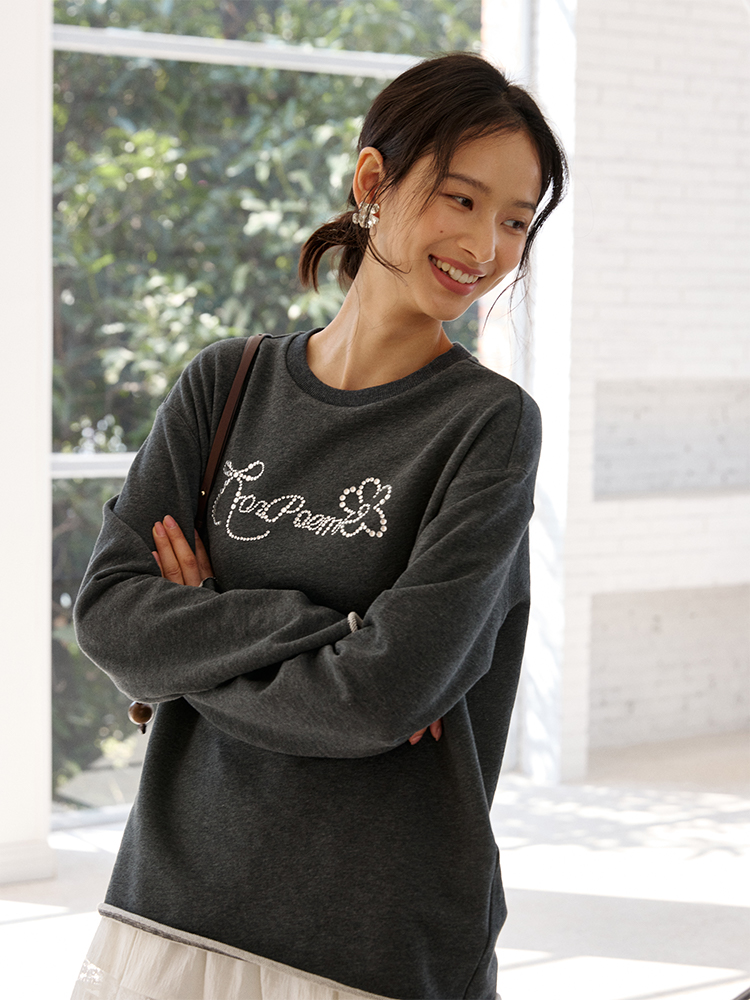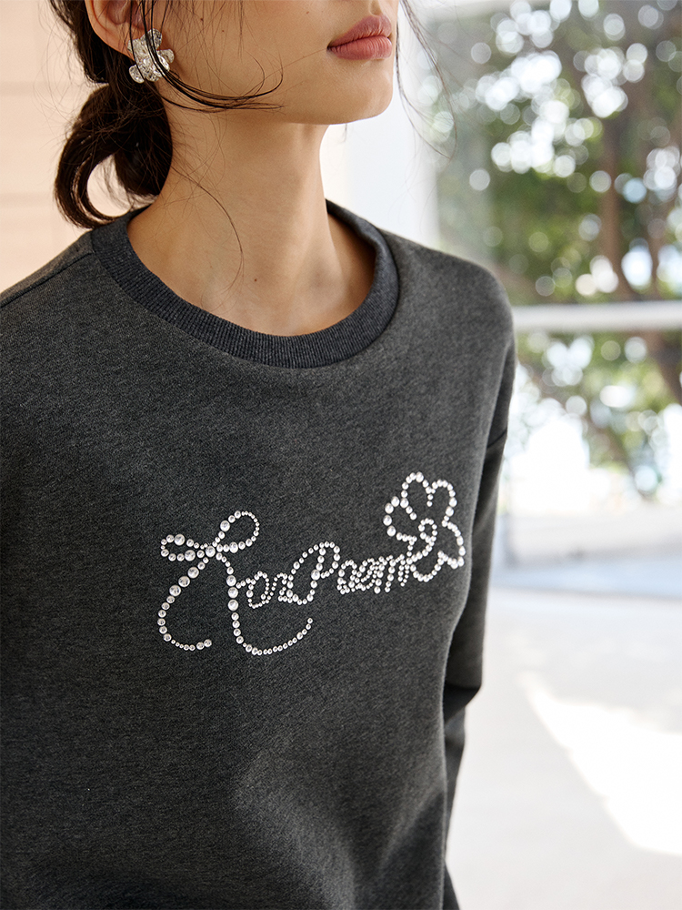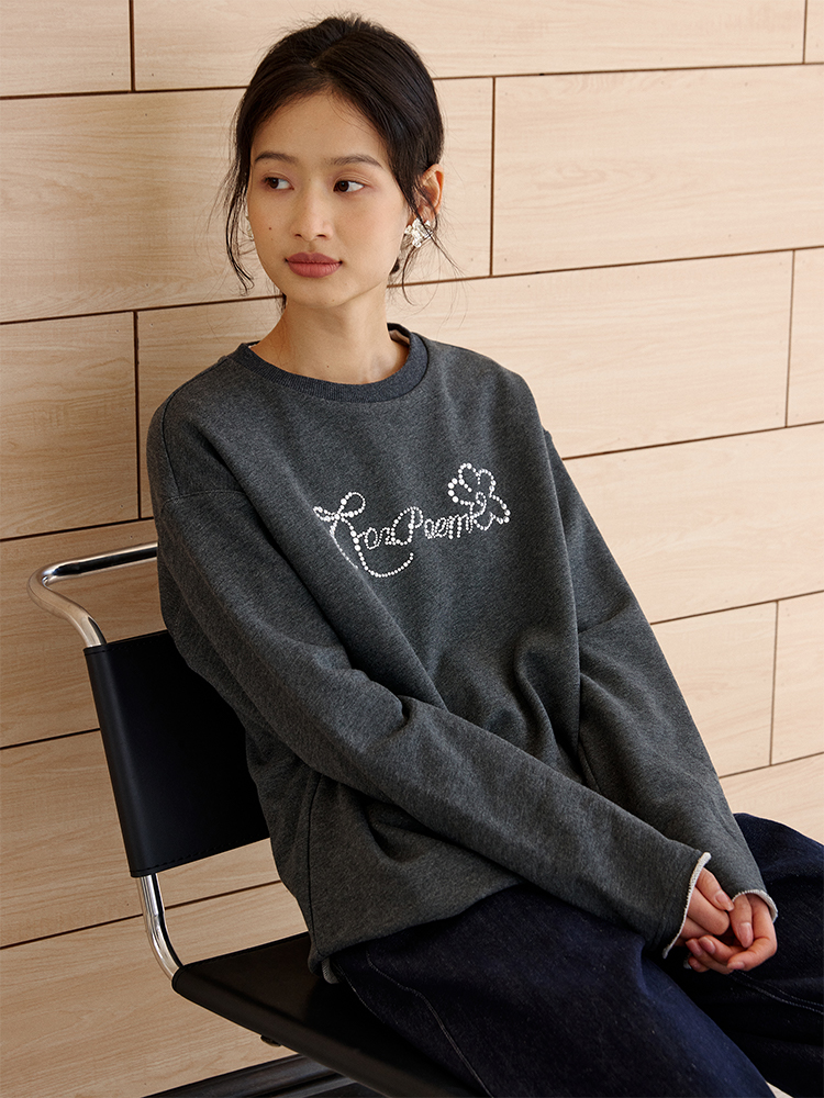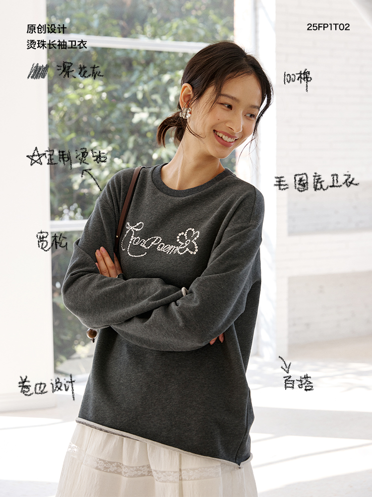 ForPoem 现货 25/SS原创设计春夏卷边毛圈底烫钻长袖卫衣