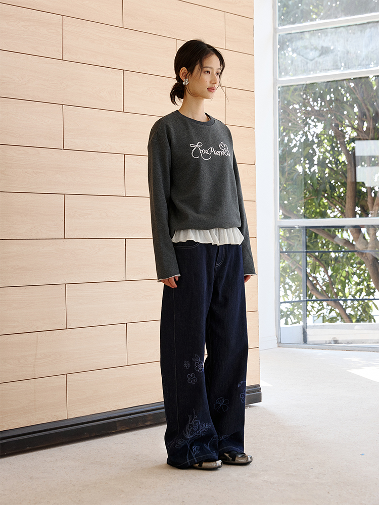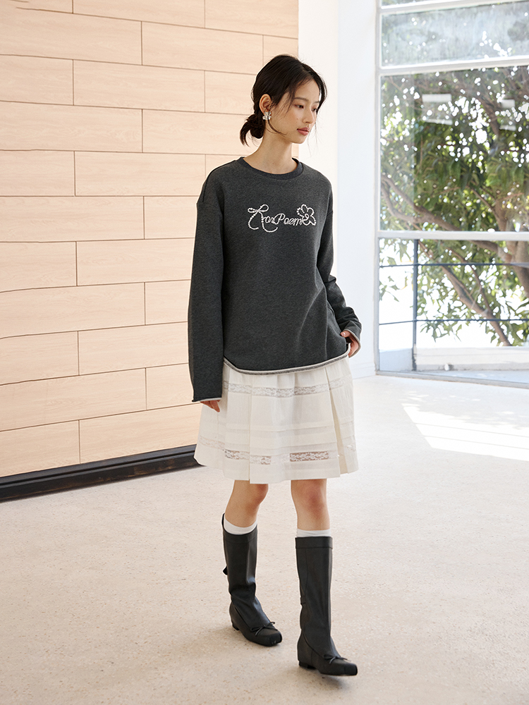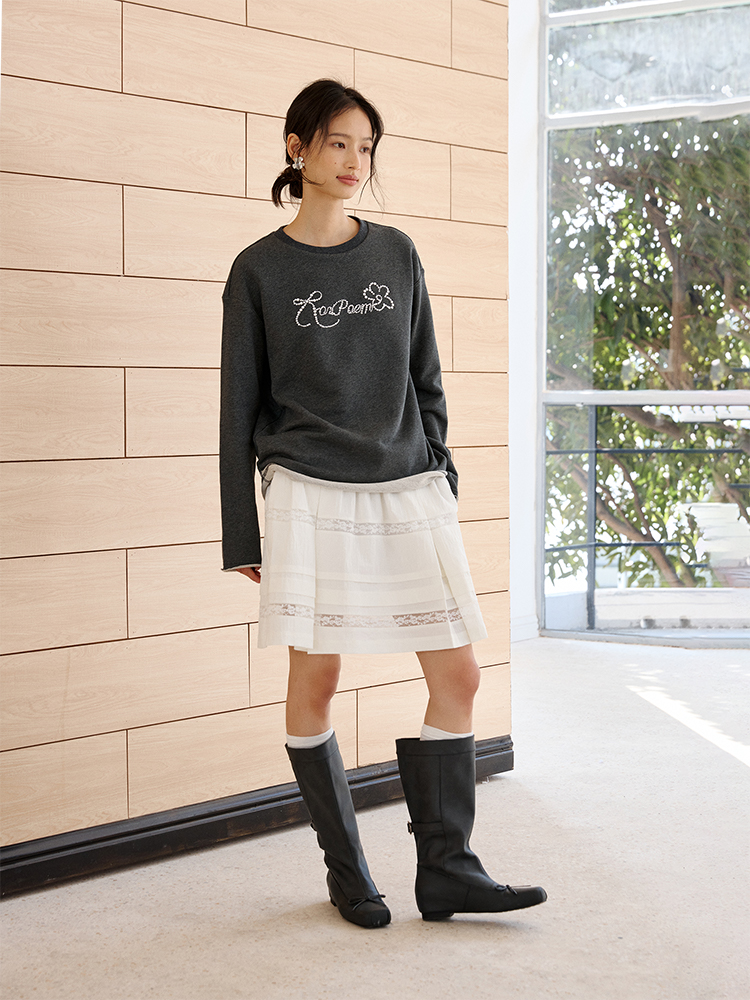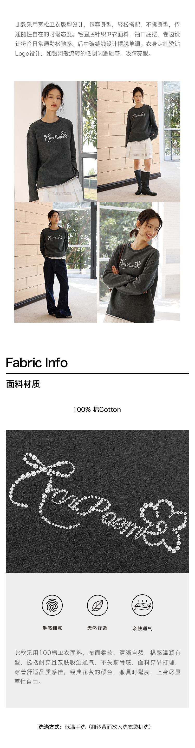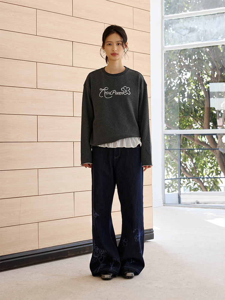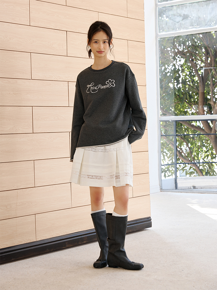 ForPoem 现货 25/SS原创设计春夏卷边毛圈底烫钻长袖卫衣