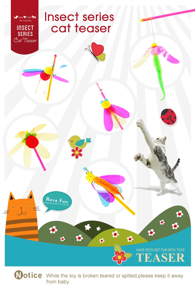 AmyCarol昆虫系列逗猫棒羽毛铃铛虫虫系列成幼猫互动玩具