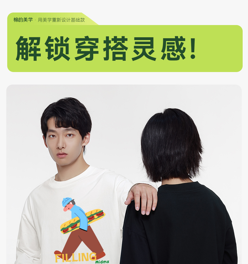 「棉的美学」230G重磅美式男孩纯棉T恤2024新款白色打底衫长袖卫衣