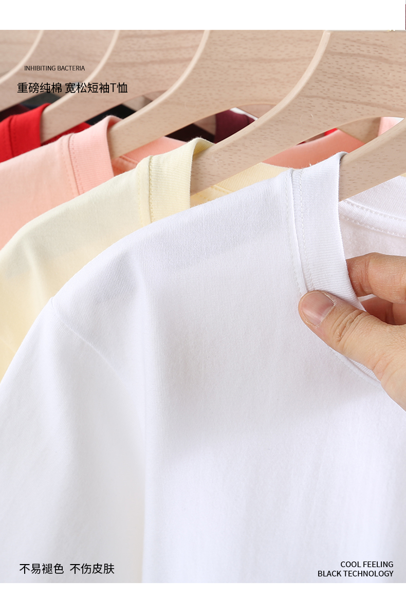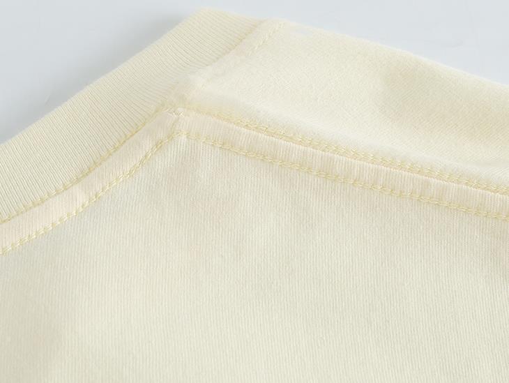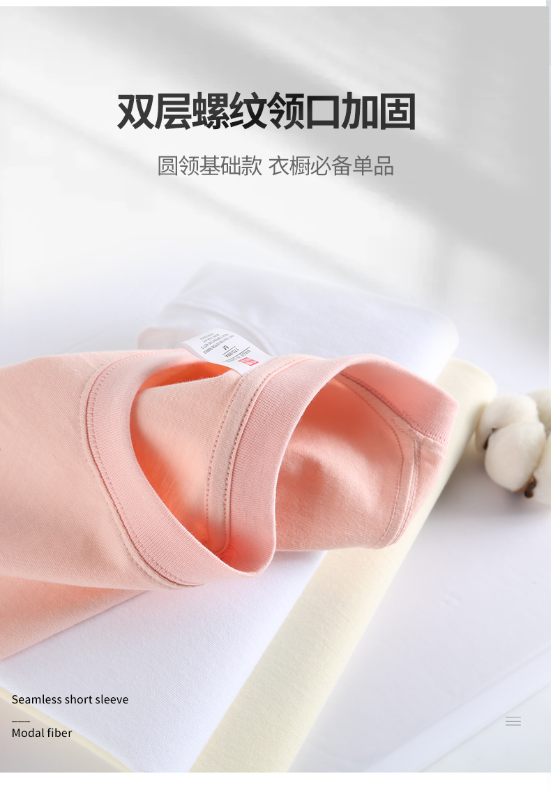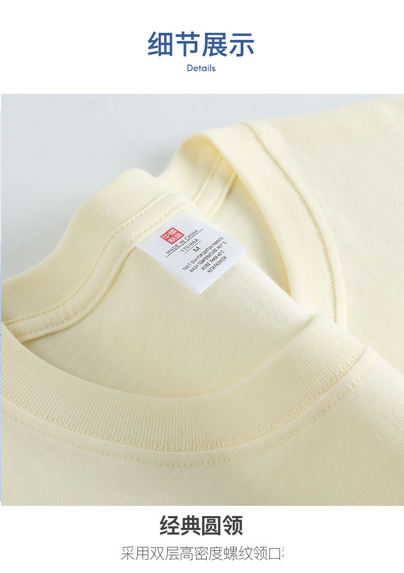 双层螺纹领口加固,圆领是t恤里的经典款,简约百搭,夏天出汗也不容易黏脖子。