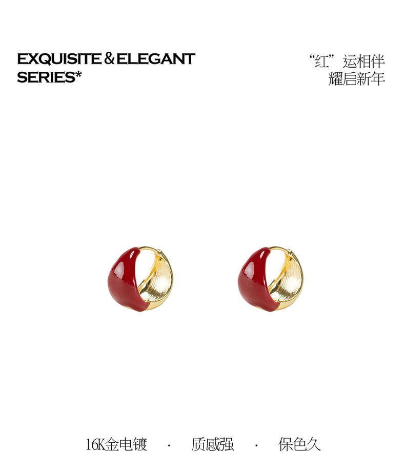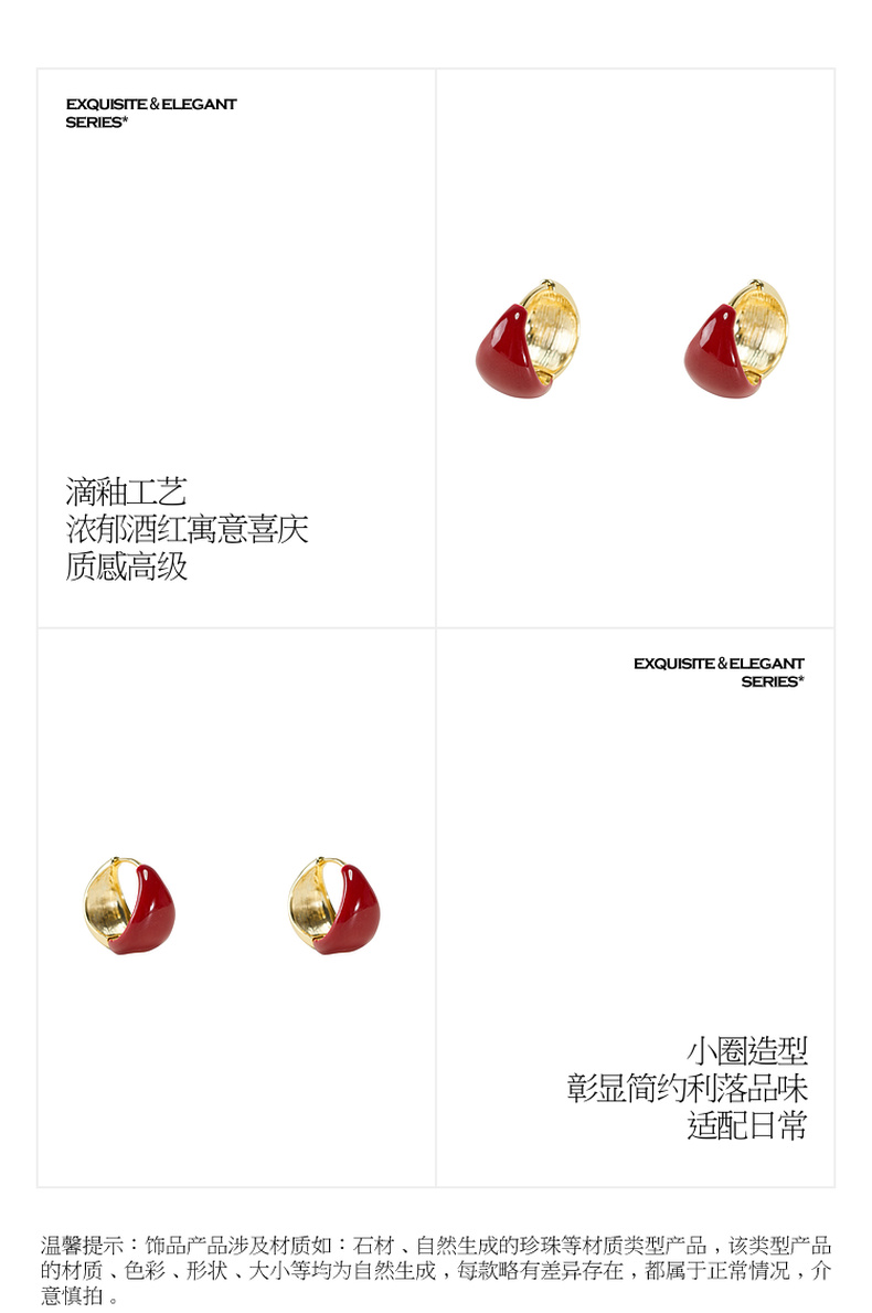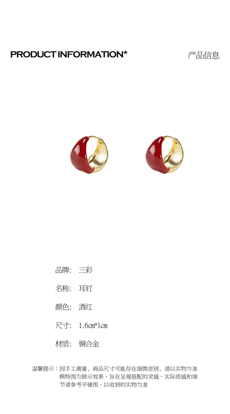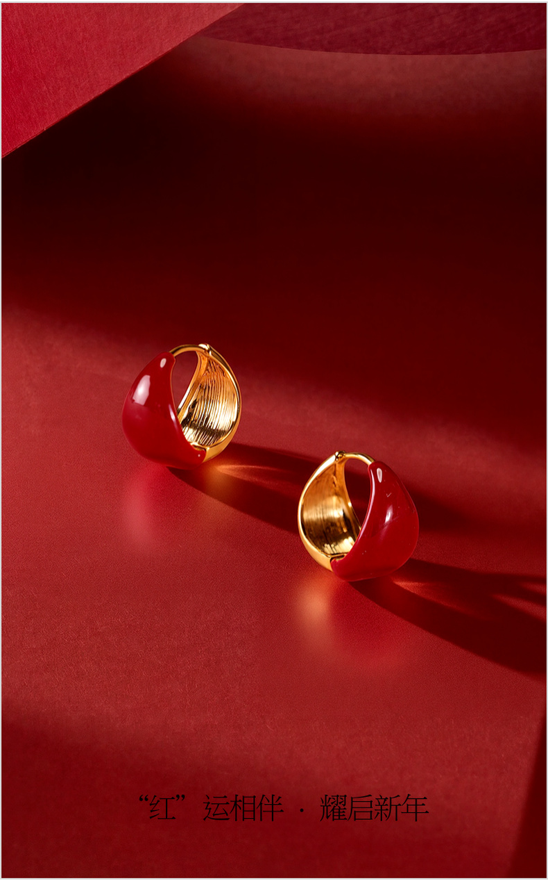 三彩2026新款新年酒红滴釉耳钉圈环复古轻熟简约喜庆聚会氛围感