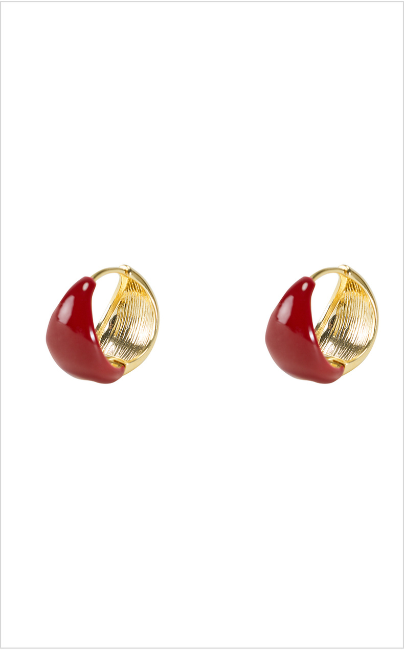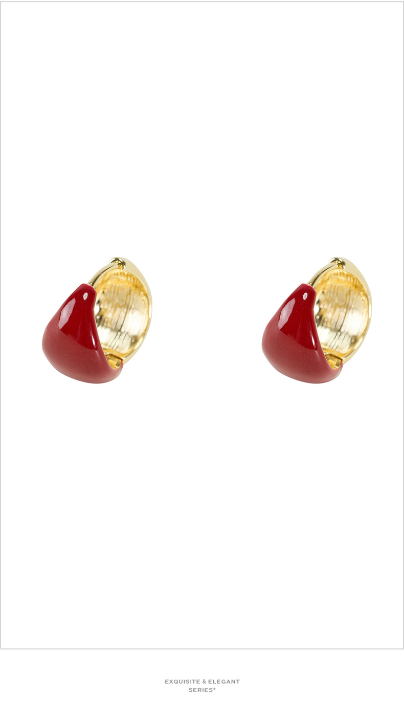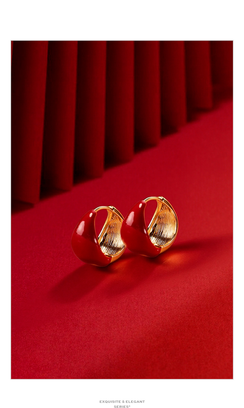 三彩2026新款新年酒红滴釉耳钉圈环复古轻熟简约喜庆聚会氛围感