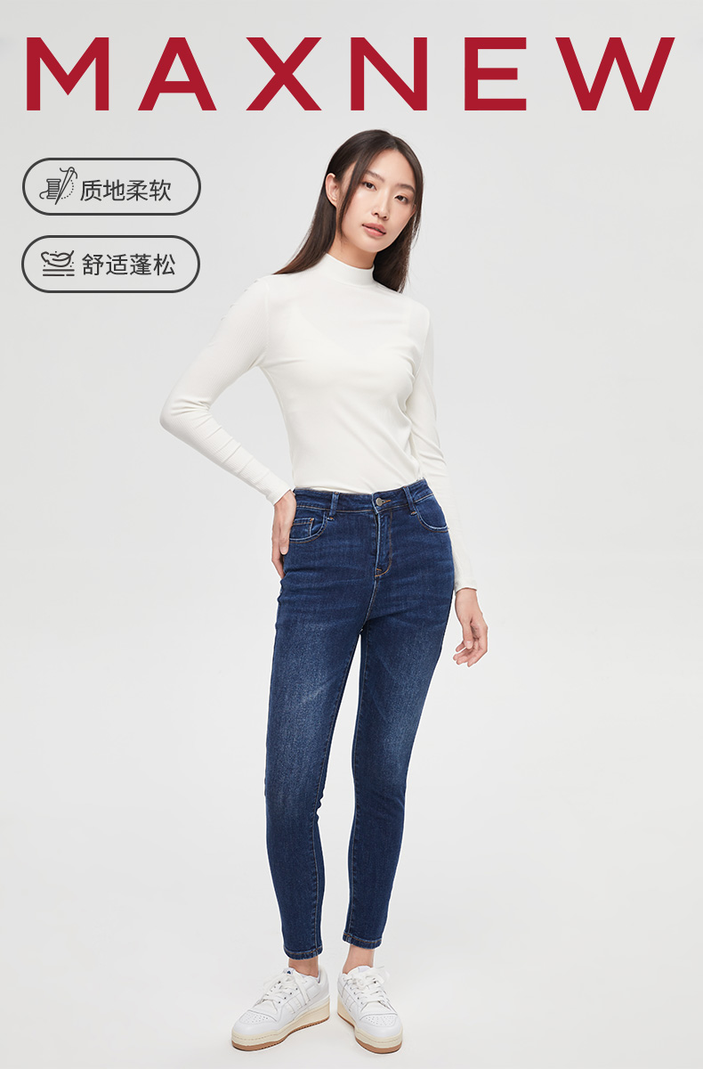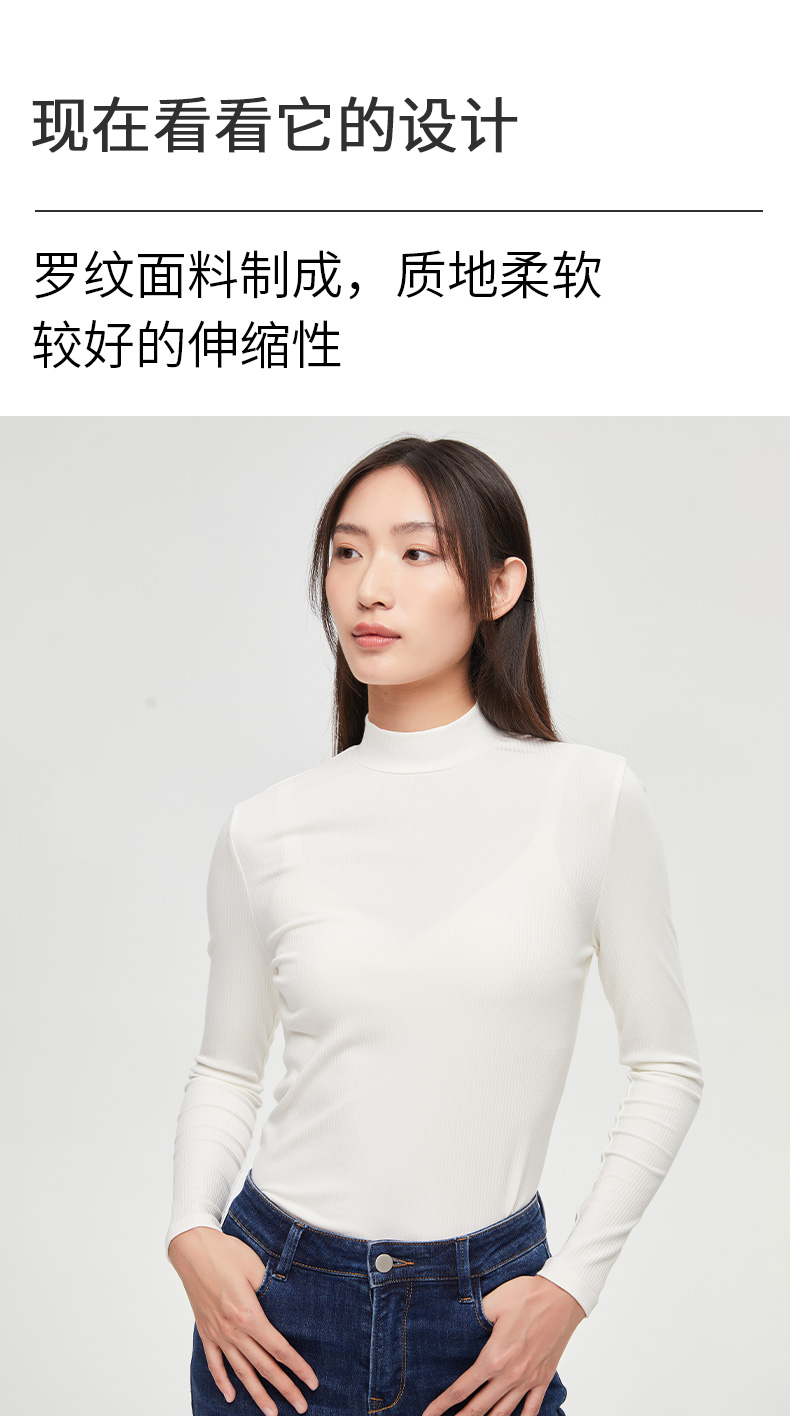 【门店同款】马恩MAXNEW女装素色长袖T恤秋冬高领内搭上衣纯色保