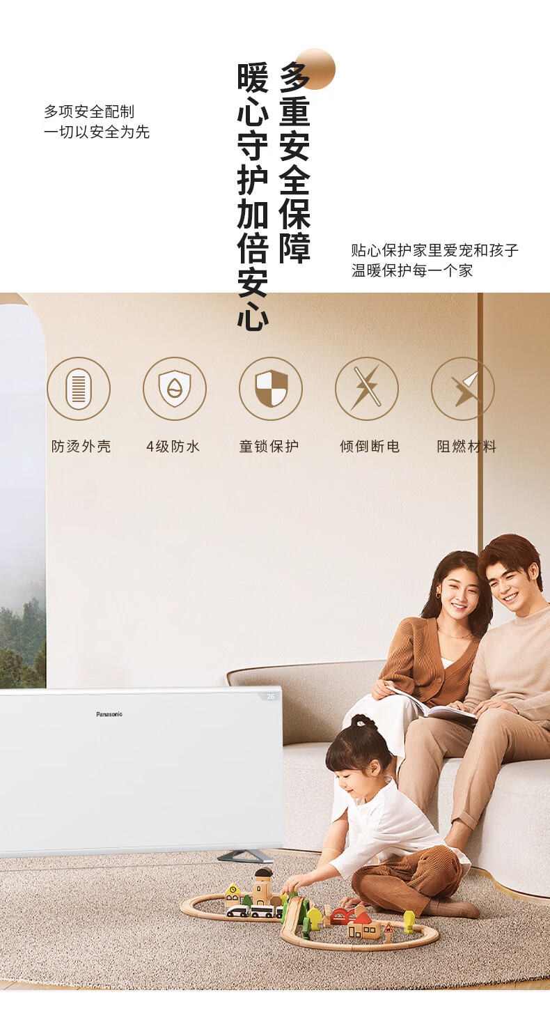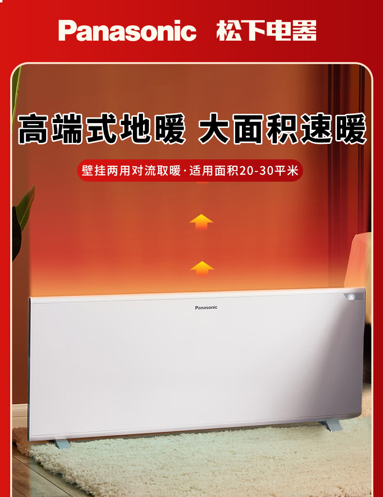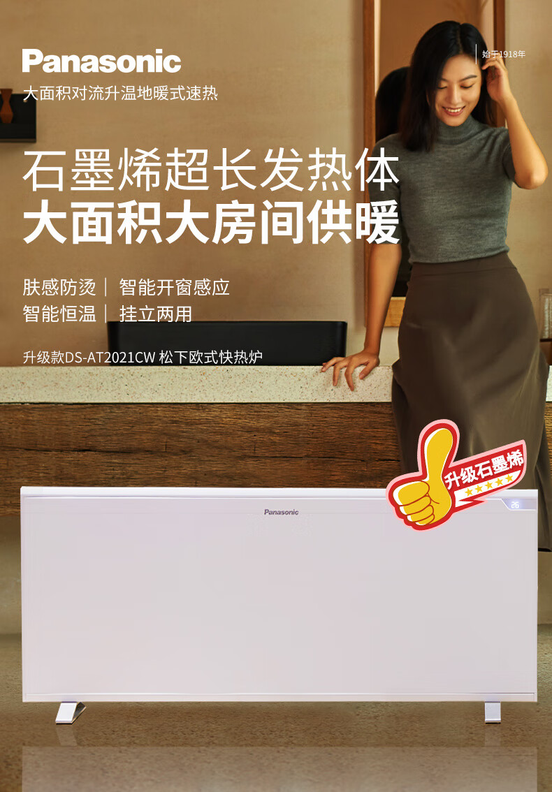 松下(Panasonic)取暖器家用欧式快热炉石墨烯电暖器速热遥控变频恒温浴室对流式电热炉防水壁挂电暖气 AT2021CW【超薄机身+顶配发热体+壁挂两用】