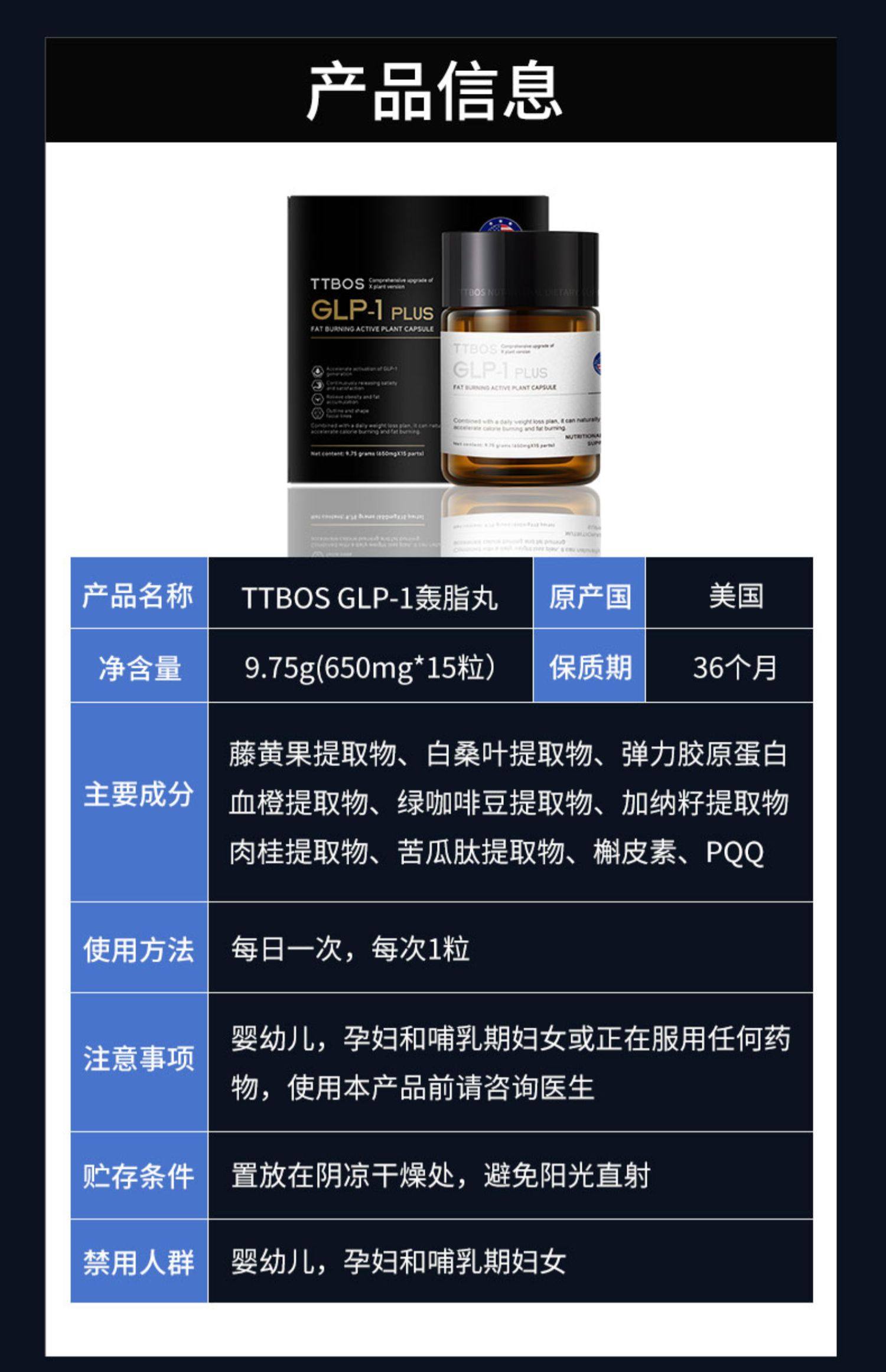 美国TTBOS植物GLP-1 PLUS轰脂丸16+8轻断食15粒