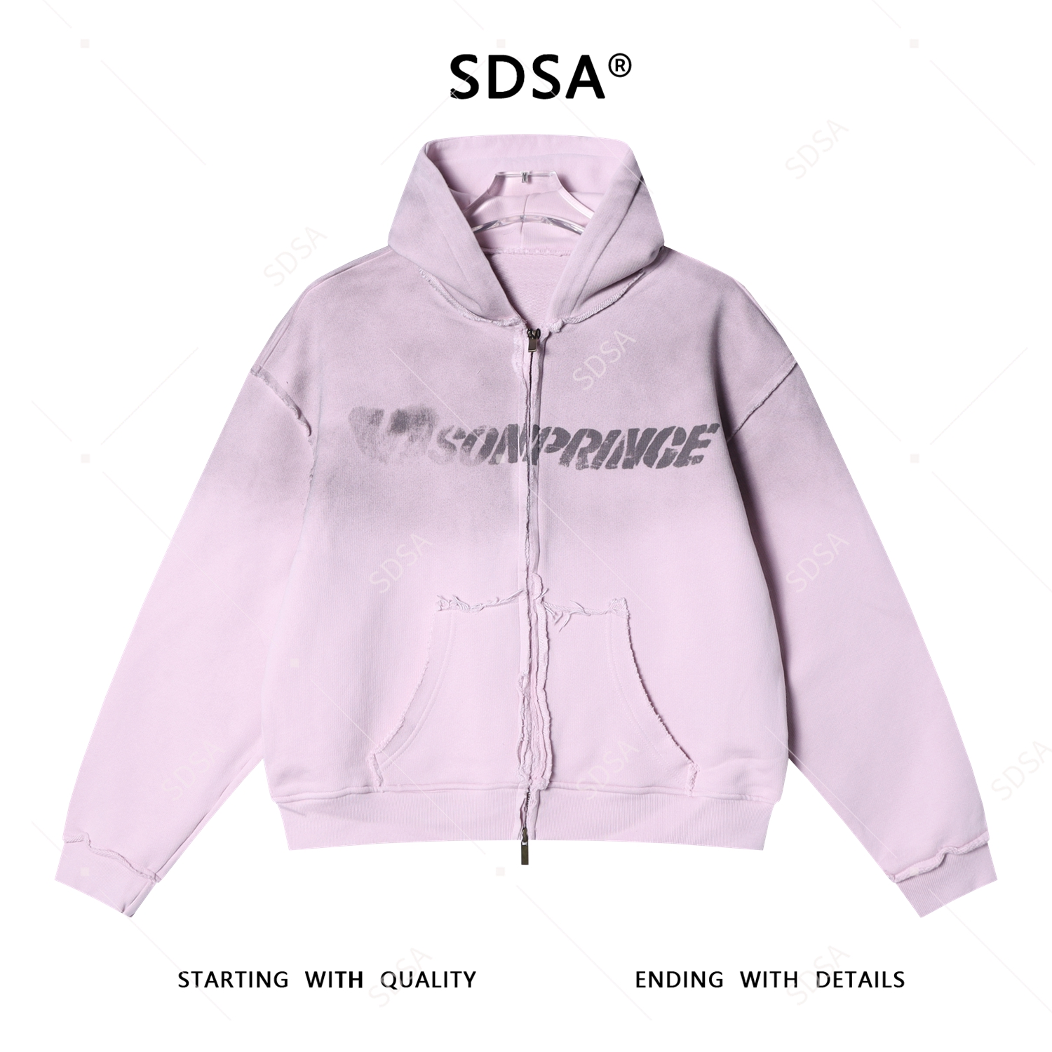 Y002SDSA秋冬新款痞帅男装美式渐变字母印花磨边拉链连帽卫衣百搭宽松