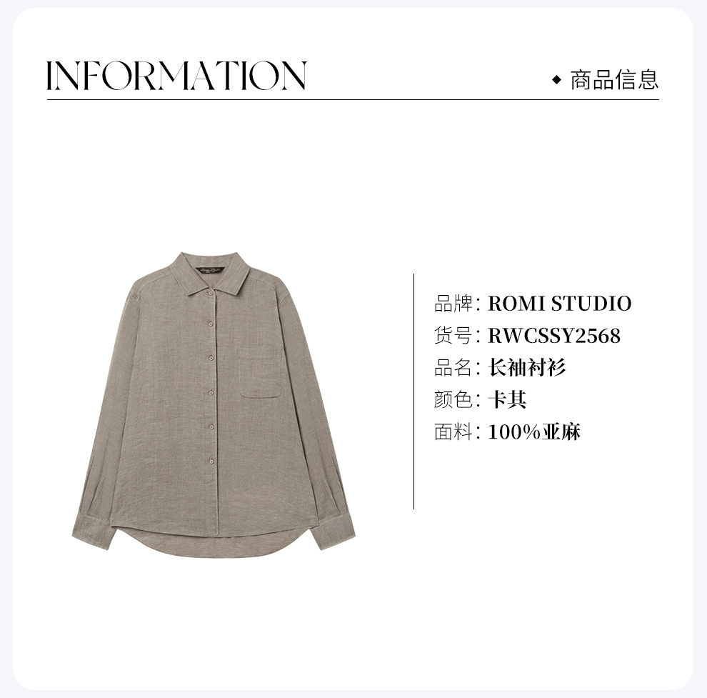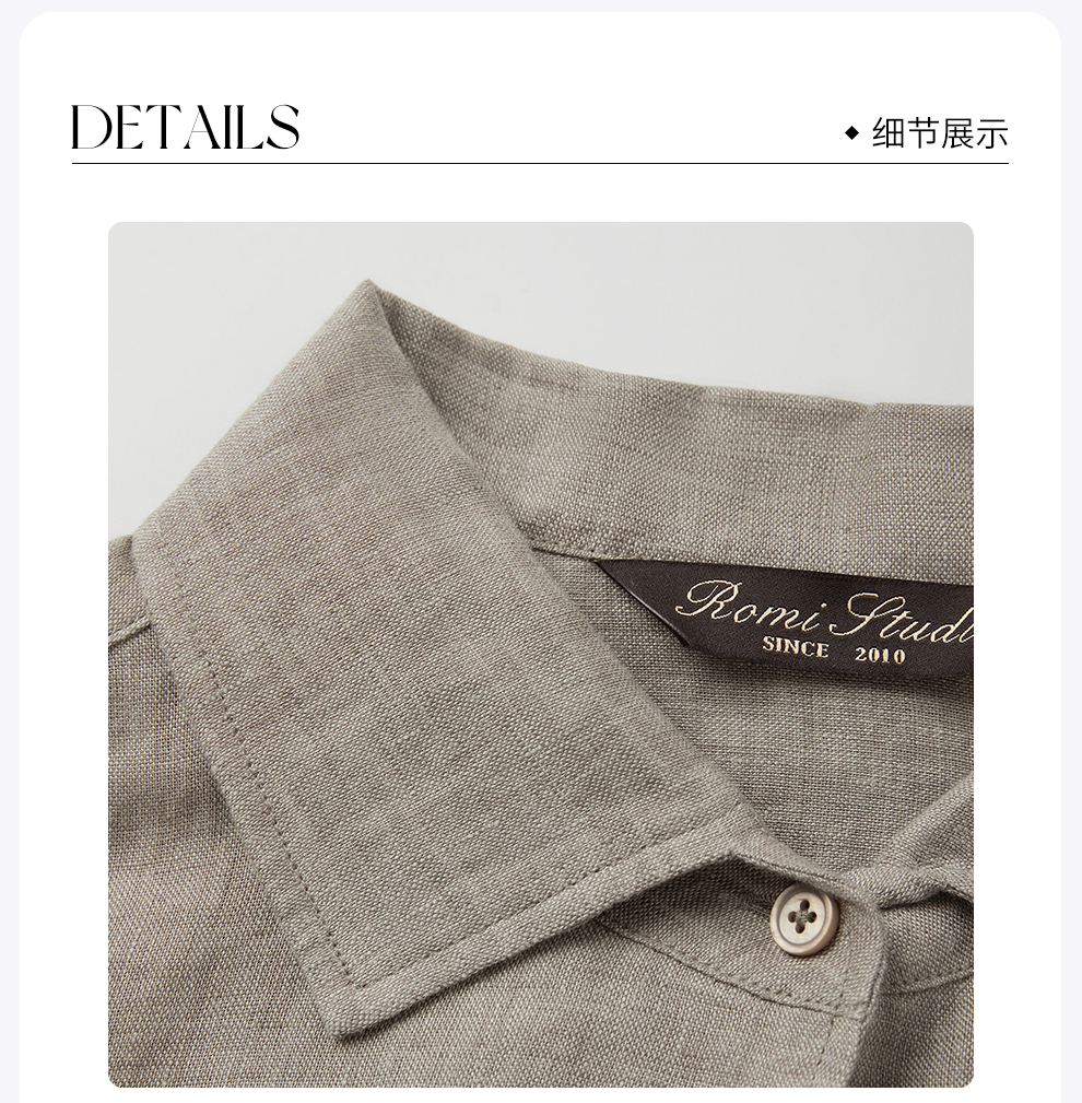 ROMI STUDIO100%亚麻经典老钱衬衫/直筒宽松版型RWCSSY2568