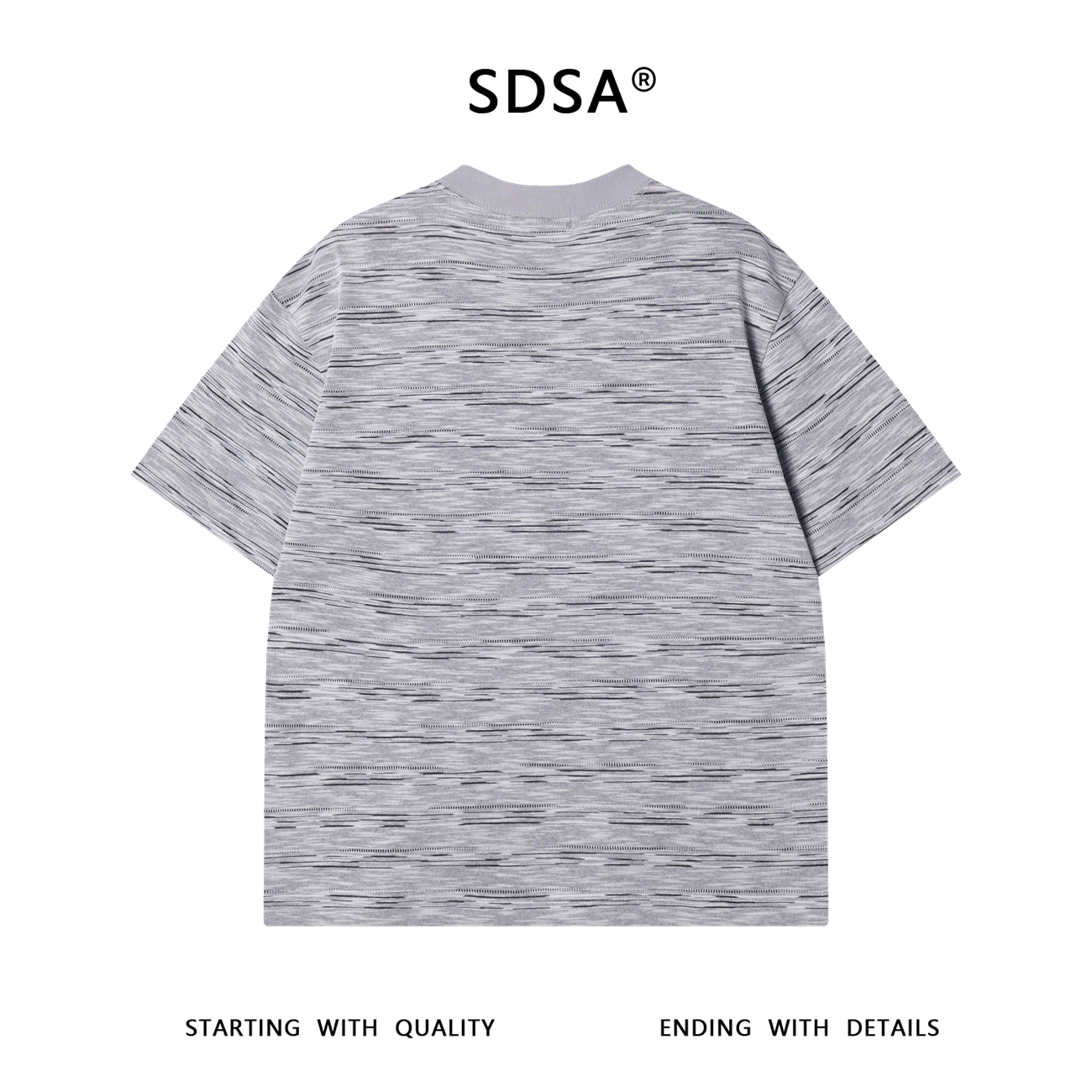 T3397夏季高级感新款韩版竹节条纹圆领短袖T恤晕染百搭套头宽松上衣