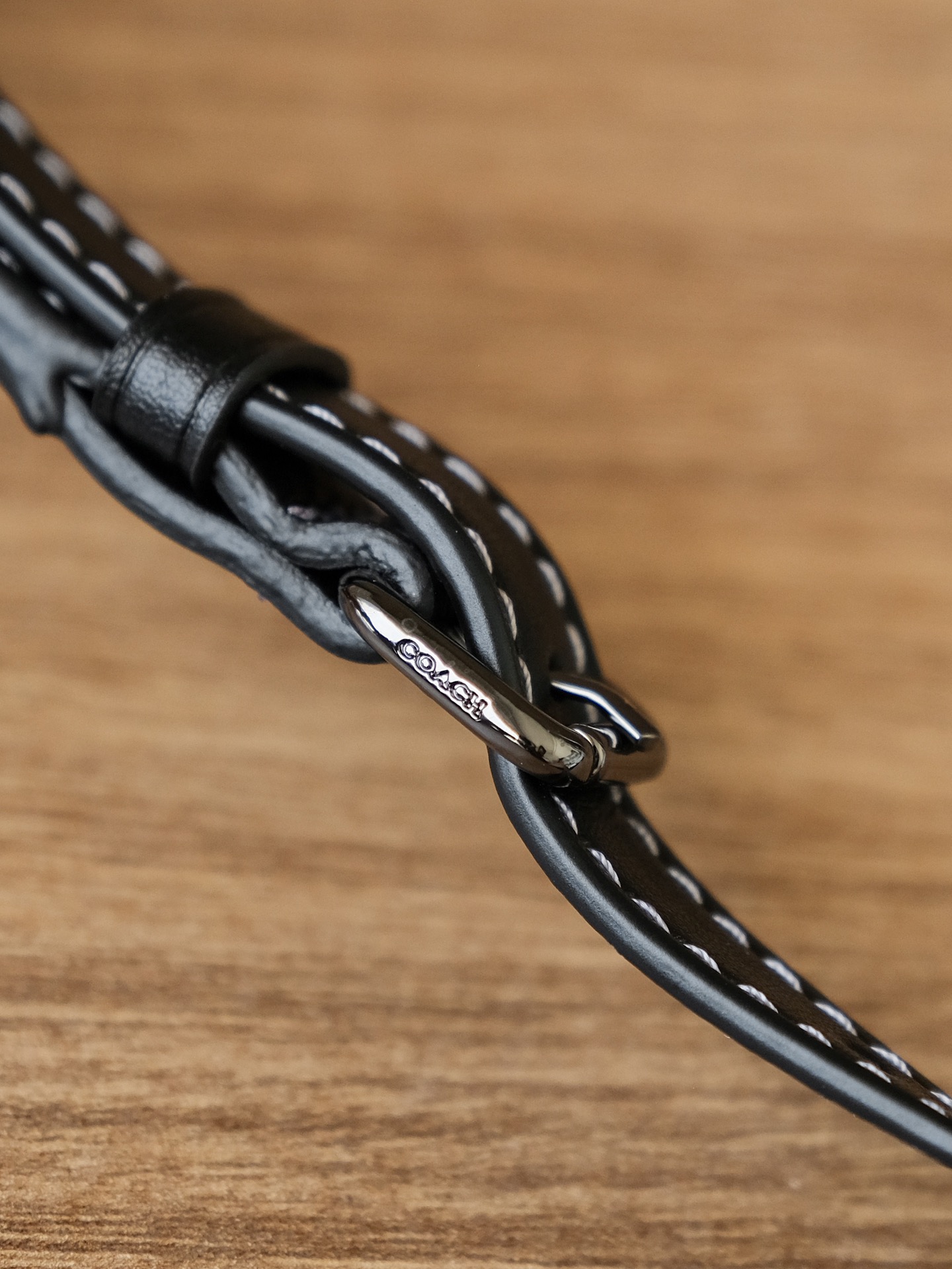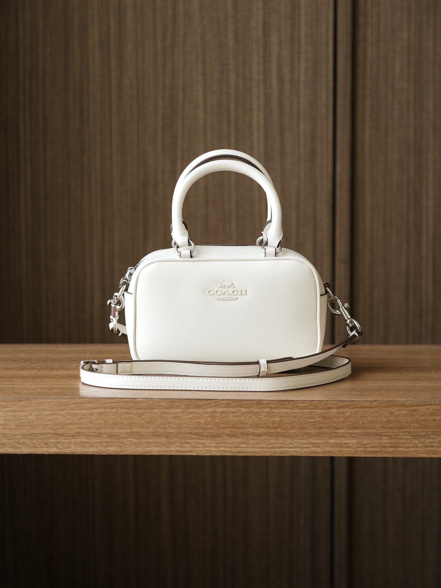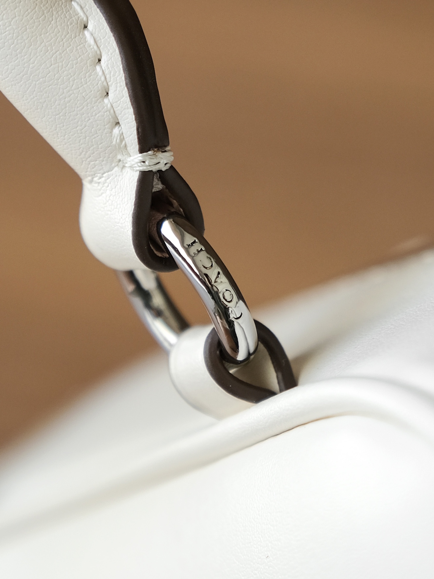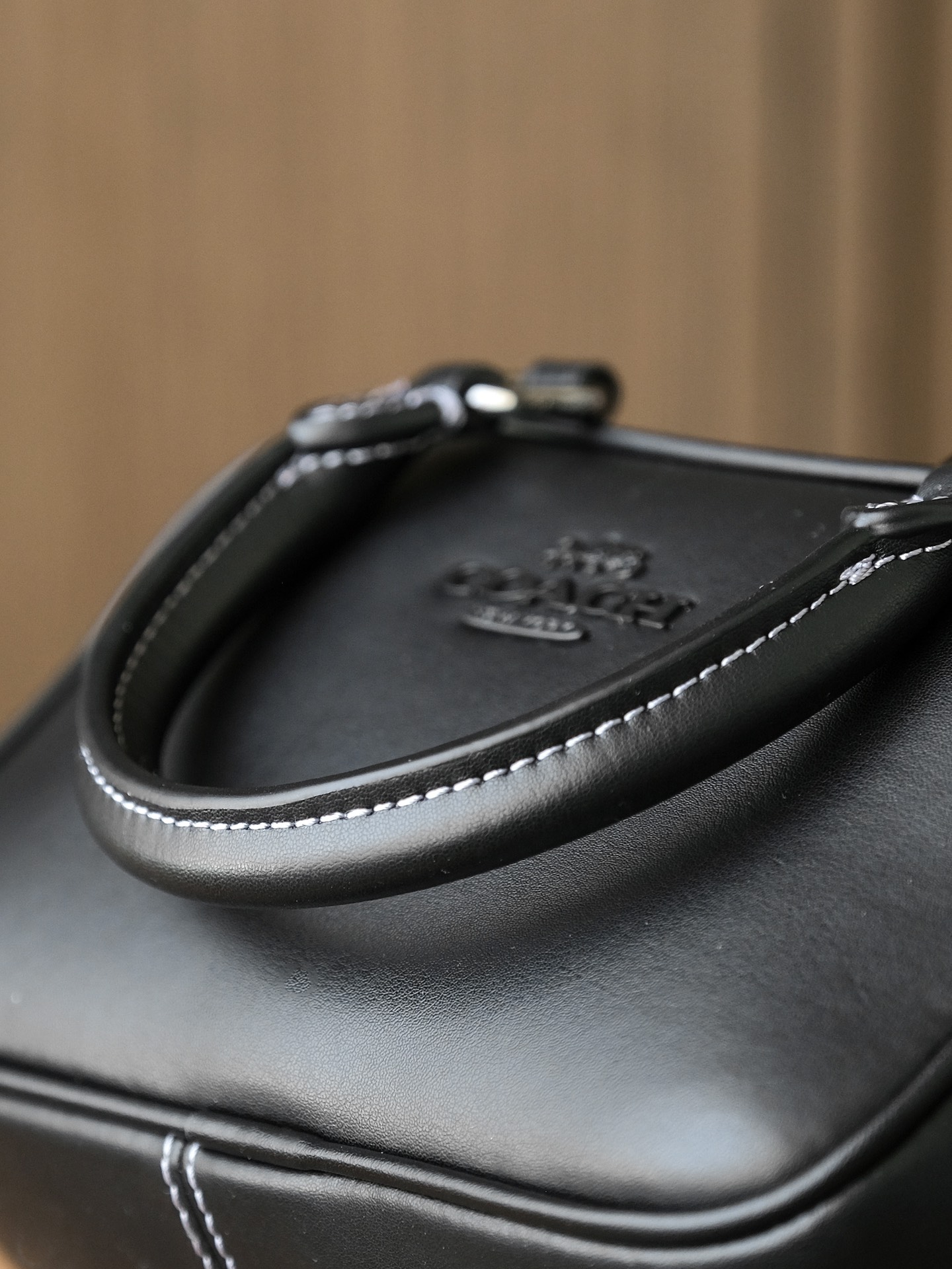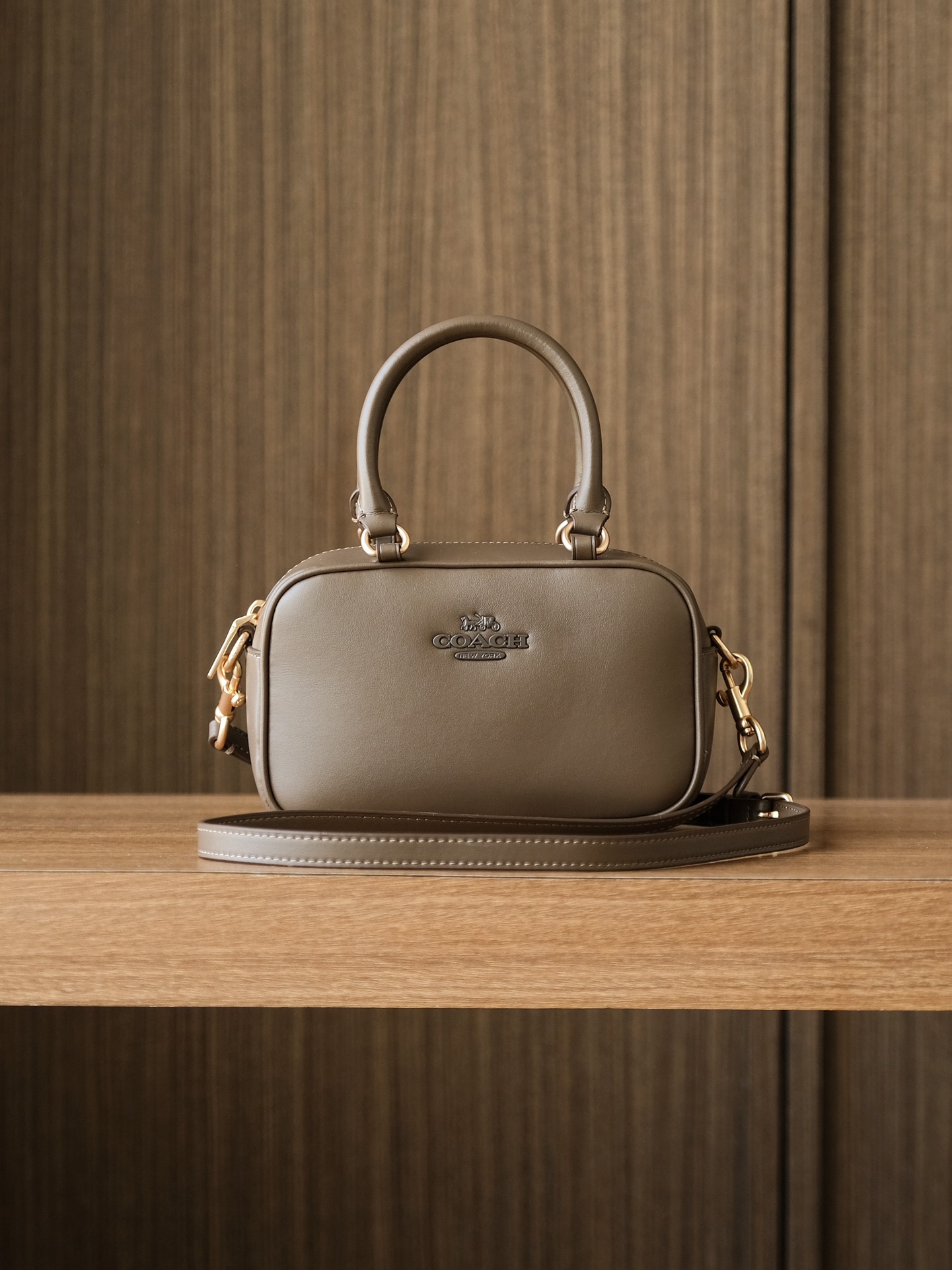 它配有可调节的斜挎肩带和皮革包裹的顶部手柄