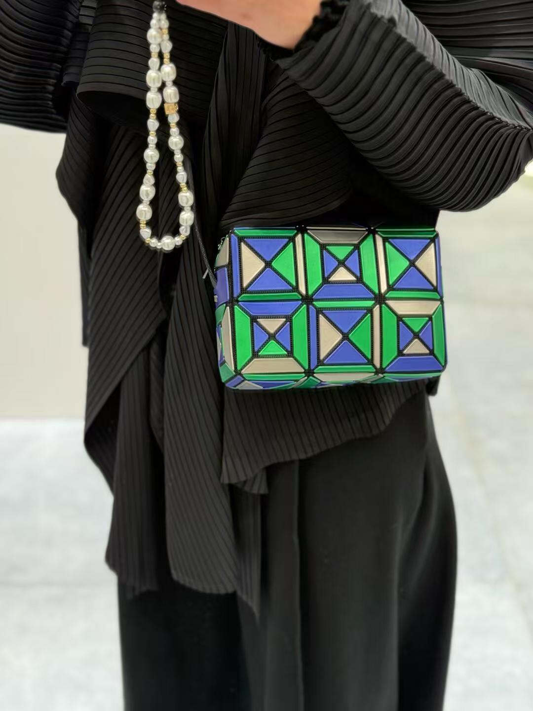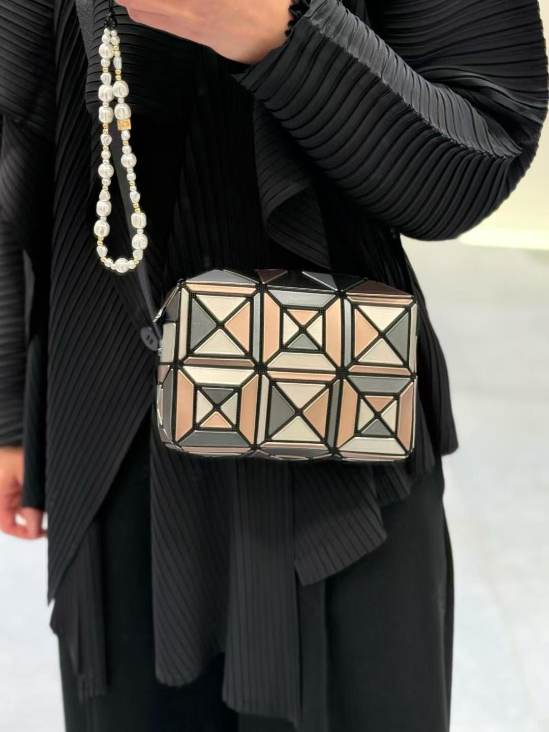 新款丘比特小方包 单肩包的设计混合各种珠片,令人联想到音乐和声。是一款组合不同尺寸与颜色的珠片并使其成为搭配主角的单品。单肩包可通过内部金属件调整包带的长短,在保持简约外观的同时,适合各种风格的搭配。