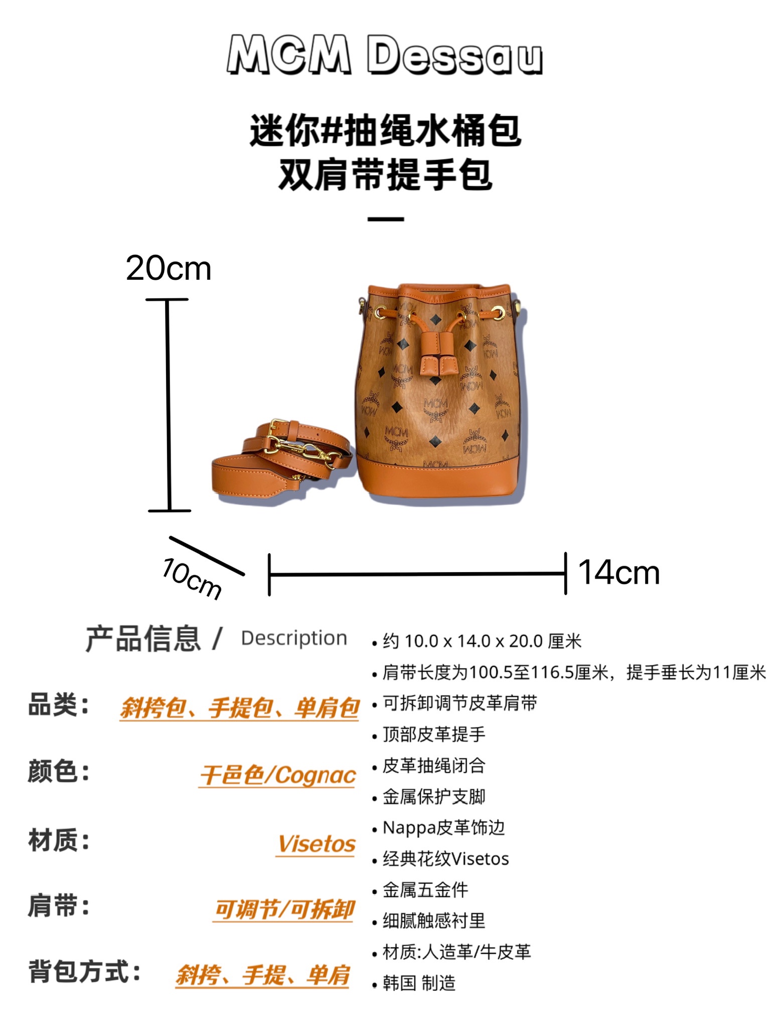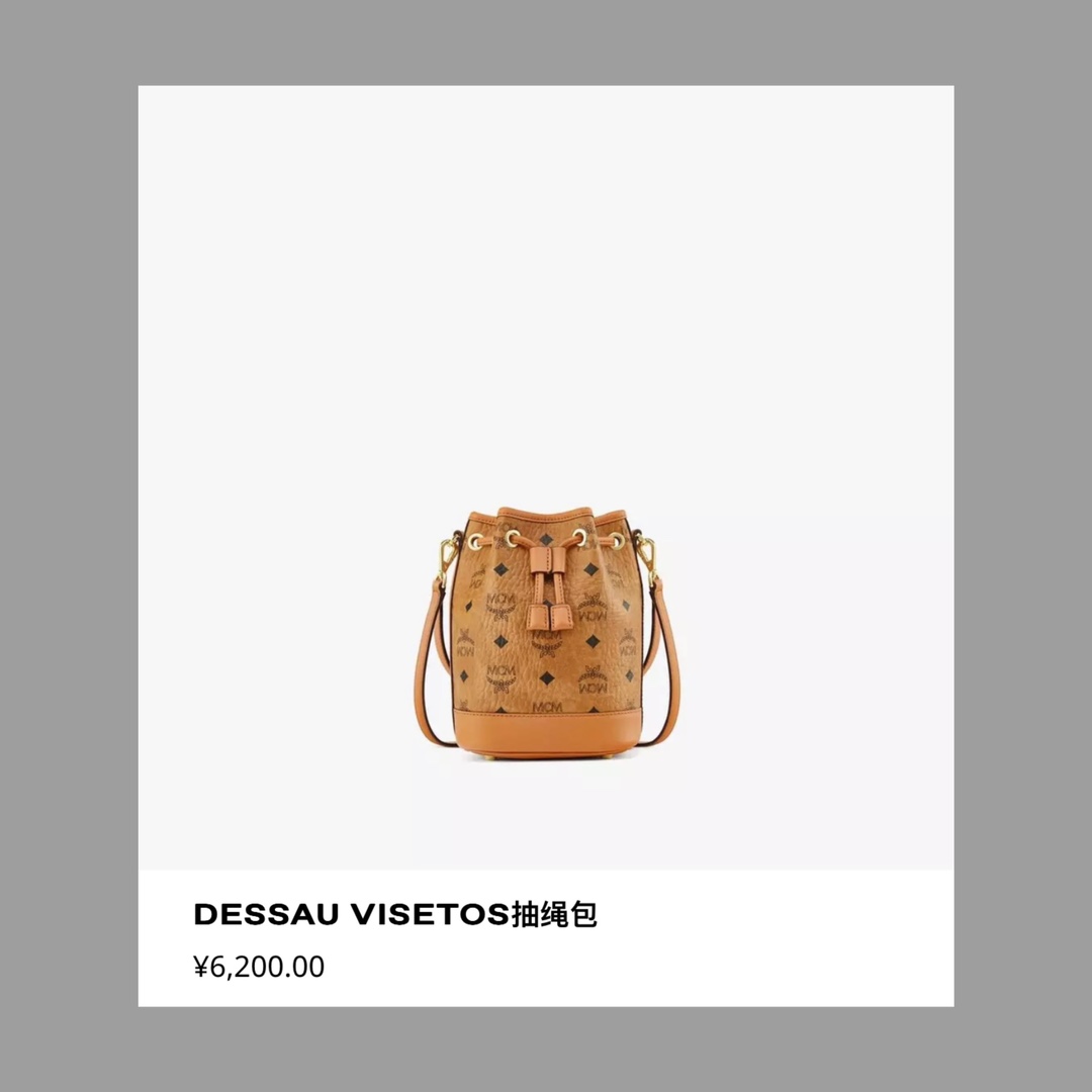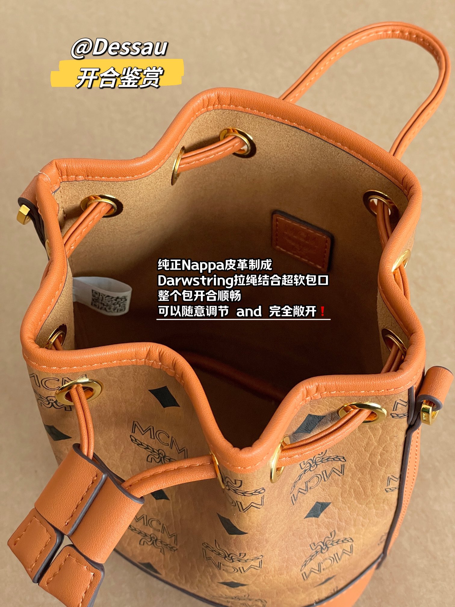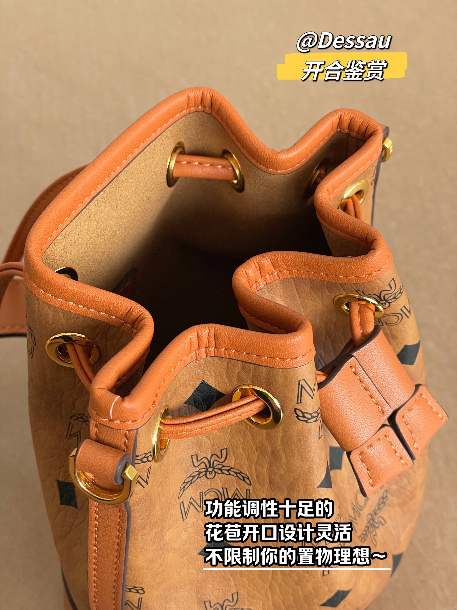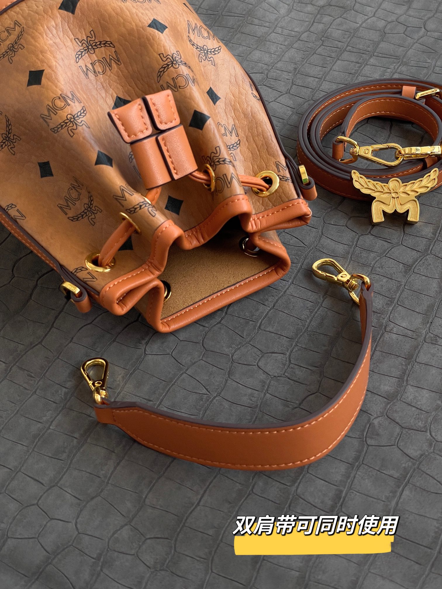 MCM Dessau Visetos 经典花纹老花满印抽绳闭合 人造革皮革 水桶包斜挎单肩手提包 迷你 女款 棕色干邑色(CB)