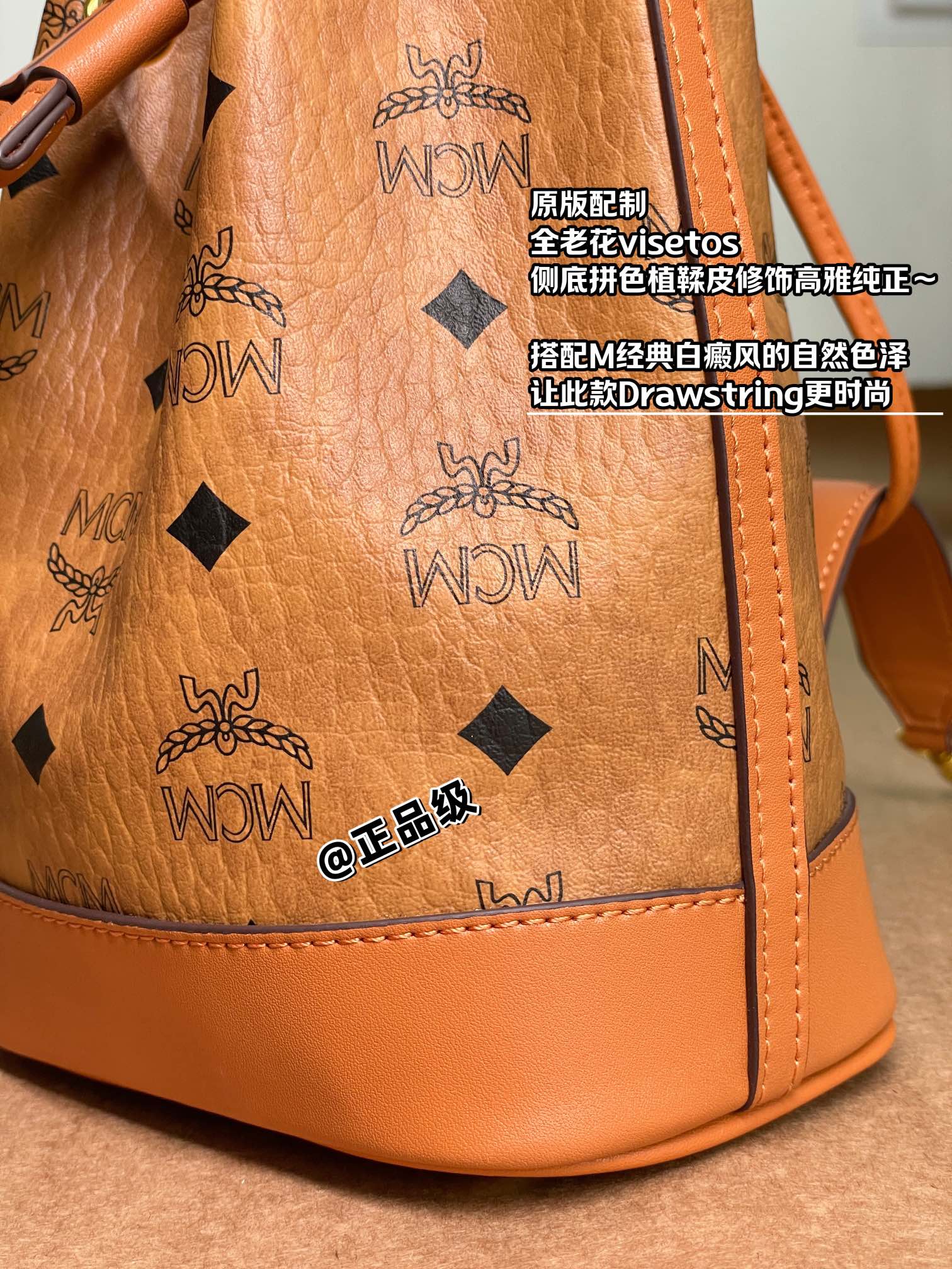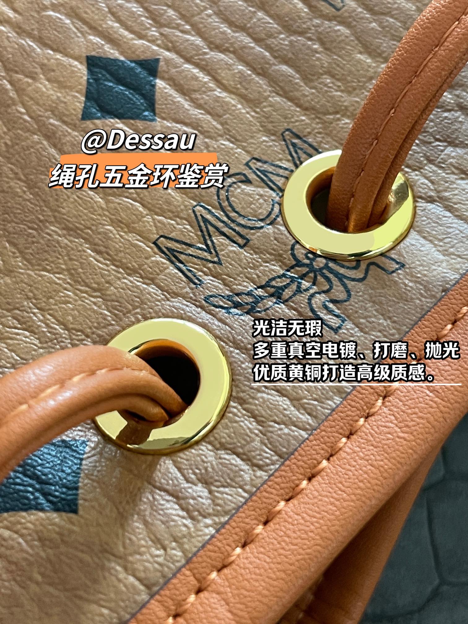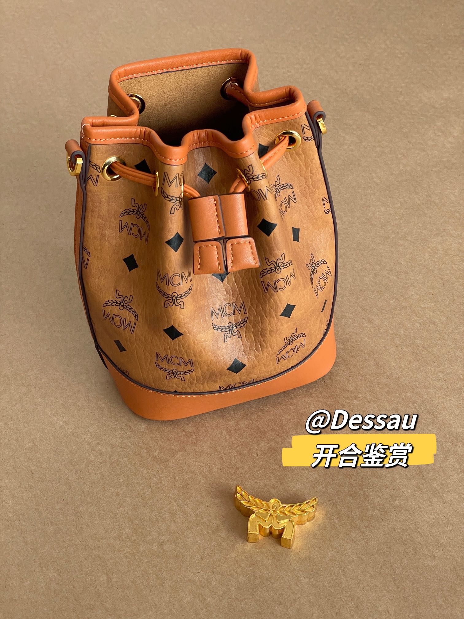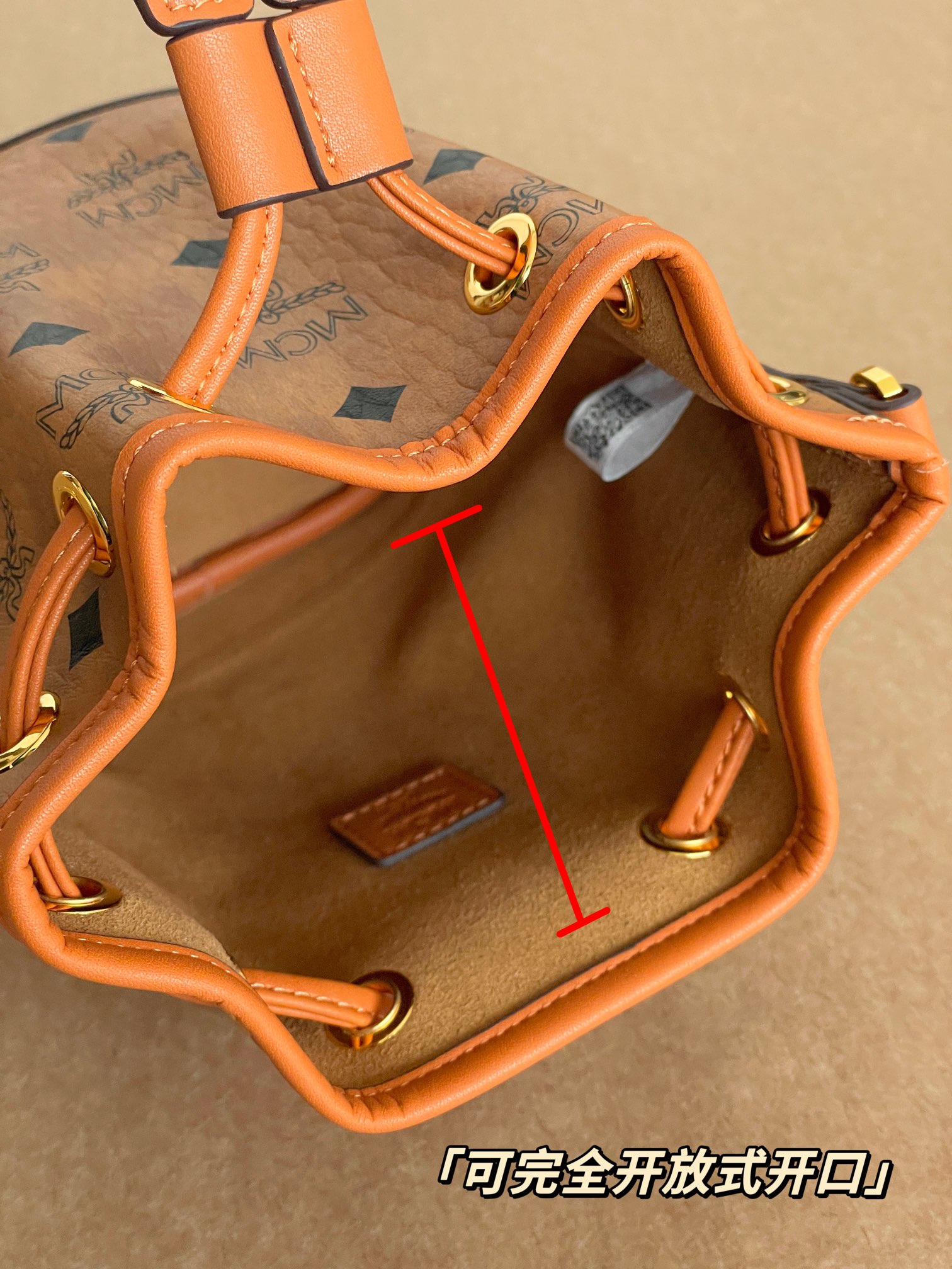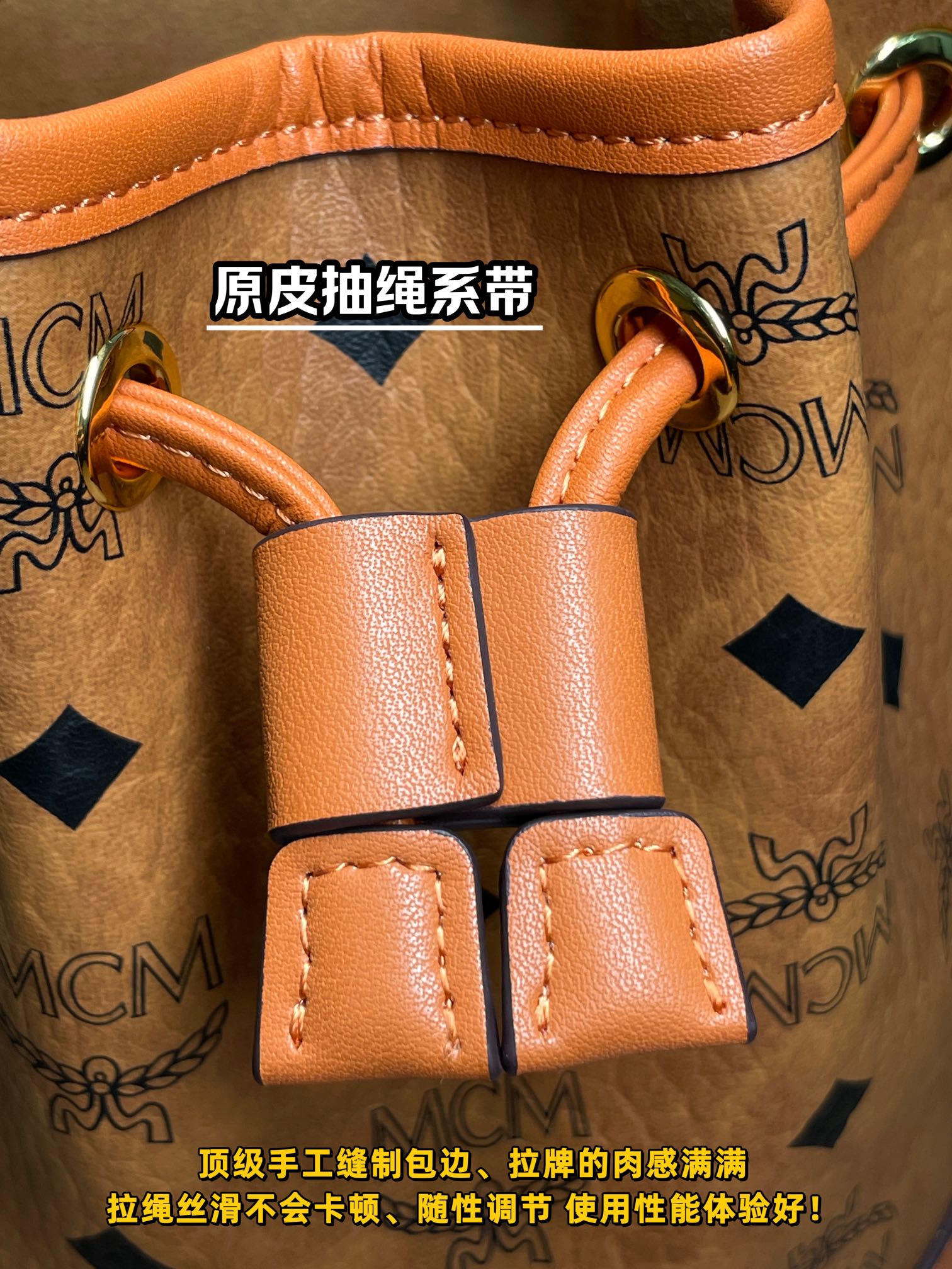 MCM Dessau Visetos 经典花纹老花满印抽绳闭合 人造革皮革 水桶包斜挎单肩手提包 迷你 女款 棕色干邑色(CB)
