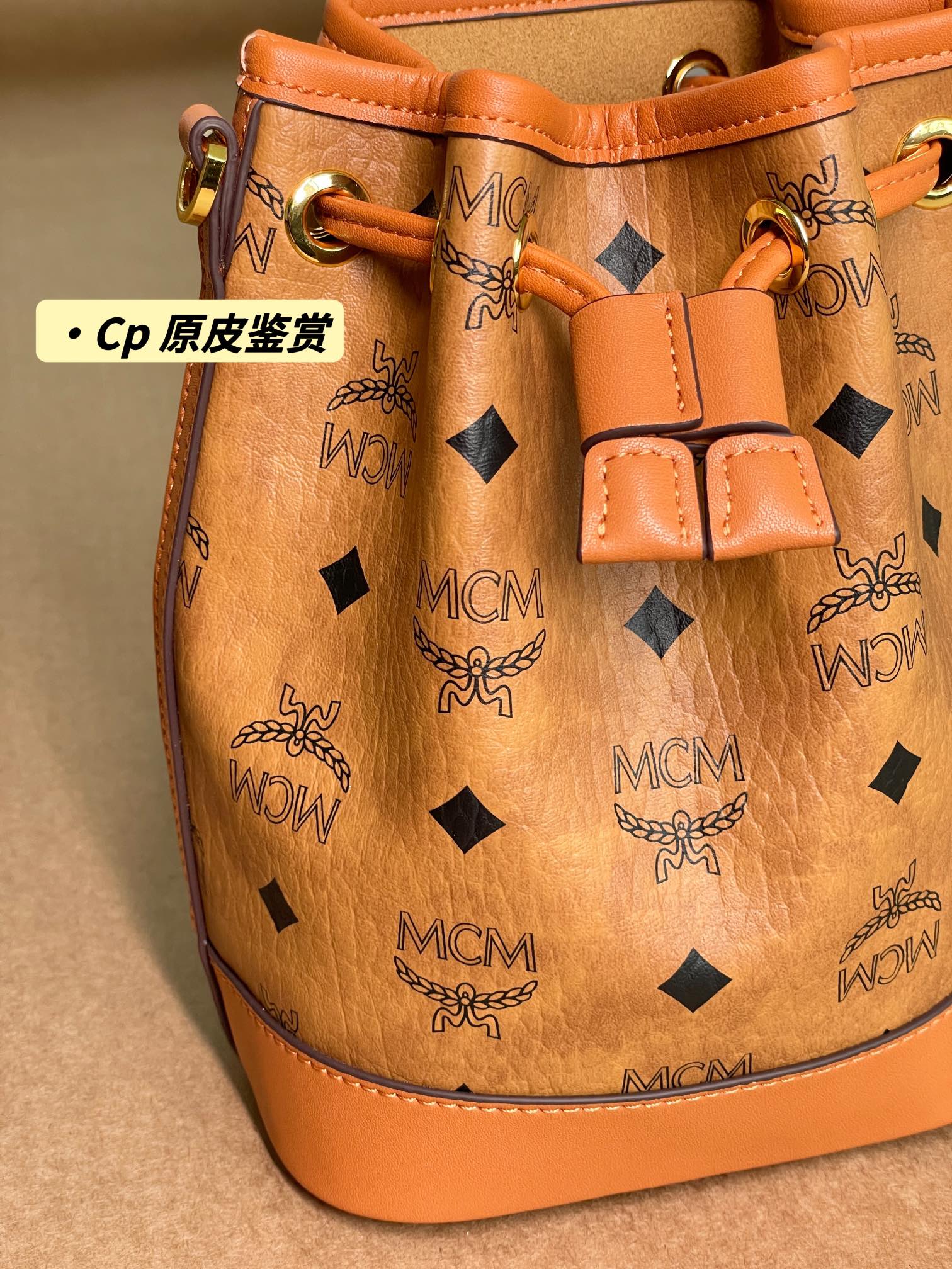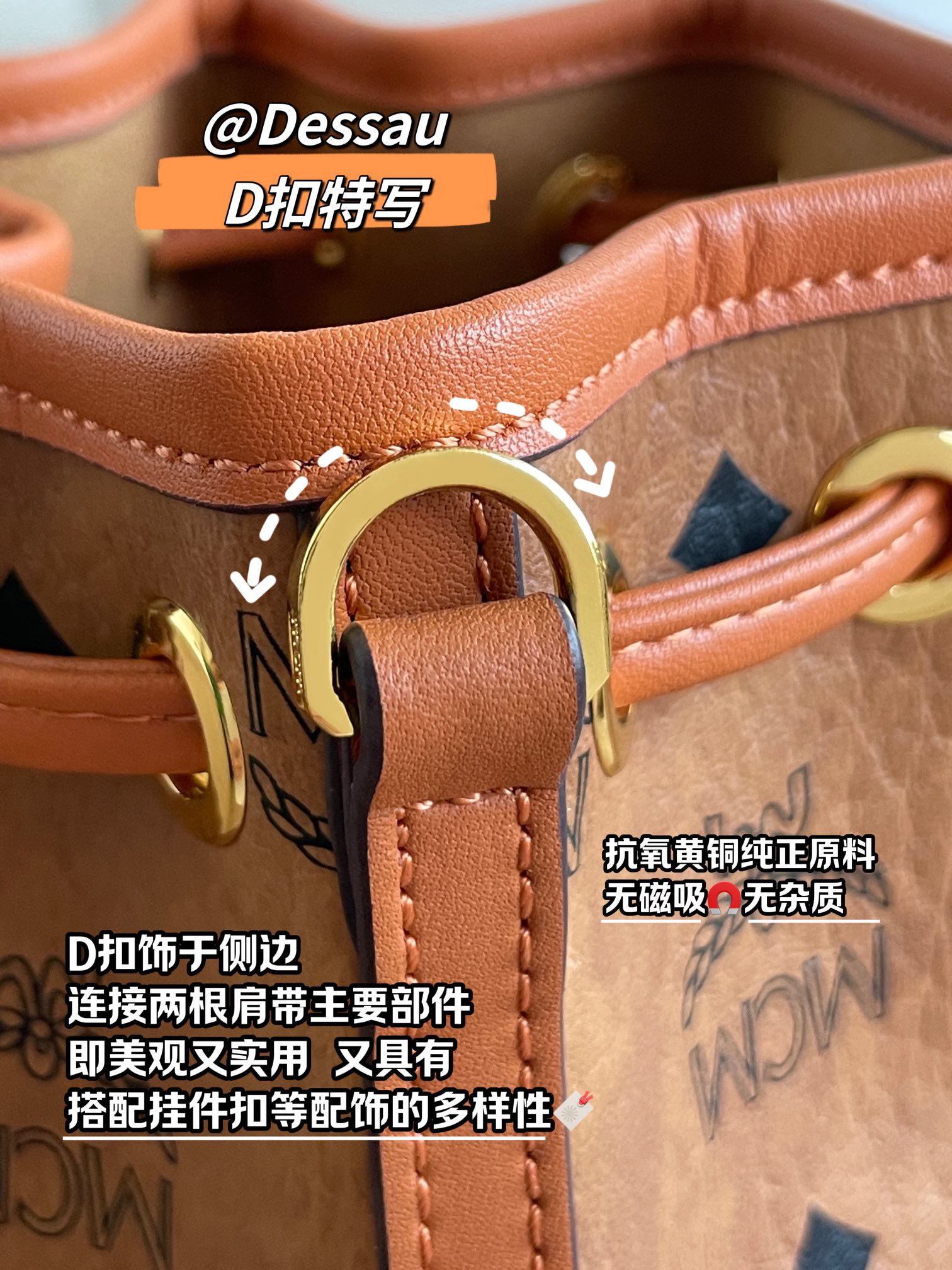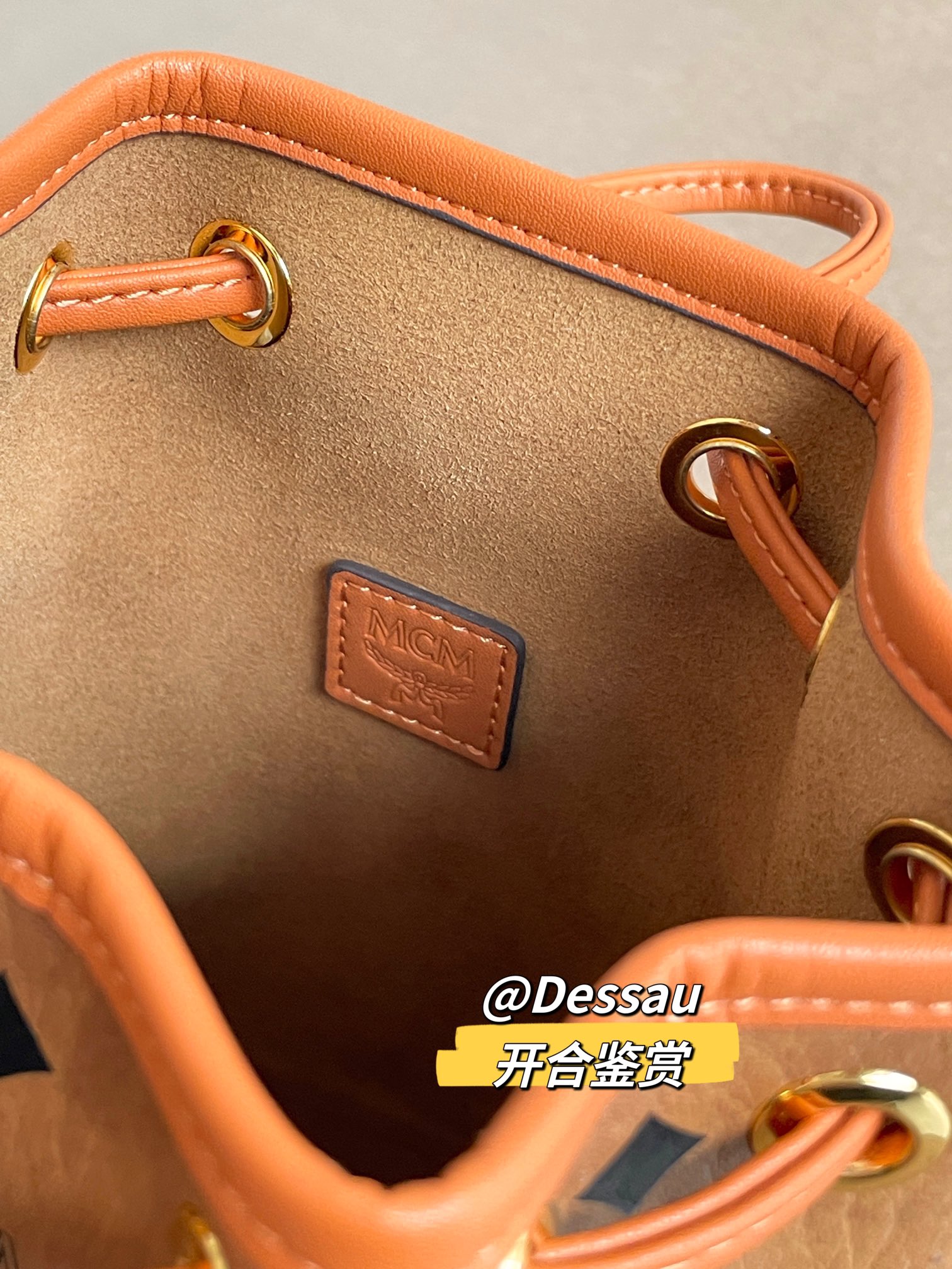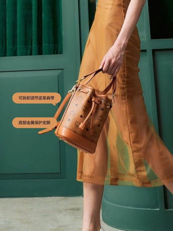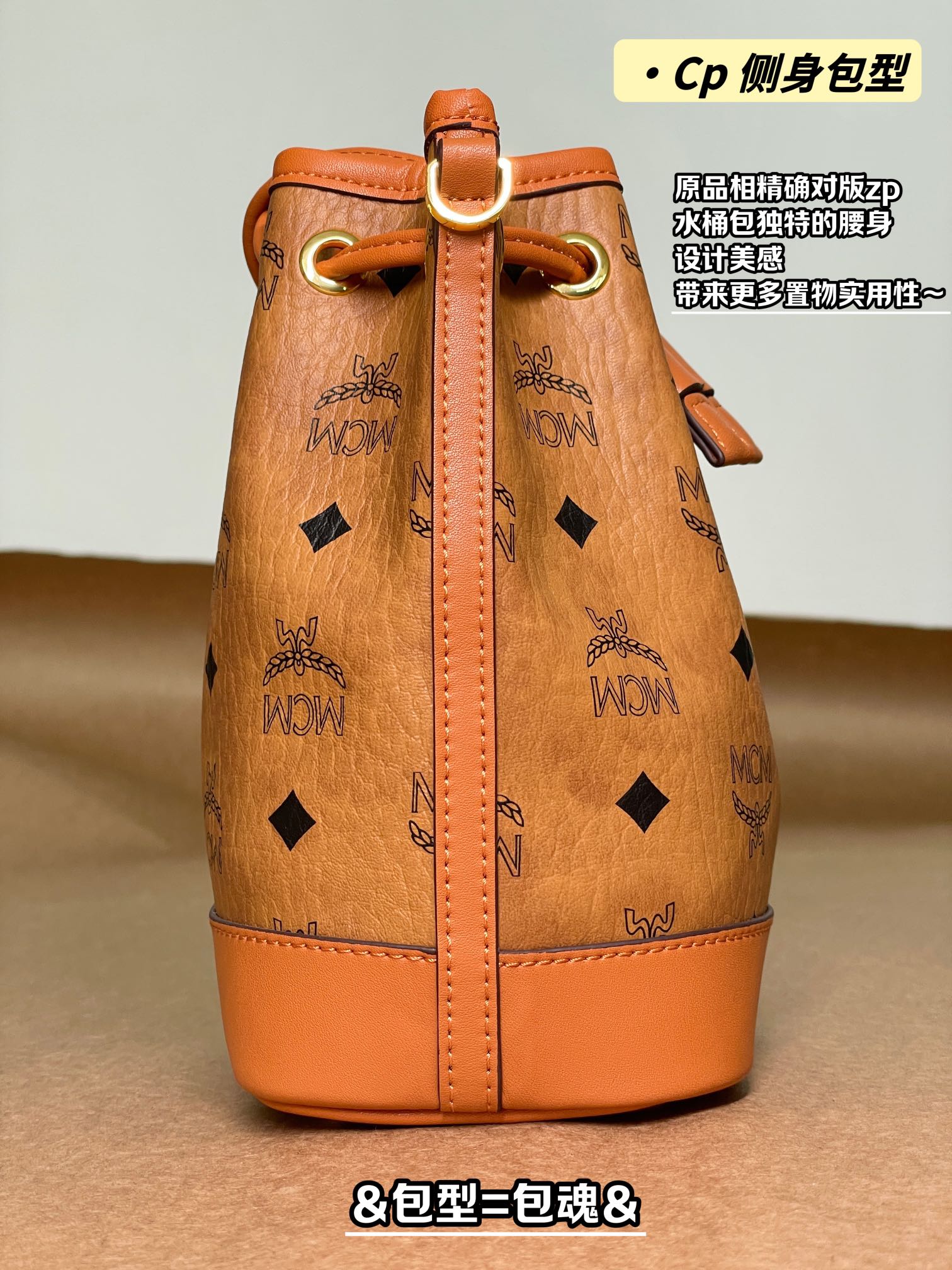 MCM Dessau Visetos 经典花纹老花满印抽绳闭合 人造革皮革 水桶包斜挎单肩手提包 迷你 女款 棕色干邑色(CB)