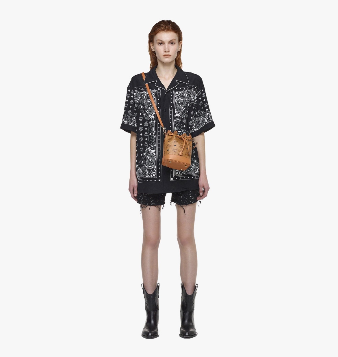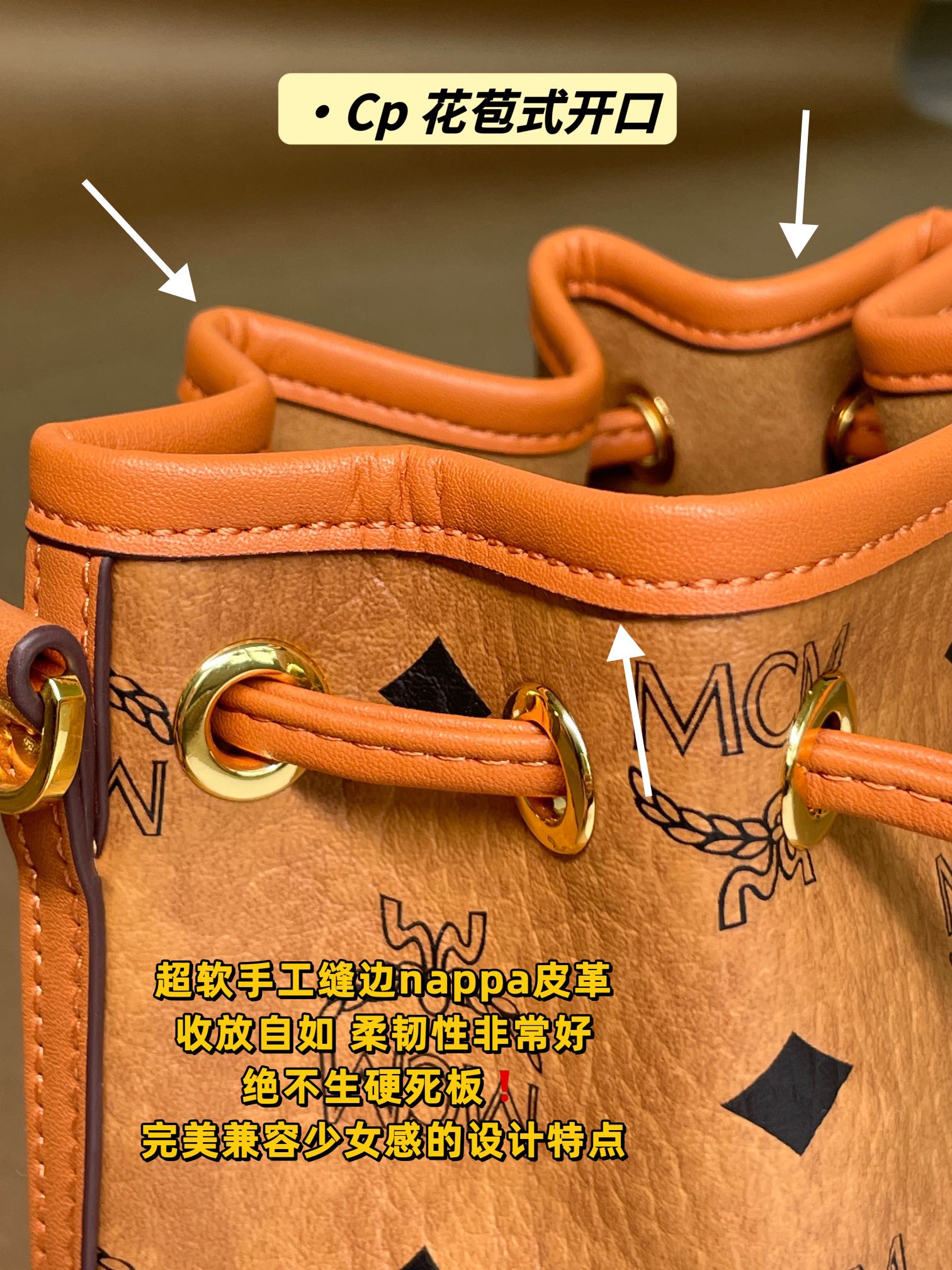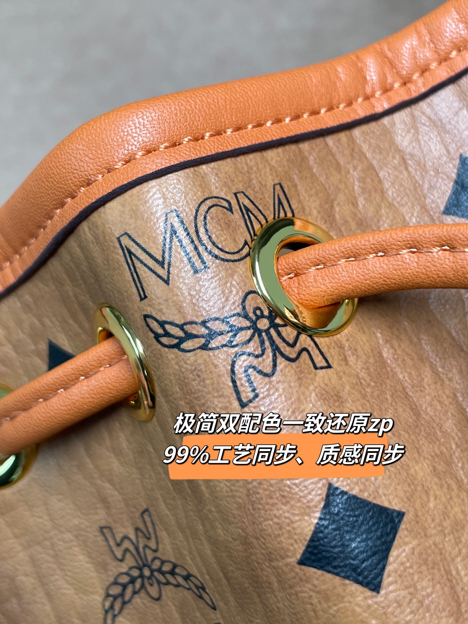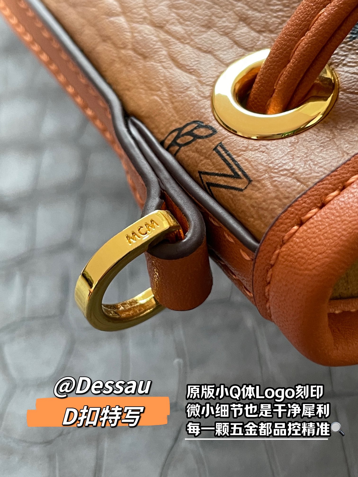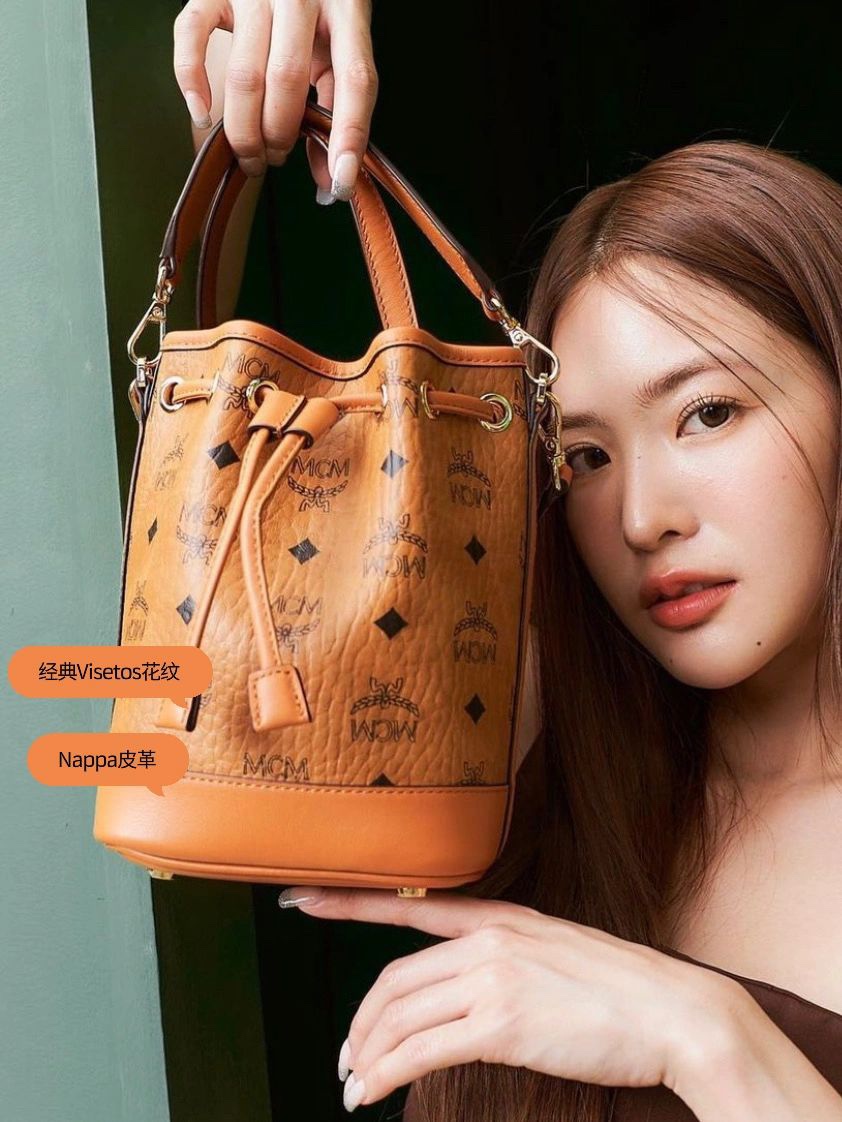 MCM Dessau Visetos 经典花纹老花满印抽绳闭合 人造革皮革 水桶包斜挎单肩手提包 迷你 女款 棕色干邑色(CB)